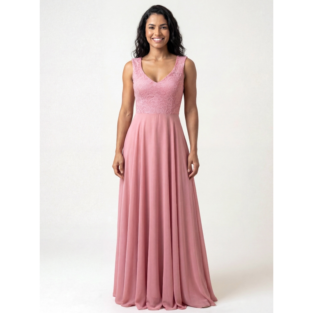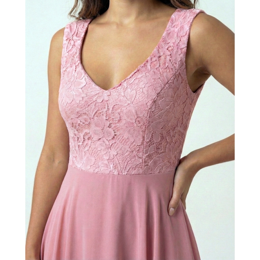 Vestido Feminino Longo Para Festa de Casamento Com Renda No Busto