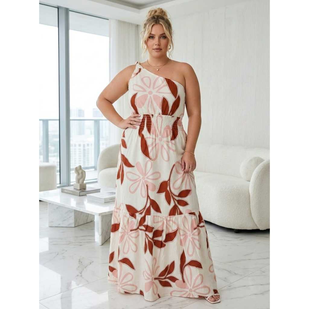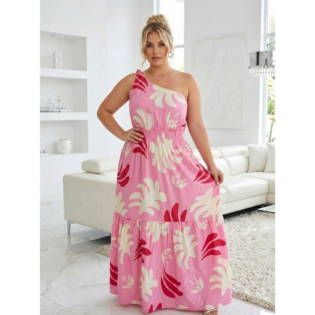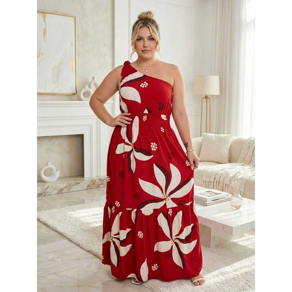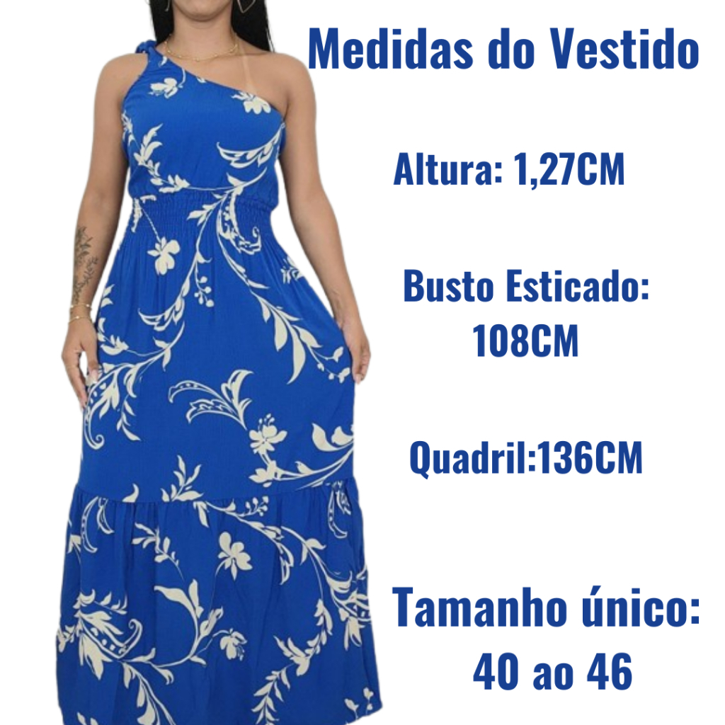 Vestido Feminino Longo Uma Alça Rodado Soltinho Adulto Babado Estampado Fresquinho Floral Florido Lastex Plus Size