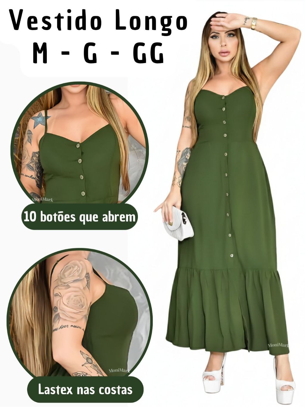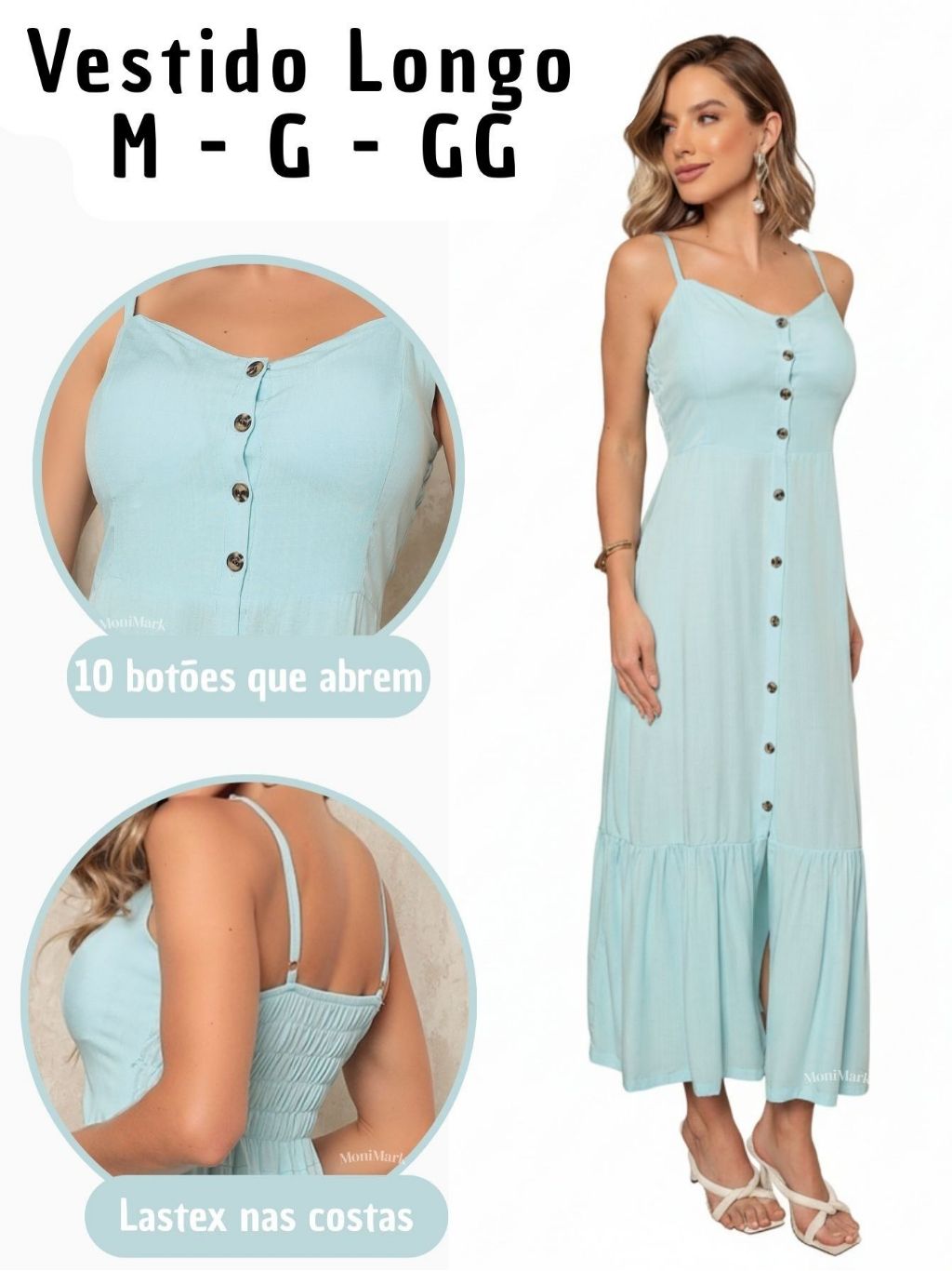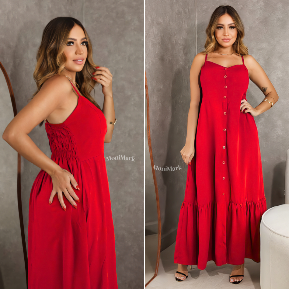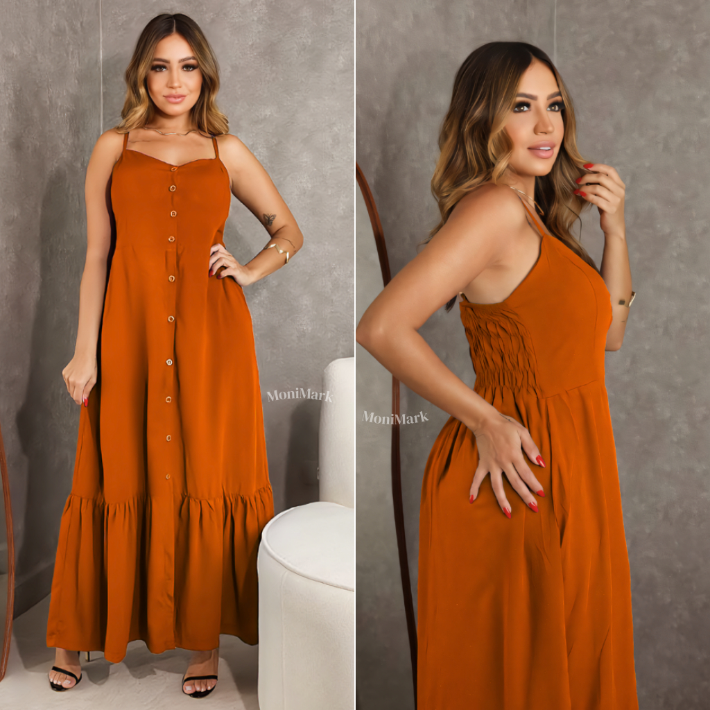 Vestido Feminino Longo em Viscolinho Elegante Com Bojo, Com Forro, Com Regulador e Botões Frontais