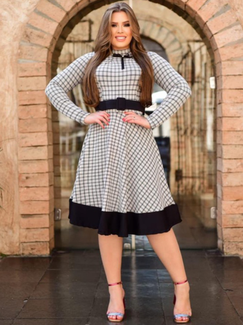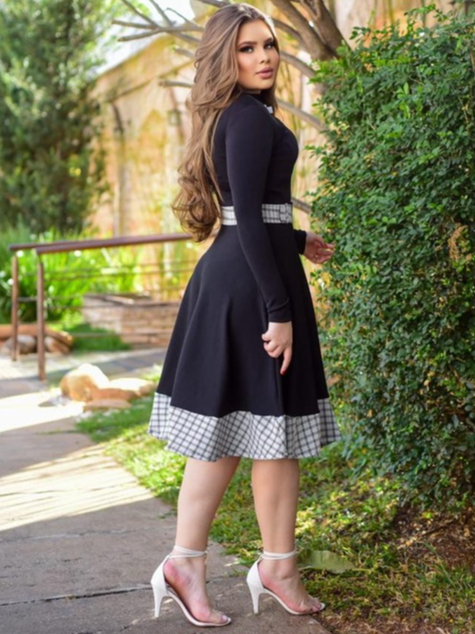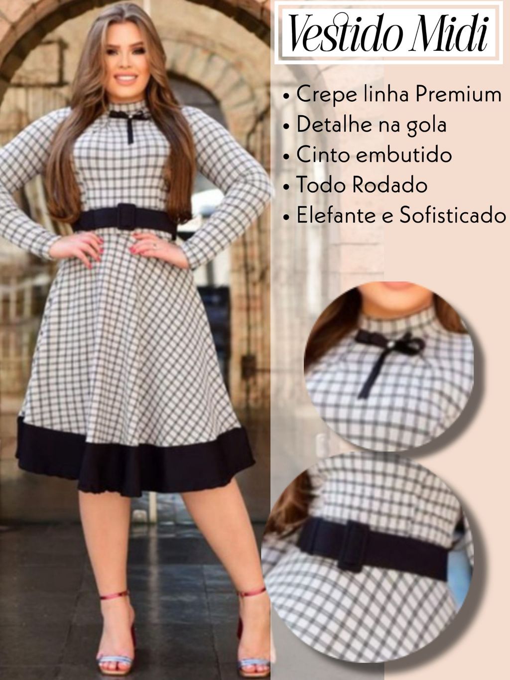 Vestido Feminino Manda Longa de Crepe de Malha Linha Premium