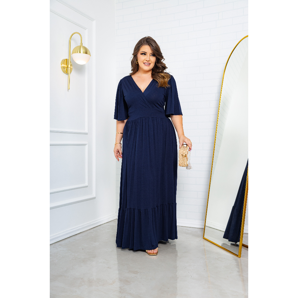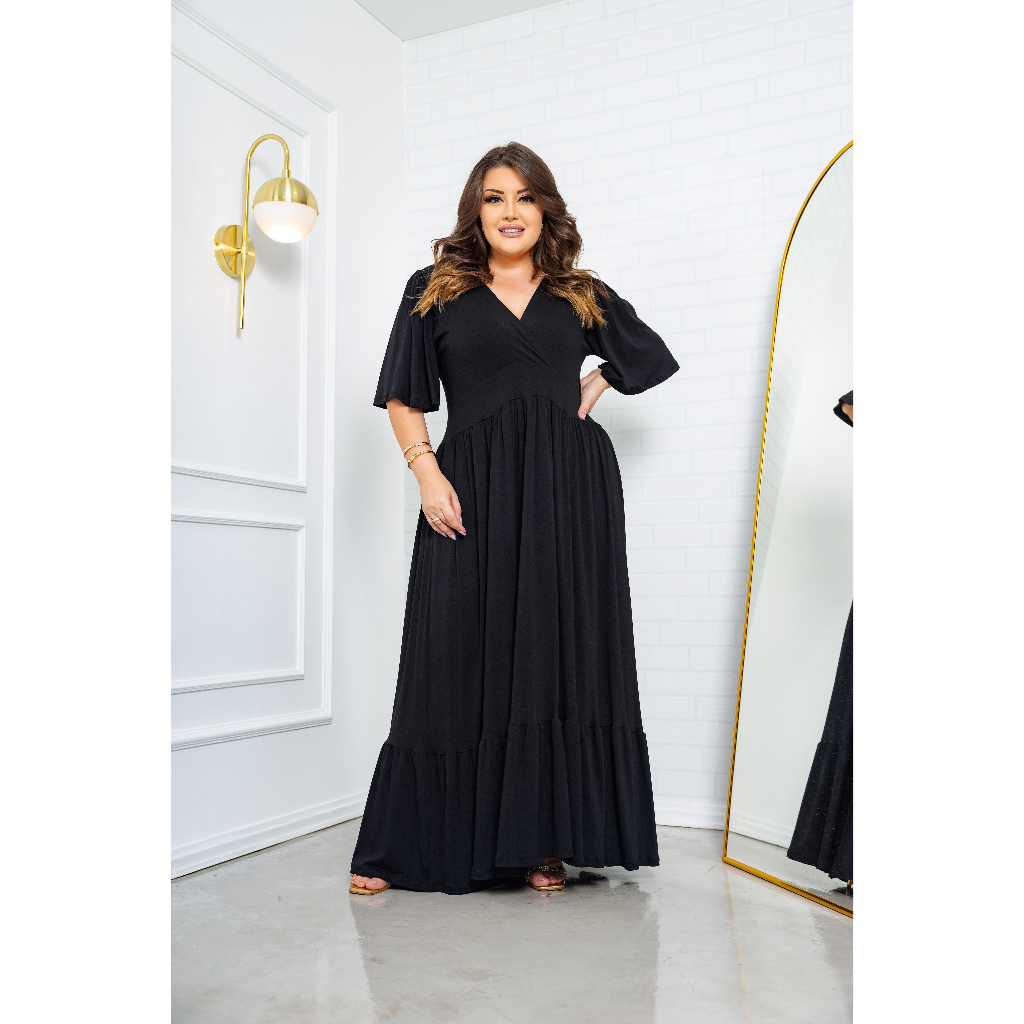 Vestido Festa Longo Rodado Liso Saia Babado Uma Maria Moda Blogueirinha Verão