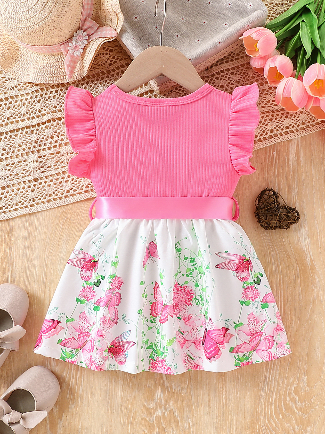 Vestido Floral Princesa Borboleta para Bebês de 6 a 36 meses, Conjunto de Verão Sem Mangas, Casual para Festas.