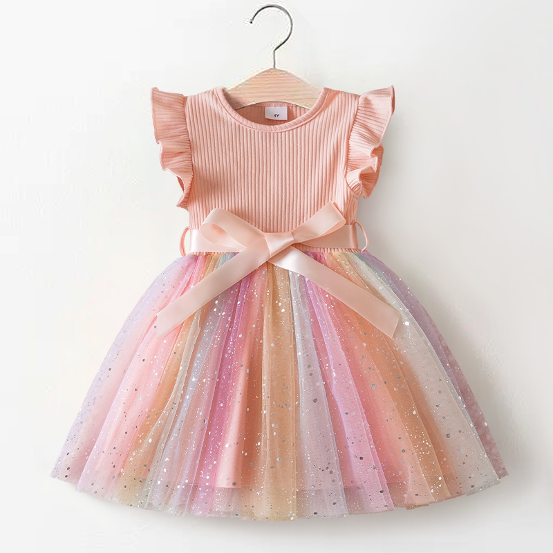 Vestido Infantil Adorável De Flores Para Meninas , Aniversário , Fada , Tule , De Princesa , Babados , Crianças E