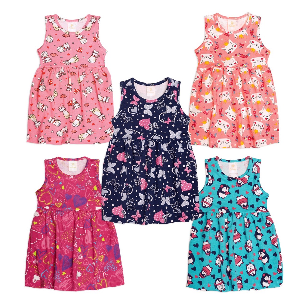 Vestido Infantil De Cotton Estampado Kit 3 Peças