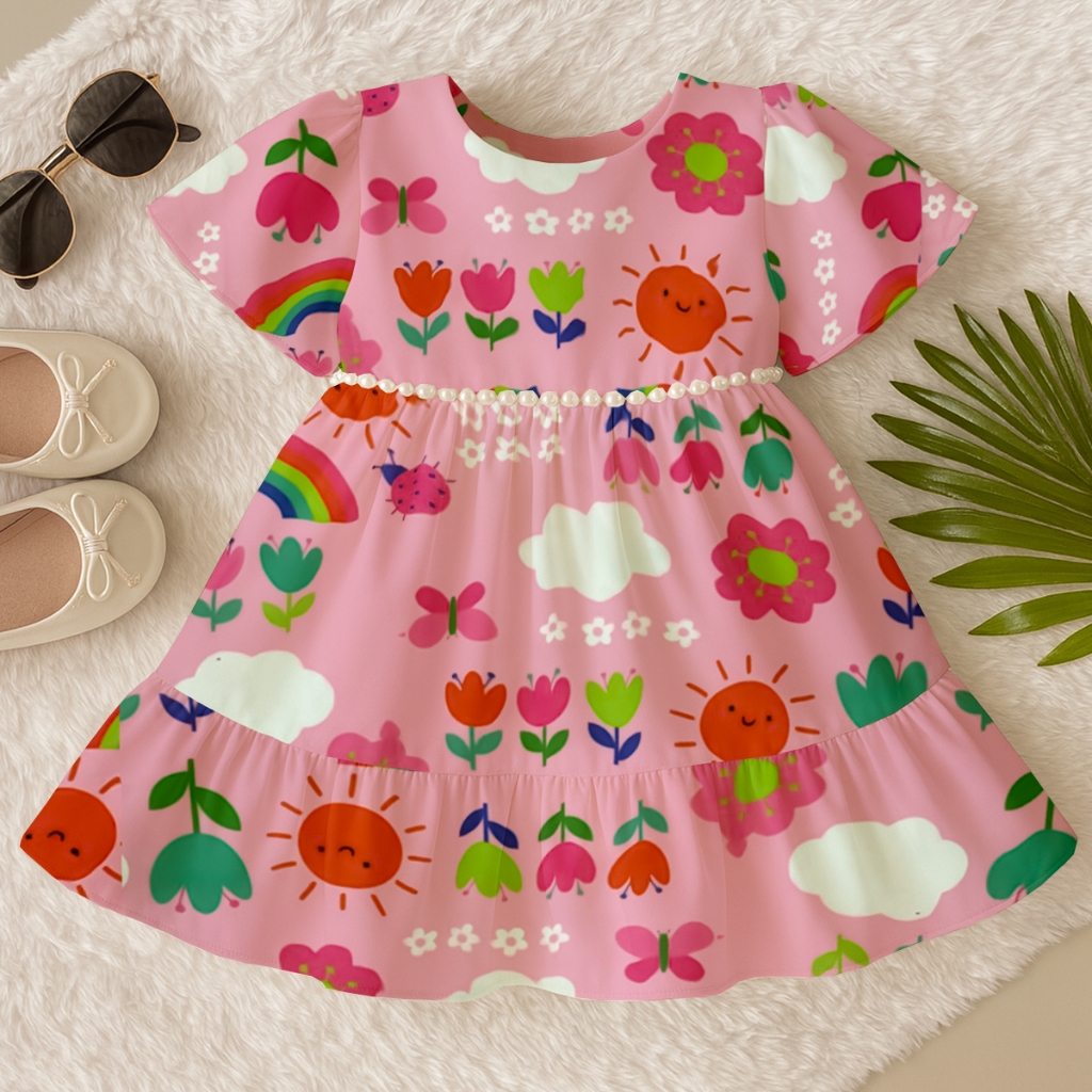 Vestido Infantil Menina Estampado Luxo de Princesa Moda Festa