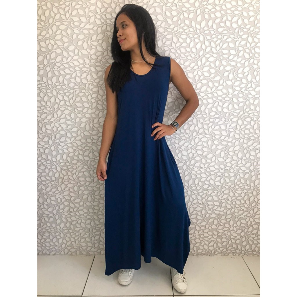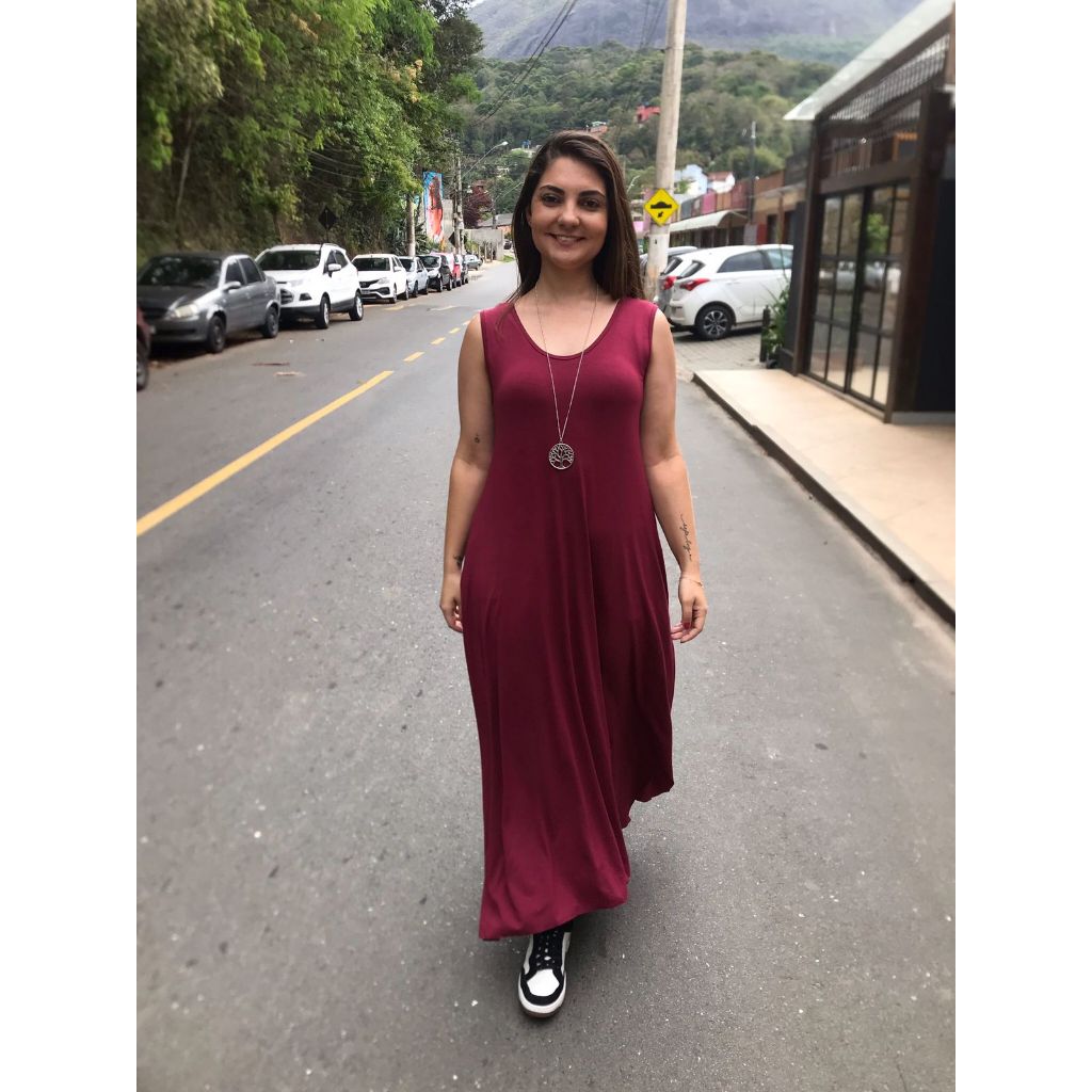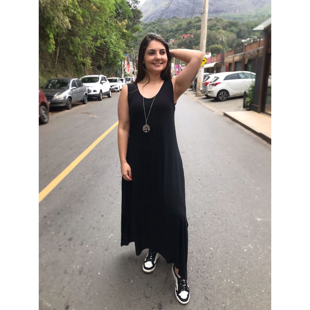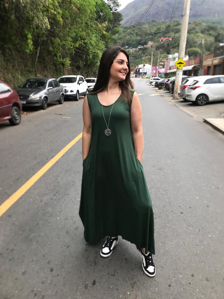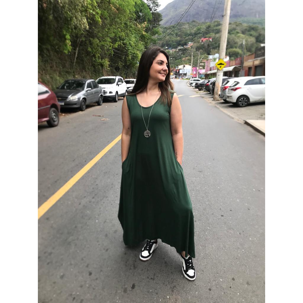Vestido Liso Longo com Fenda Lateral e Bolso Vestidos Feminino de Malha Viscolycra Roupas Femininas