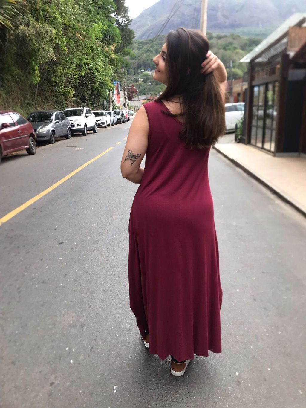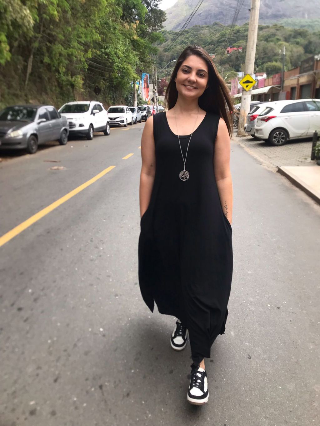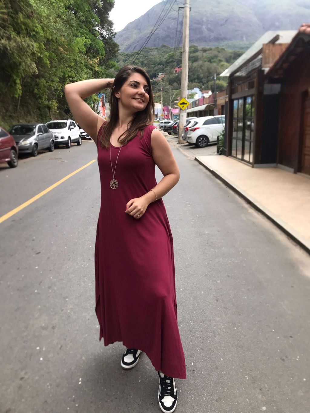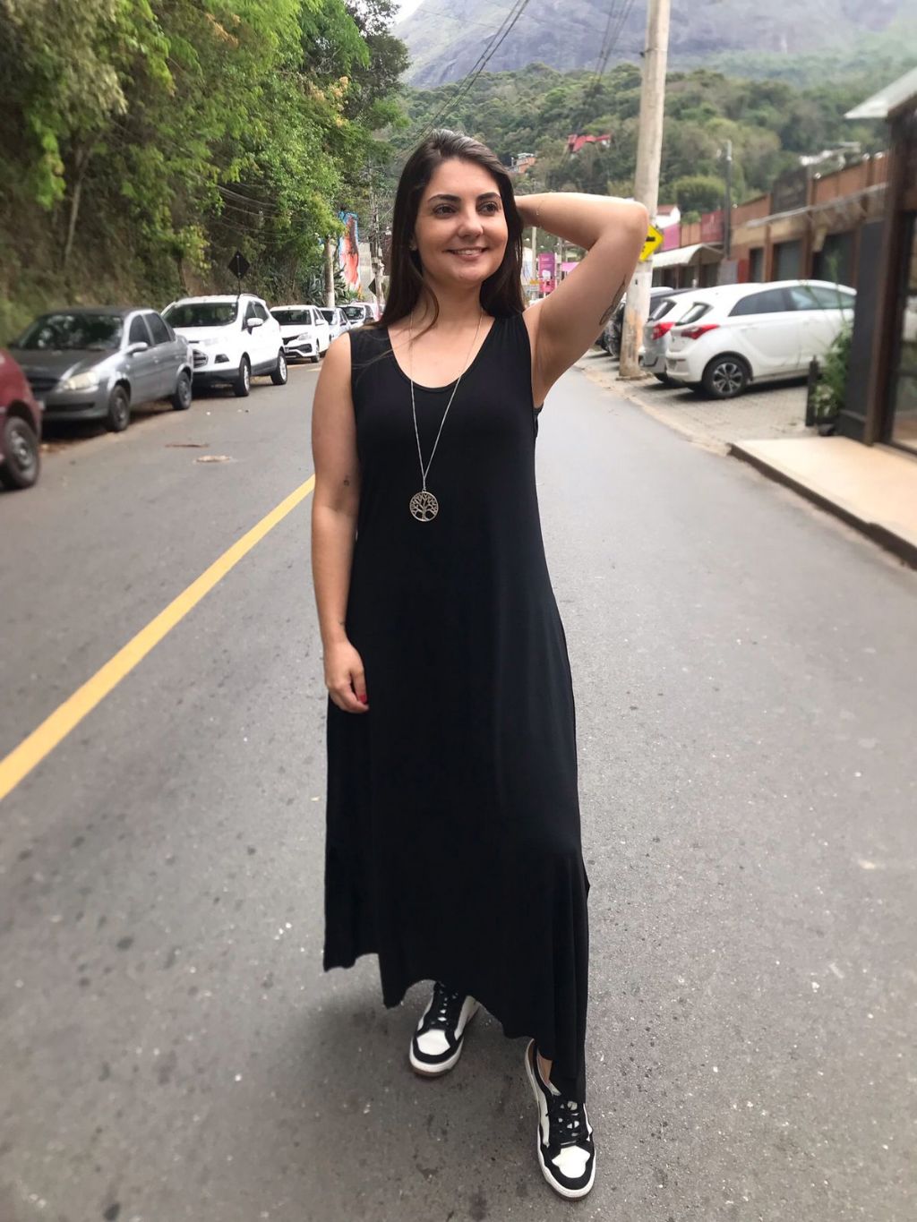 Vestido Liso Longo com Fenda Lateral e Bolso Vestidos Feminino de Malha Viscolycra Roupas Femininas
