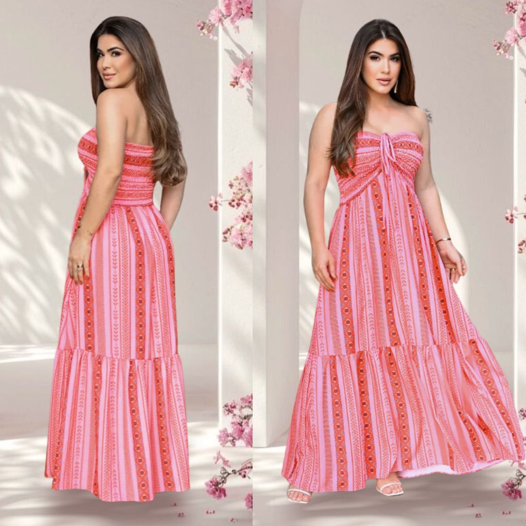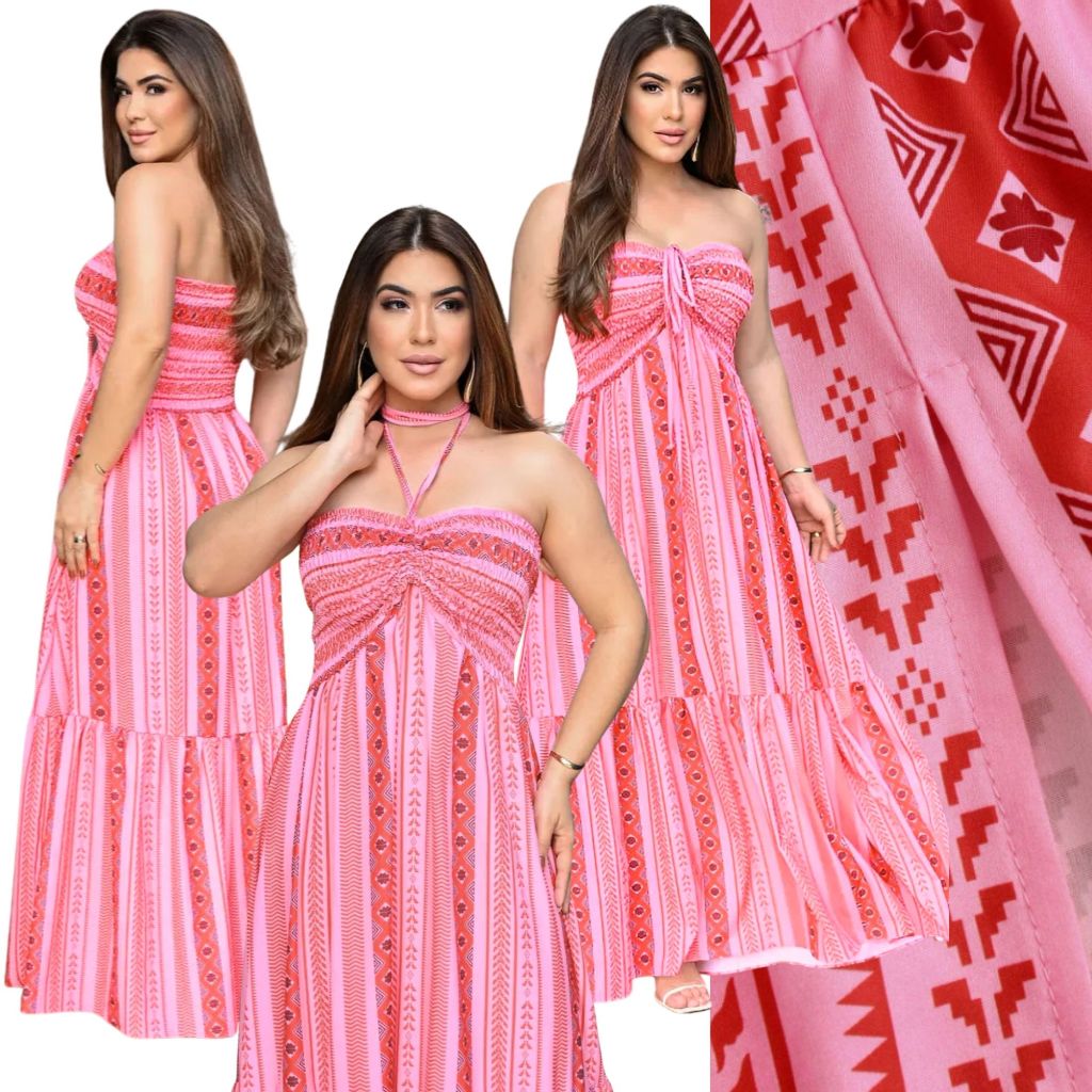 Vestido Longo Boho Tomara Que Caia Tribal – Ideal para Sair, Praia – Moda Feminina Verão