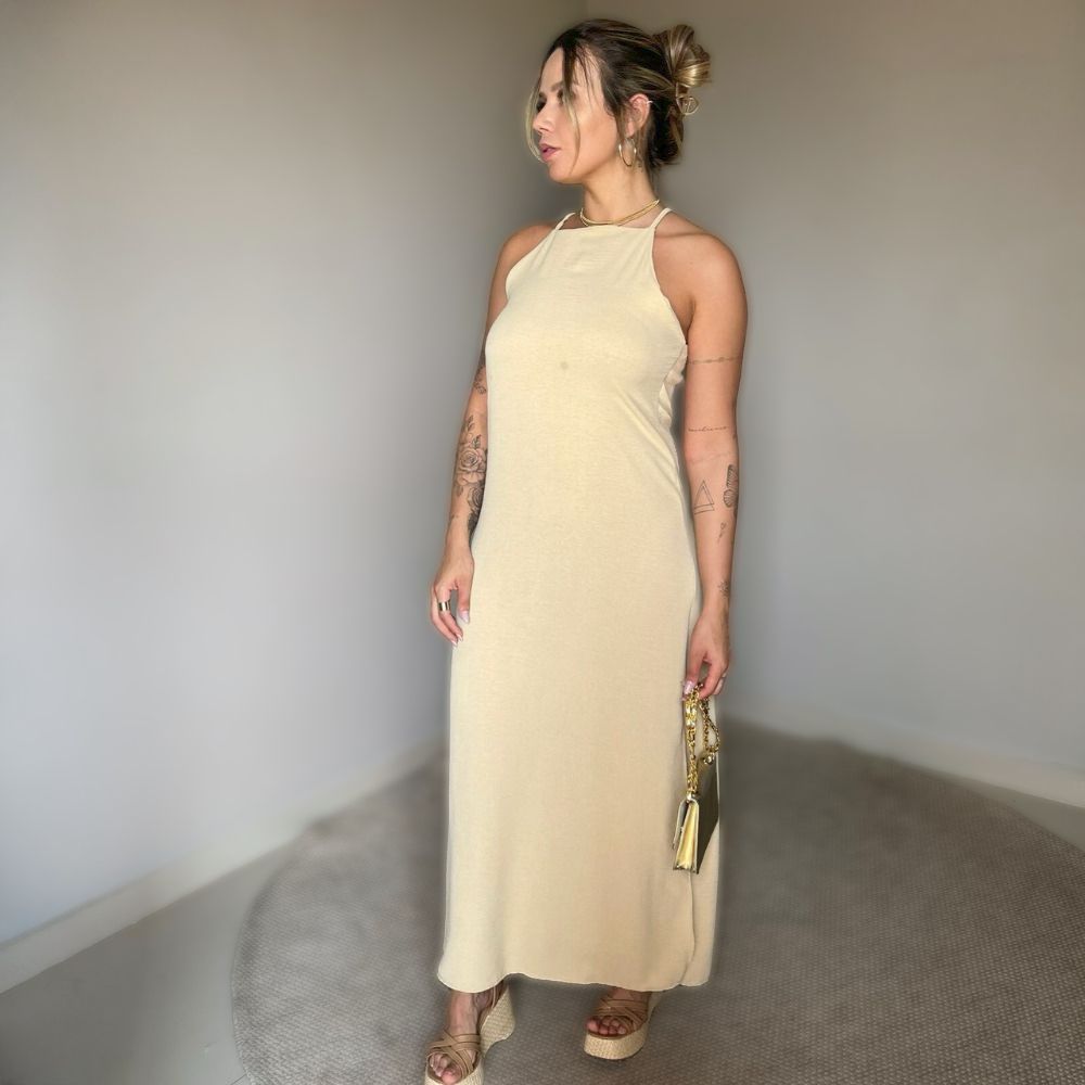 Vestido Longo Brenda Feminina Com Fenda Alça Regulavél Cores Verão 2024 Tecido Leve Fresco