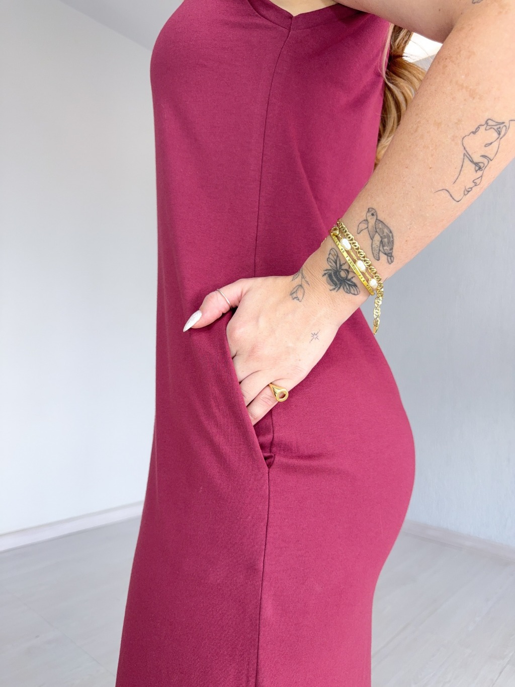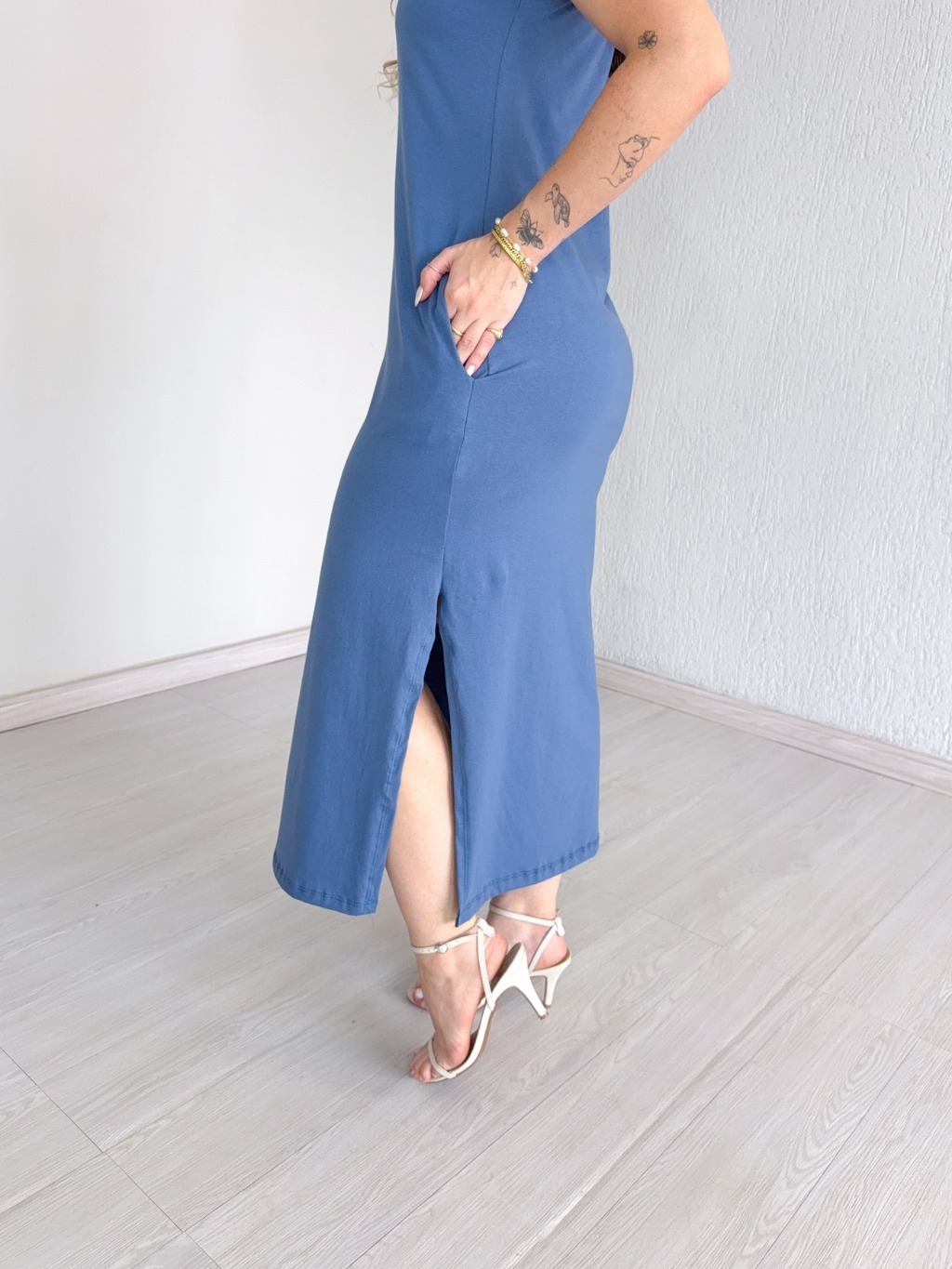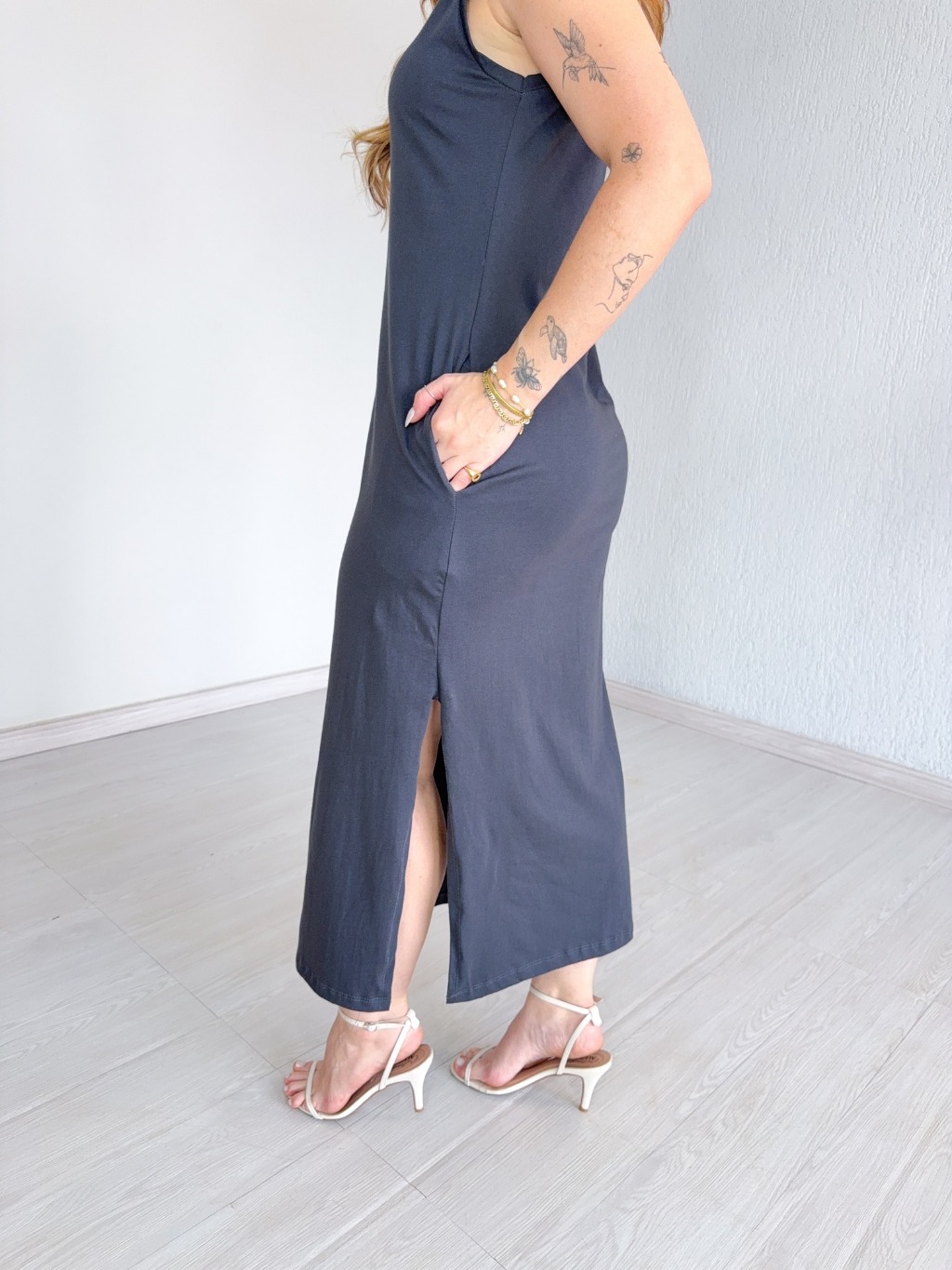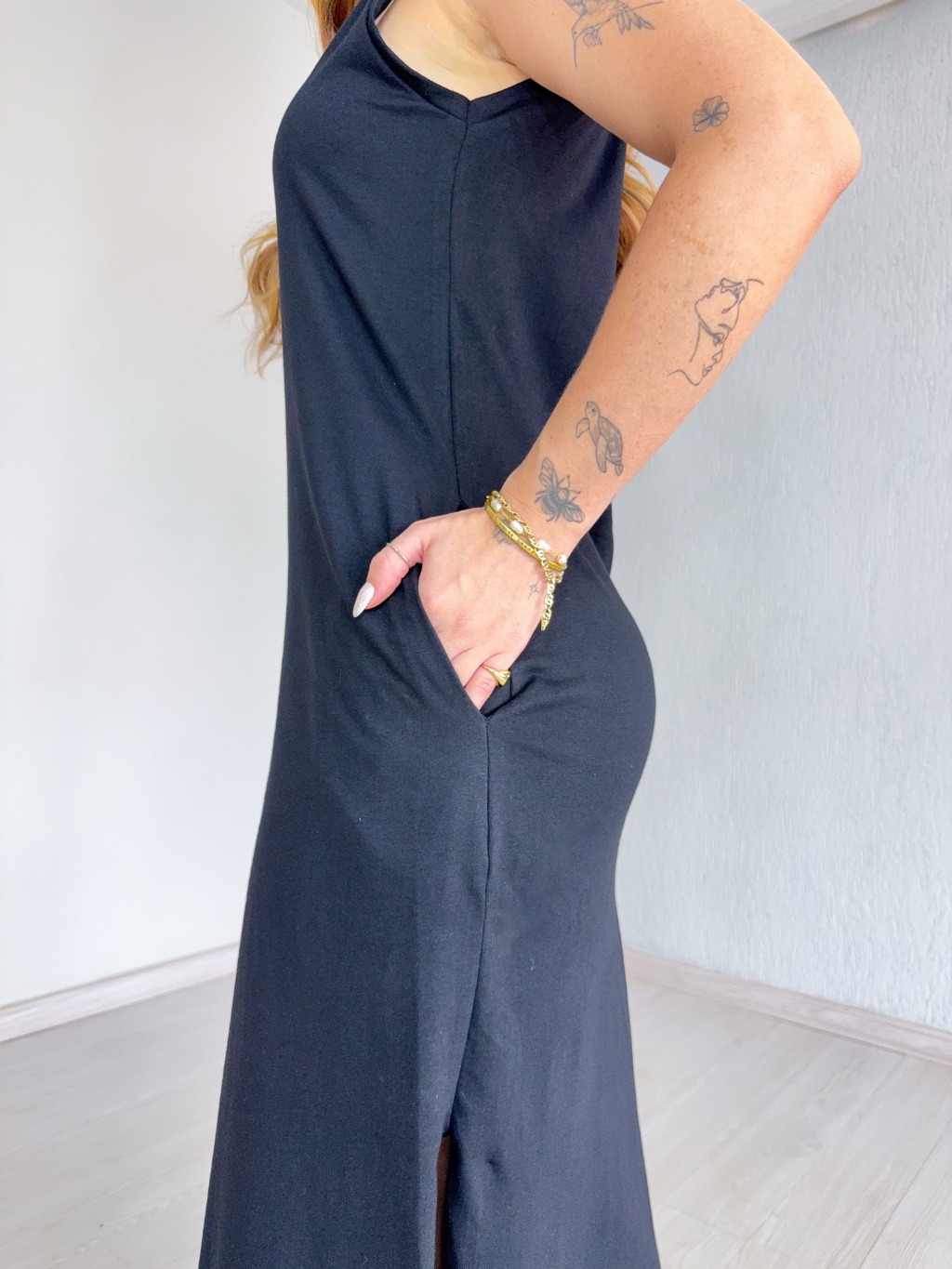 Vestido Longo Cavado C/Bolso 100% Algodão