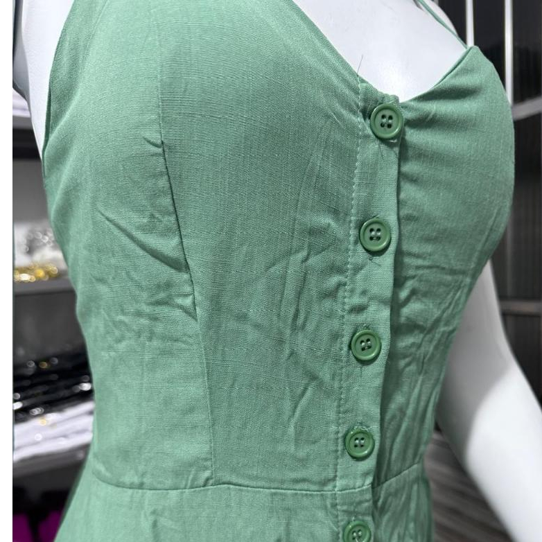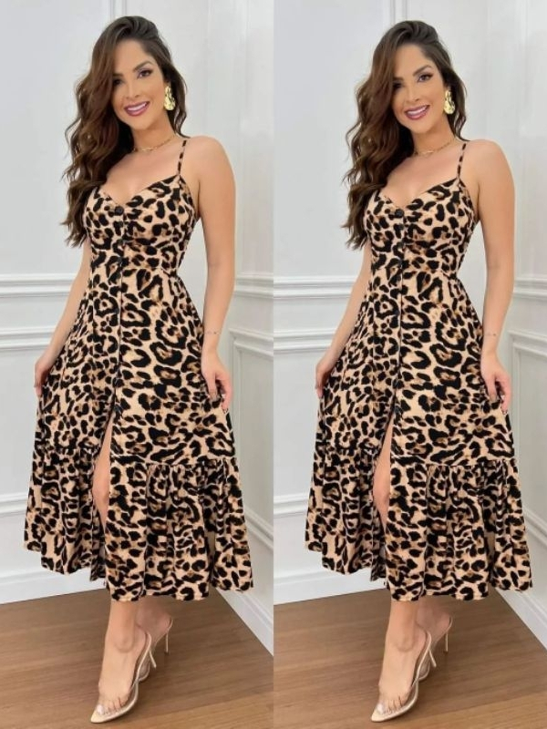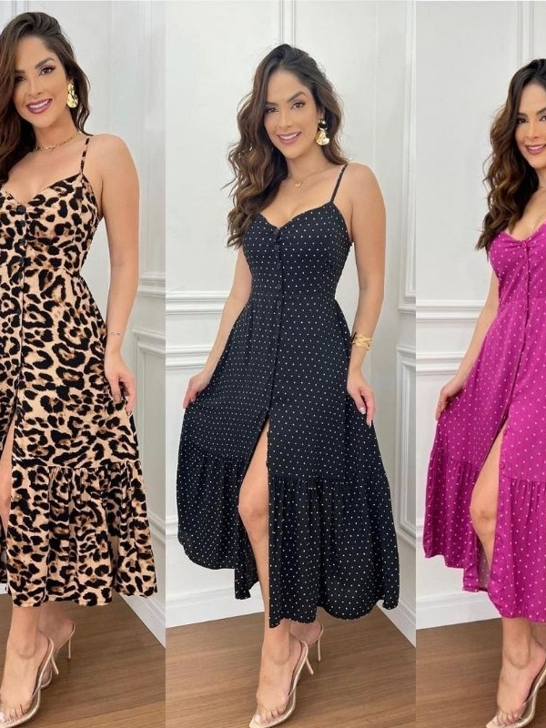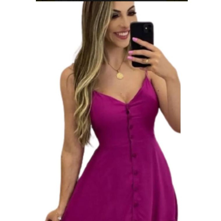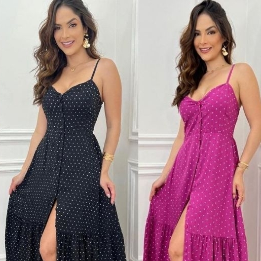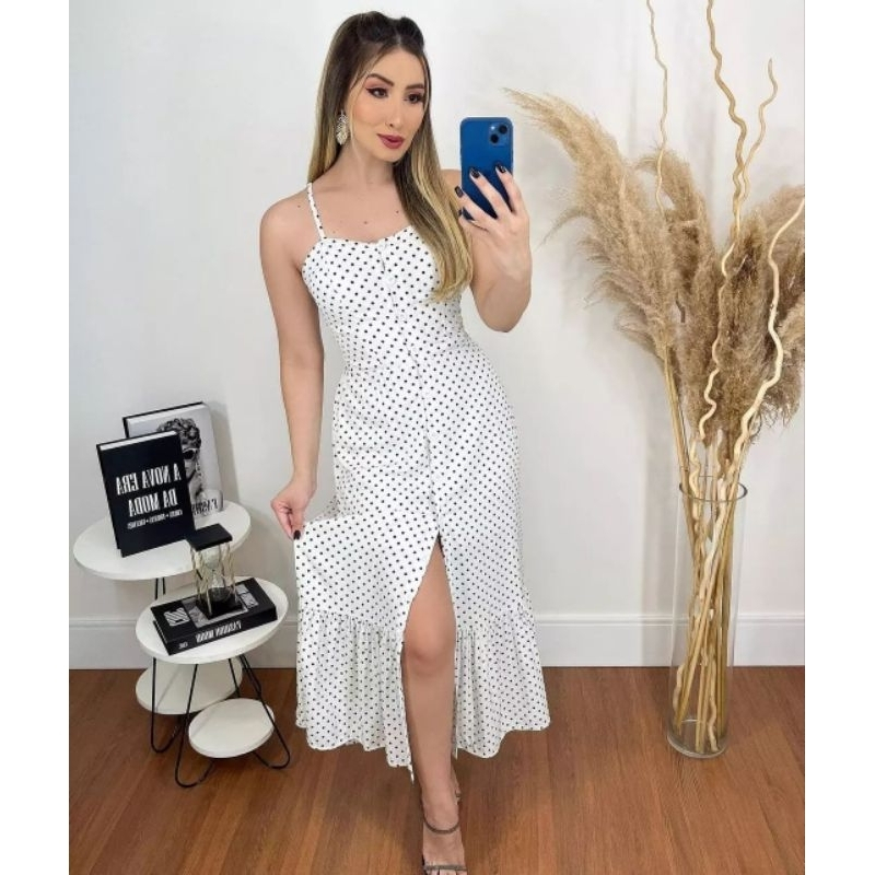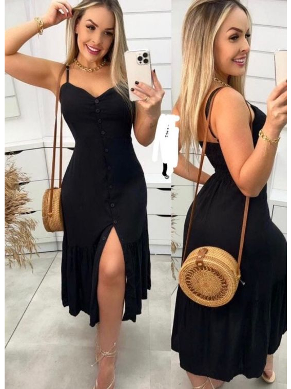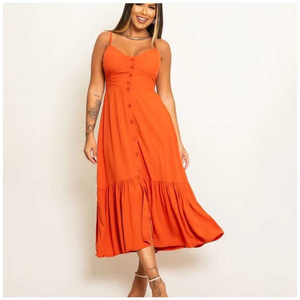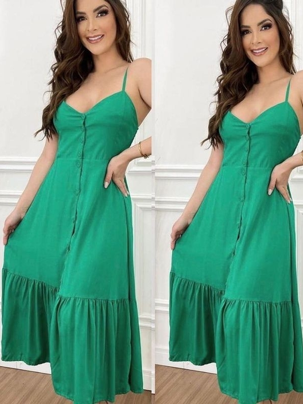 Vestido Longo Com Botões A Frente Com Babado e Bojo Elástico Costas Moda 2026