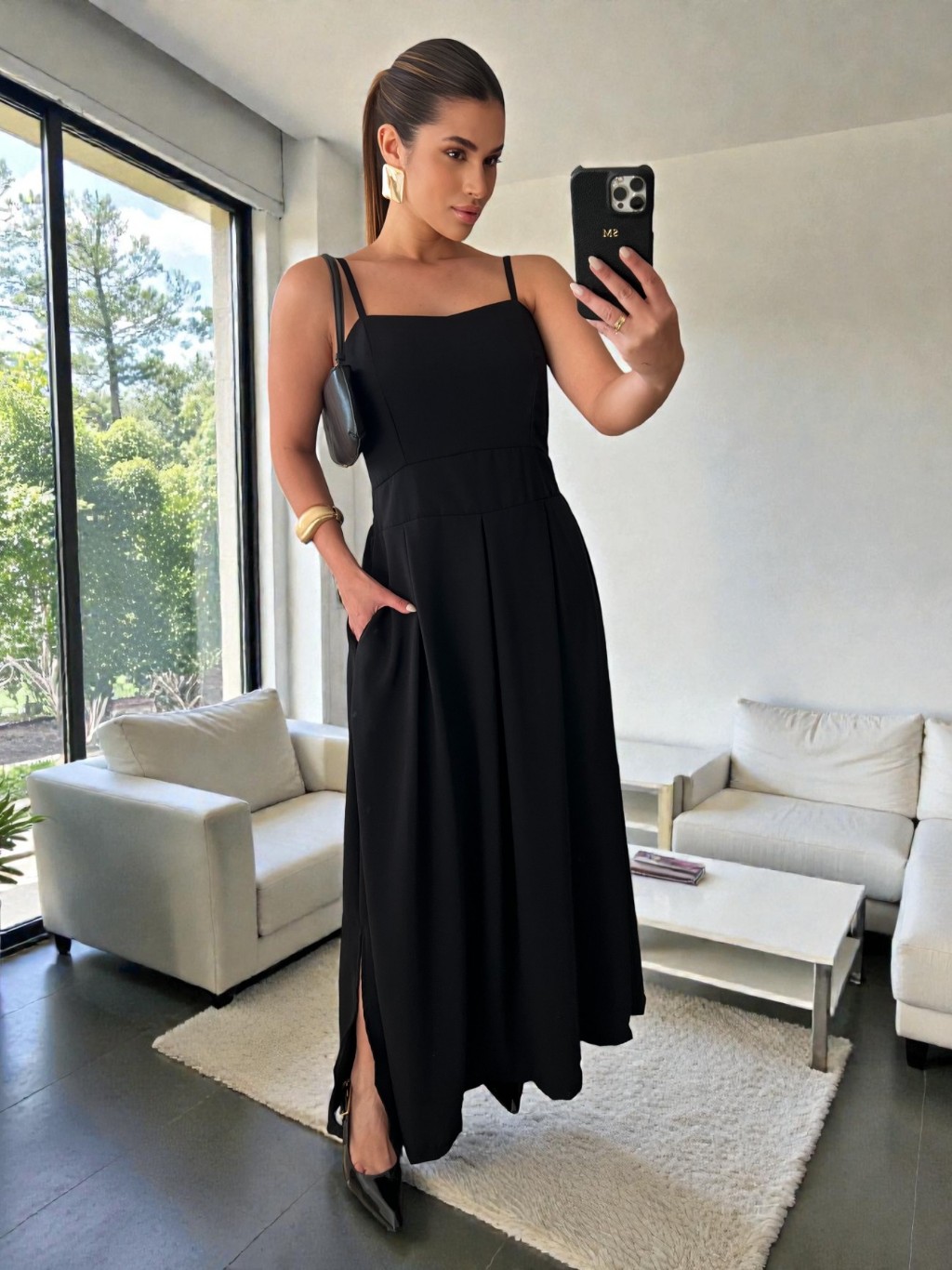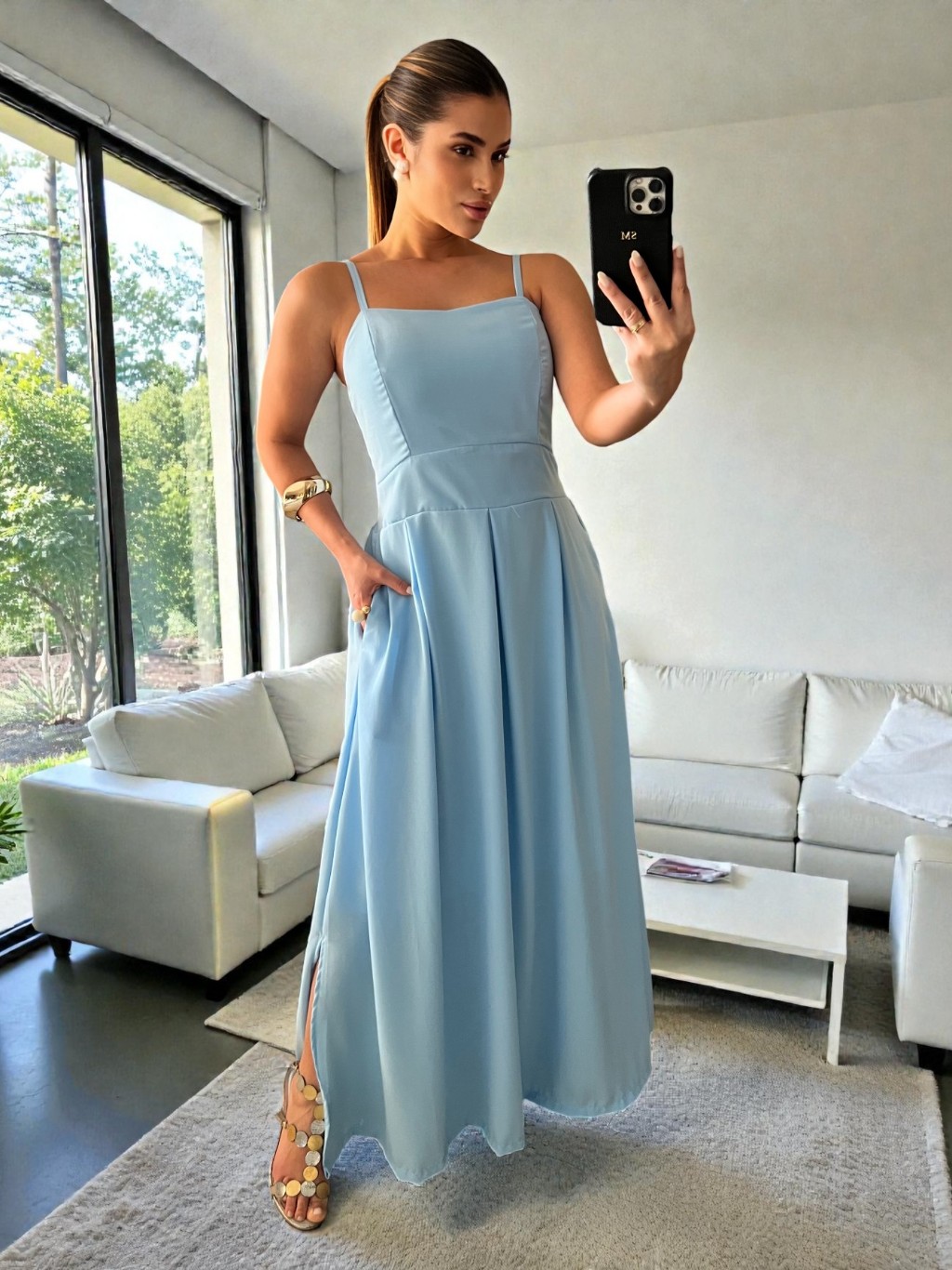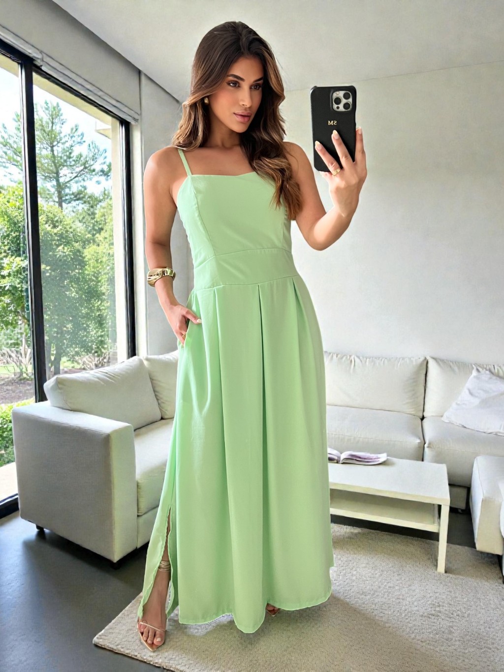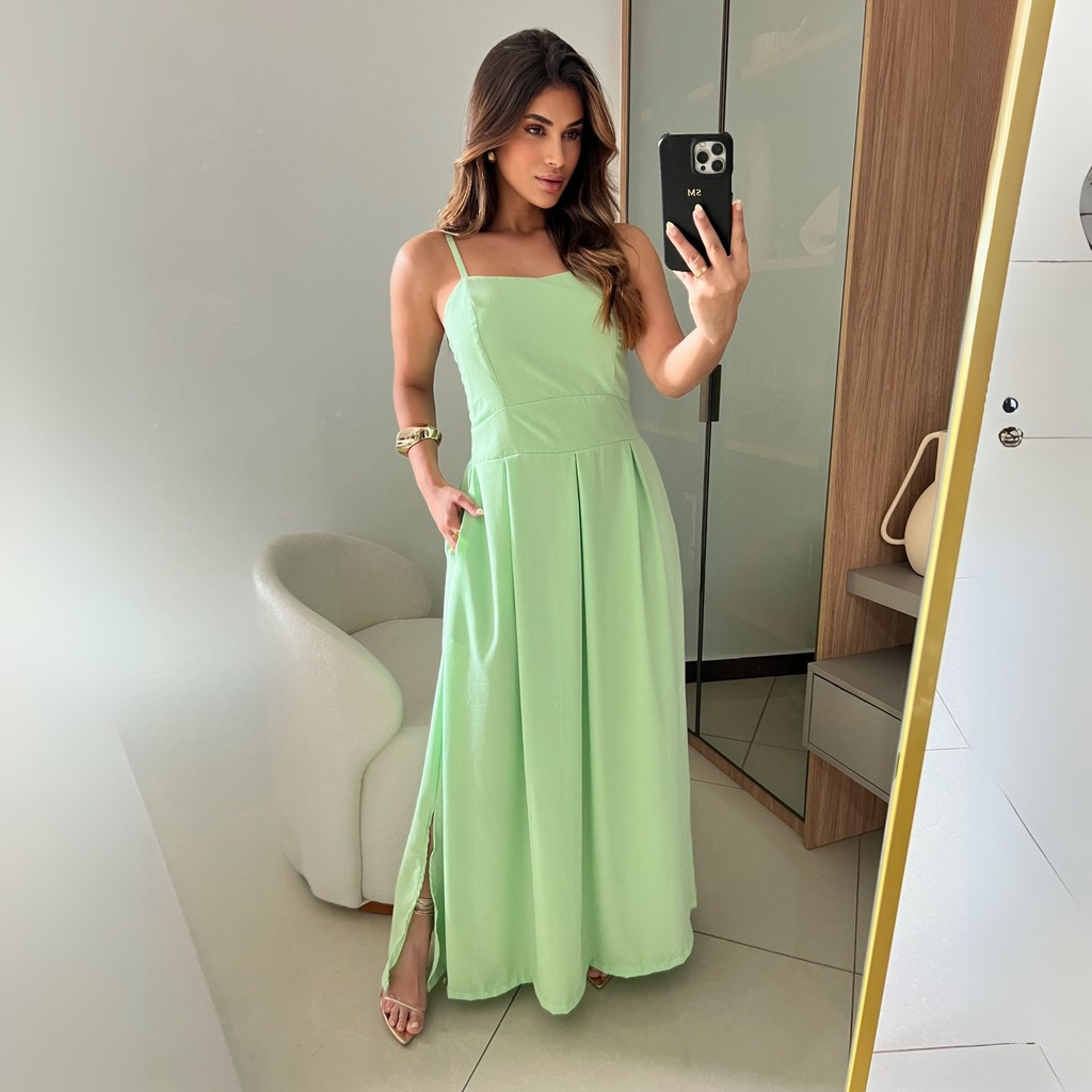 Vestido Longo Elegante Feminino Festa Casamento Madrinha Formatura com Fenda Moderna e Charmosa