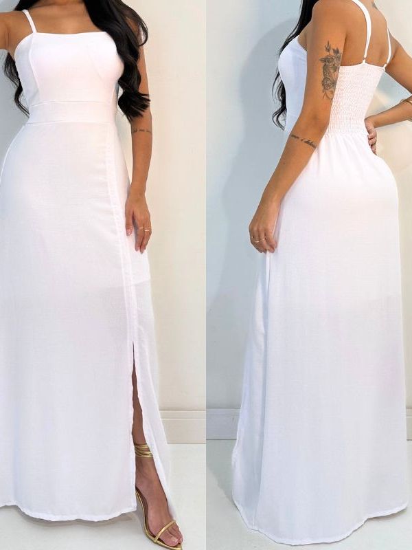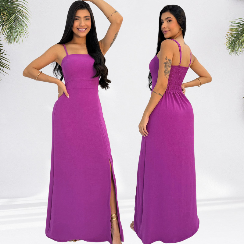 Vestido Longo Elegante Feminino Madrinha Noiva Dunas Não Amassa Lastex Casual Festa Casamento