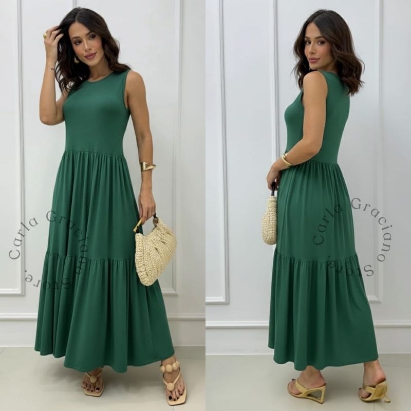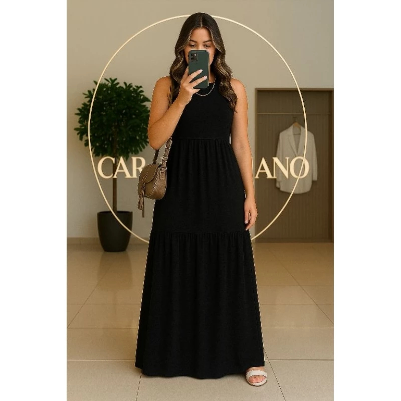 Vestido Longo Feminino 3 Marias Cavado Malha Versátil Inverno e Verão Casual Elegante 502