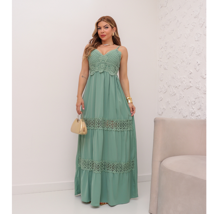 Vestido Longo Feminino Elegante Com Bojo Alcinha Festa Casamento Verão 3RD SD1294