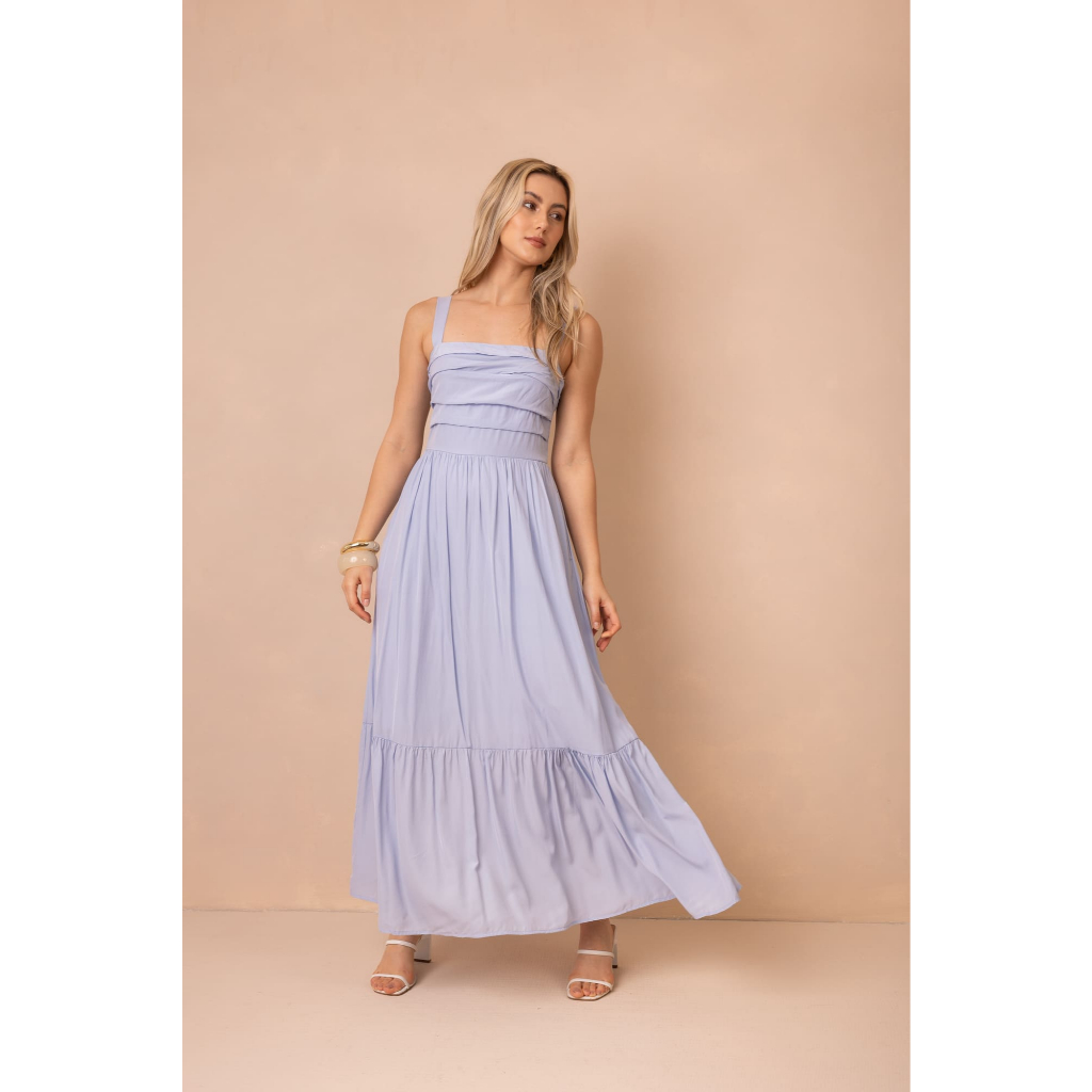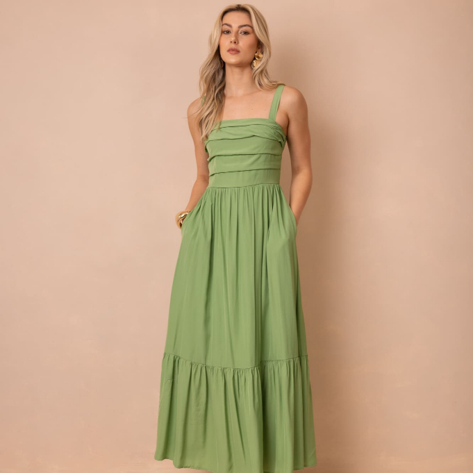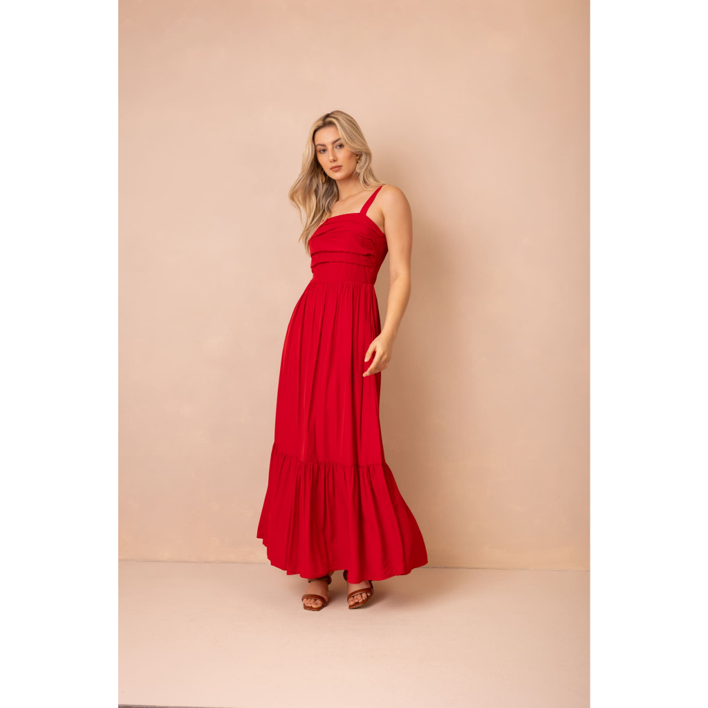 Vestido Longo Feminino Emma Slim Drapeado Alcinha Elegante Estilo Princesa Moda Festa Verão