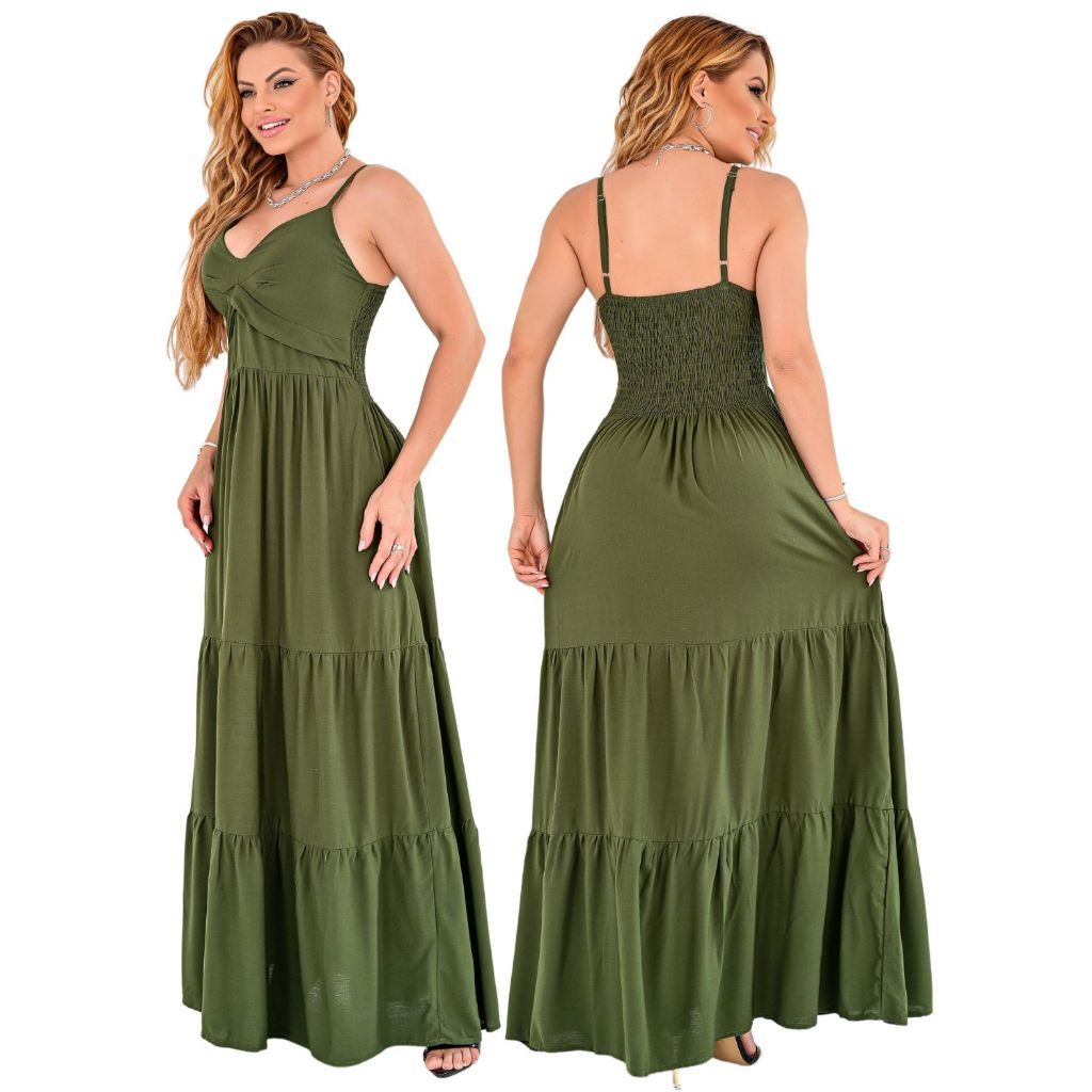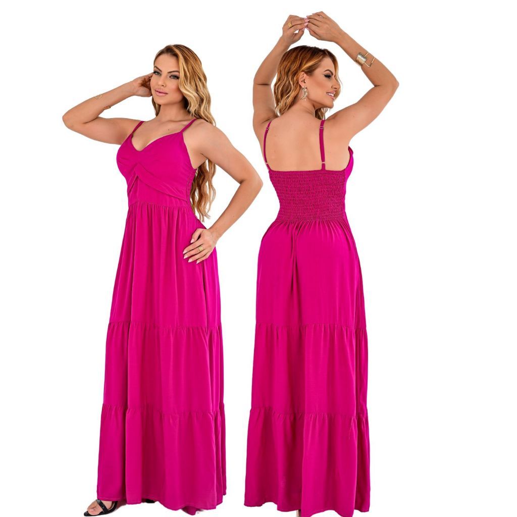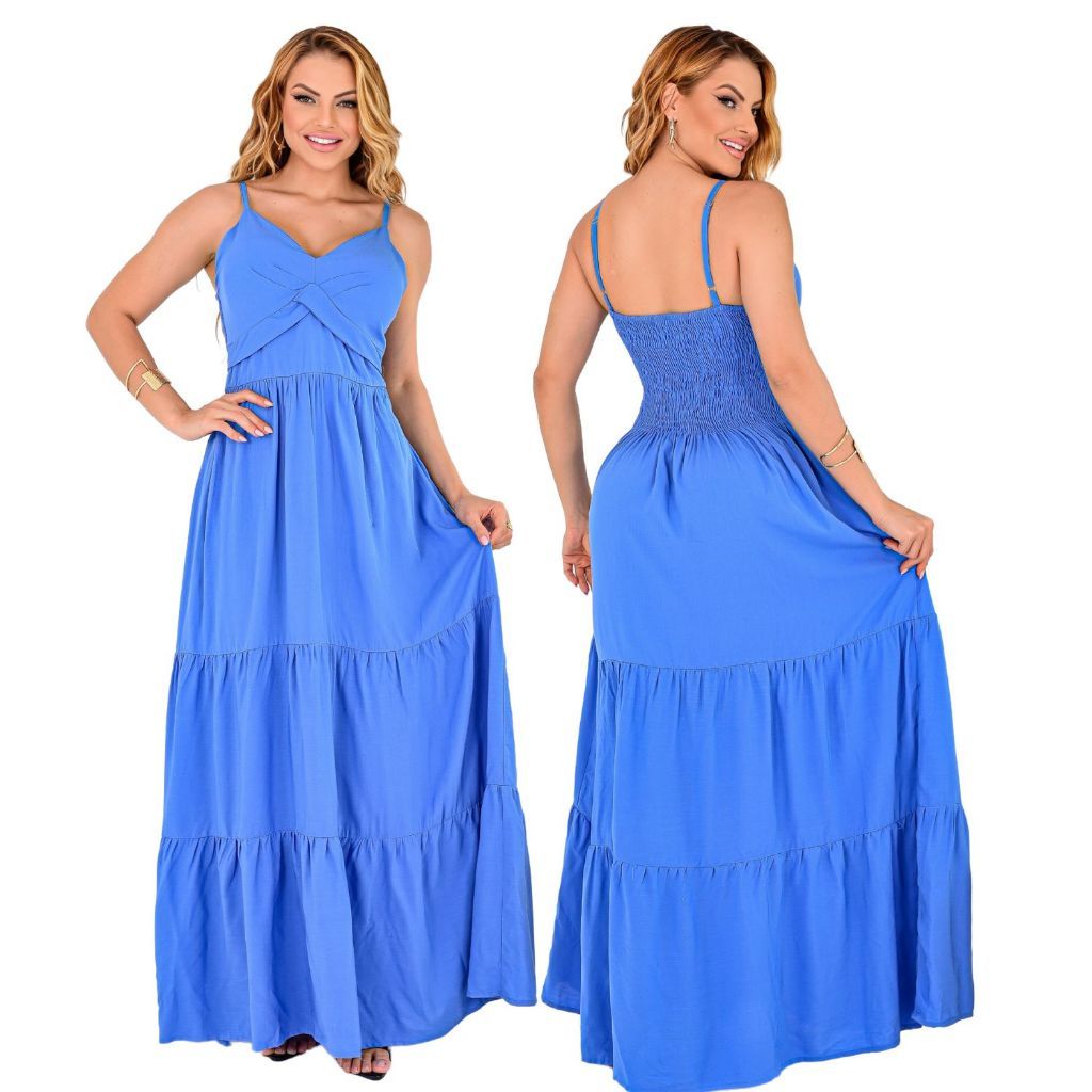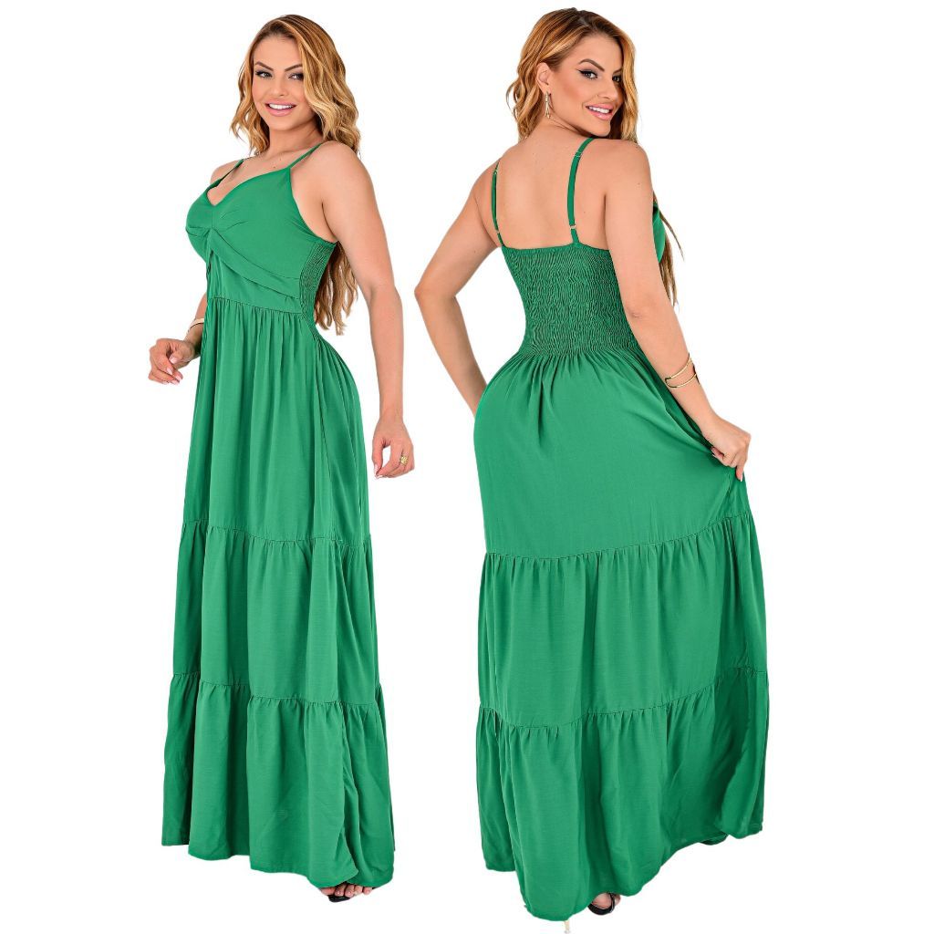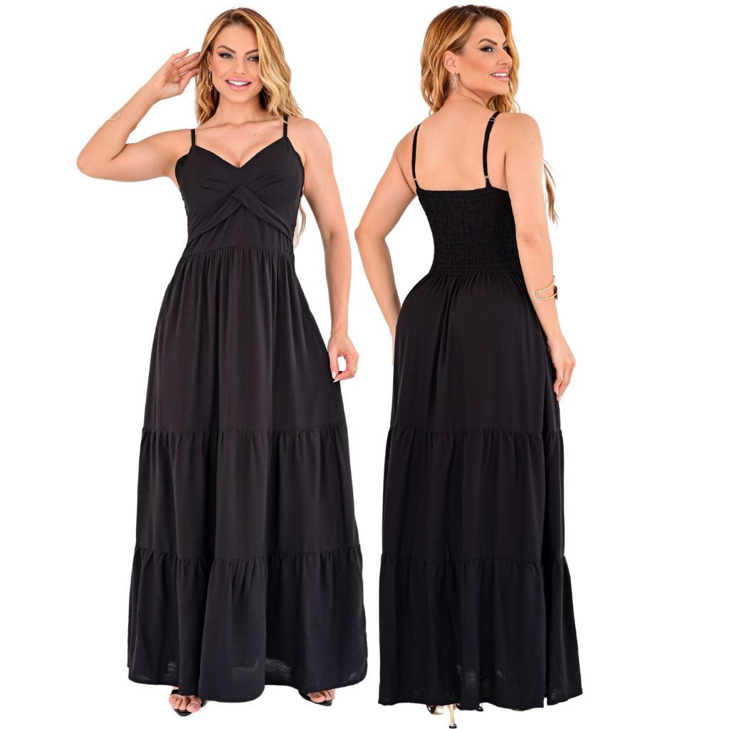 Vestido Longo Feminino Liso Moda Festa Madrinha Alça Regulável Ótimo Caimento Elegante Soltinho