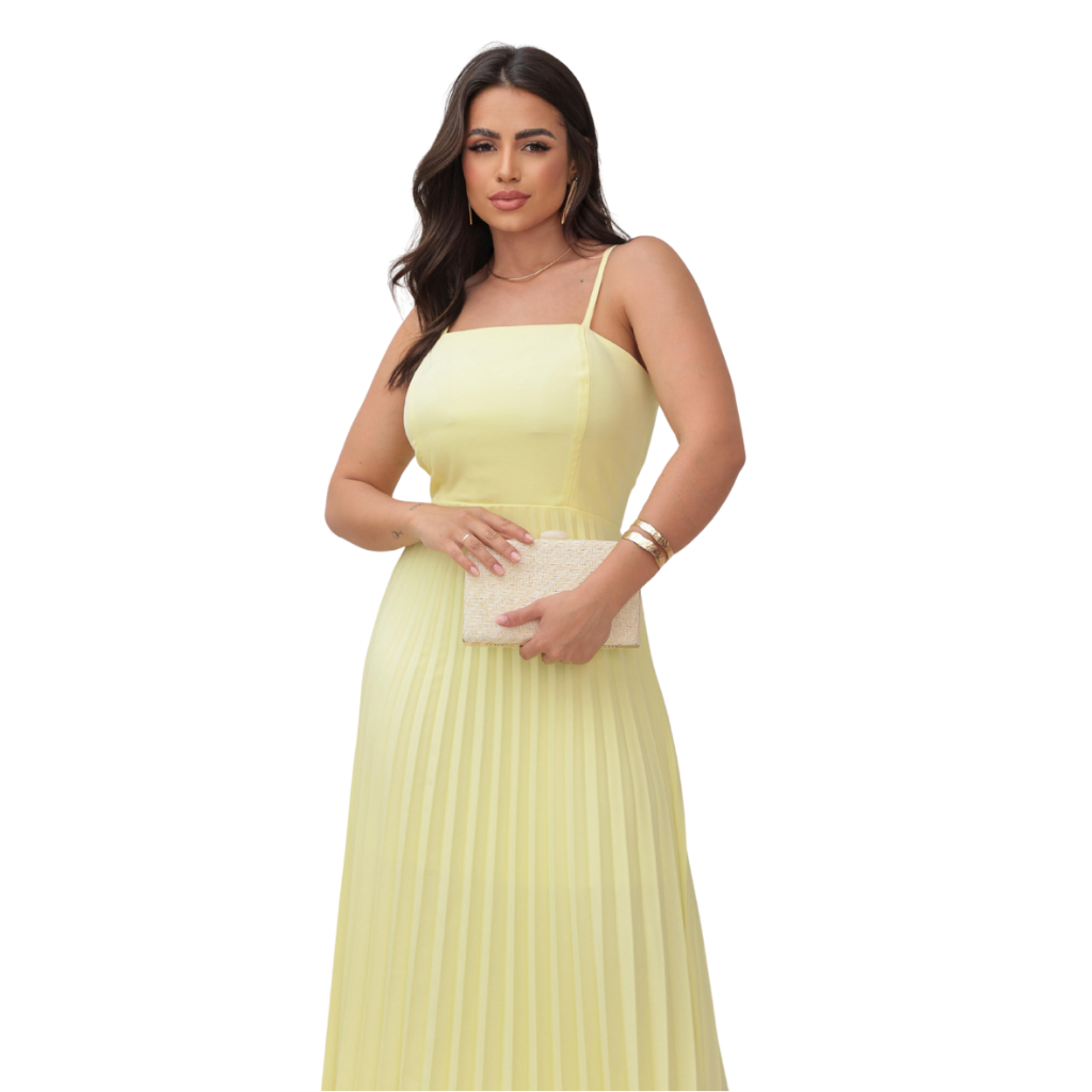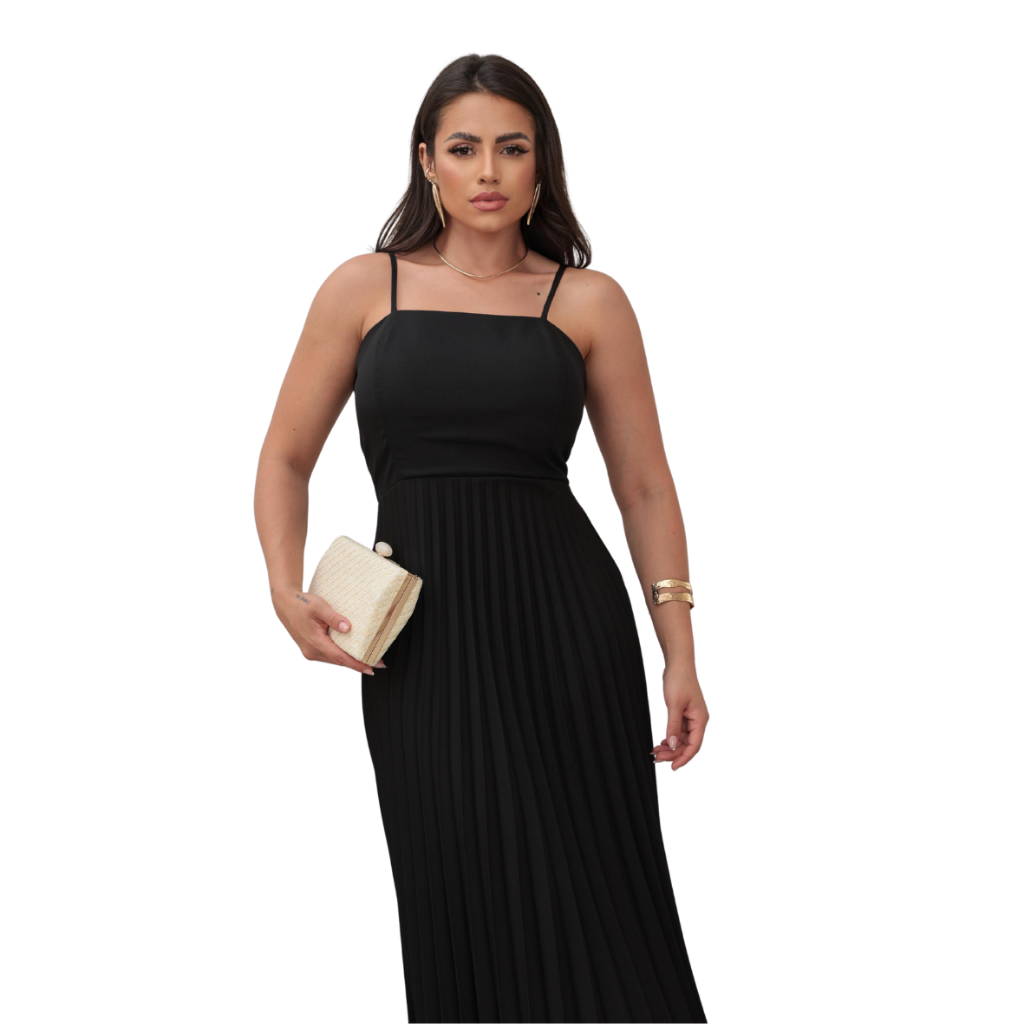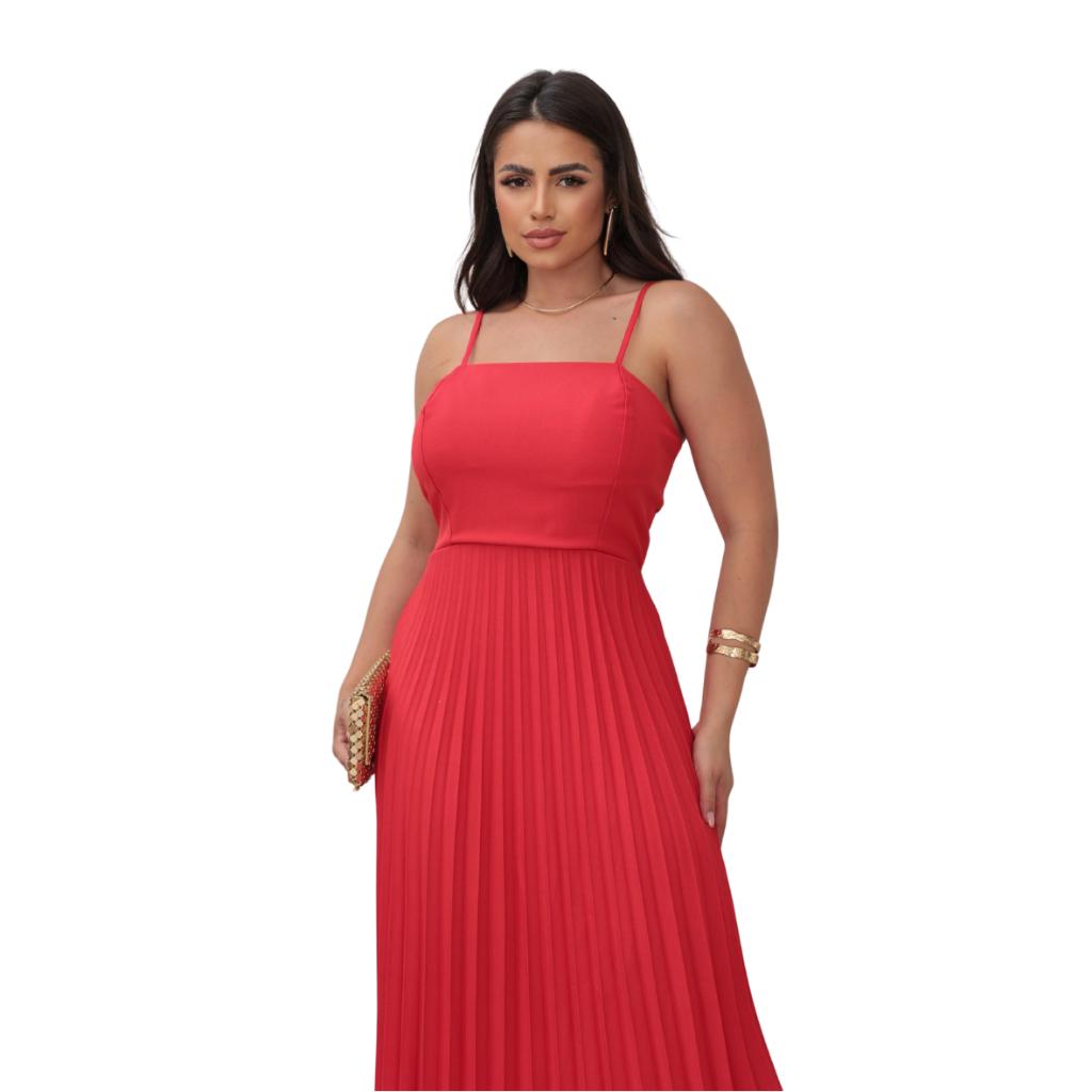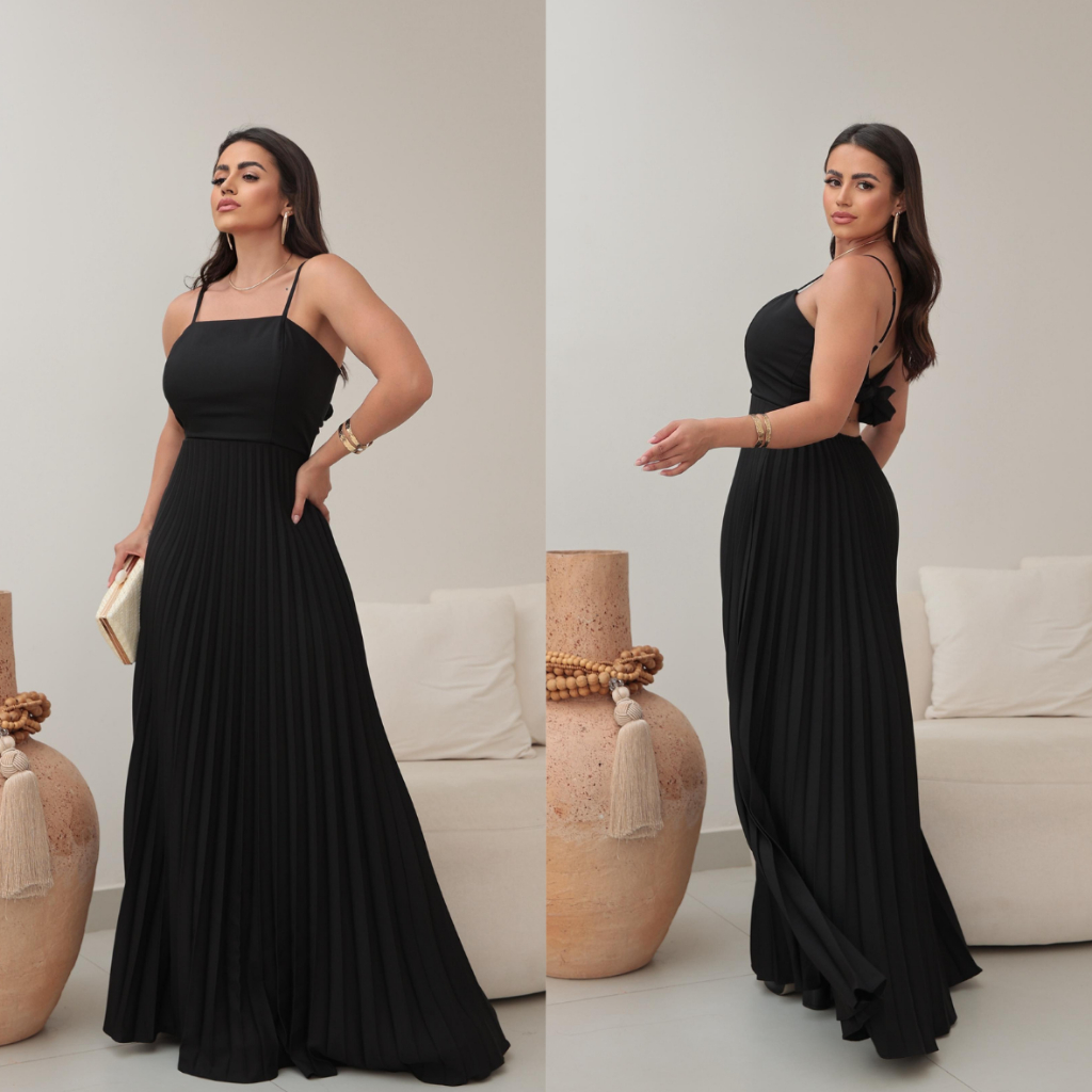 Vestido Longo Feminino Plisado Com Bojo Tecido luis twill Eventos Formatura Festas Vestido Soltinho