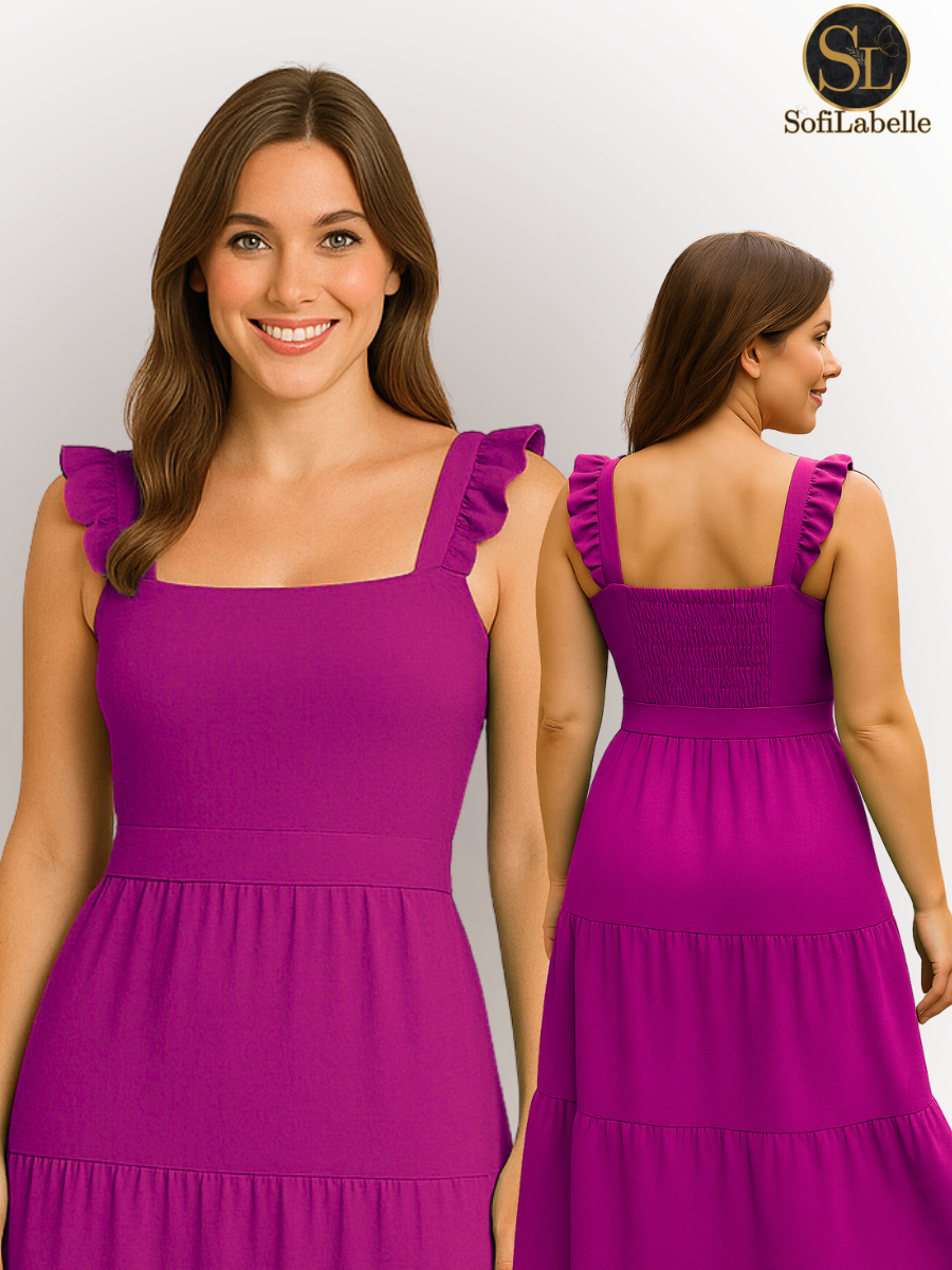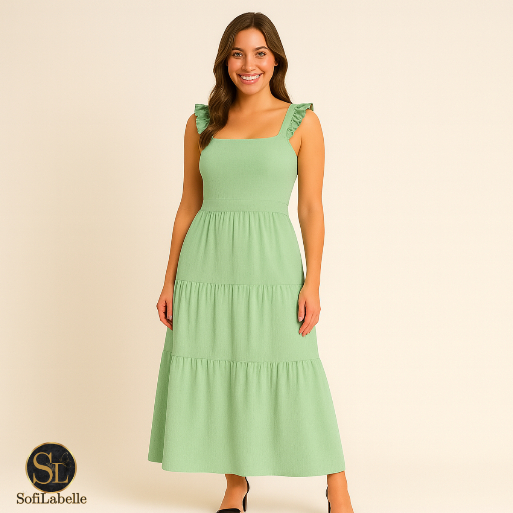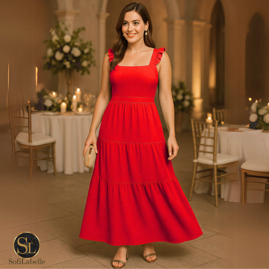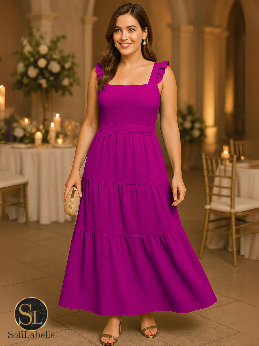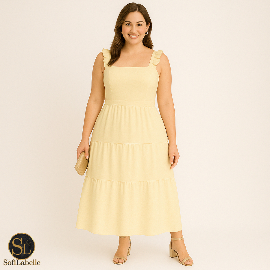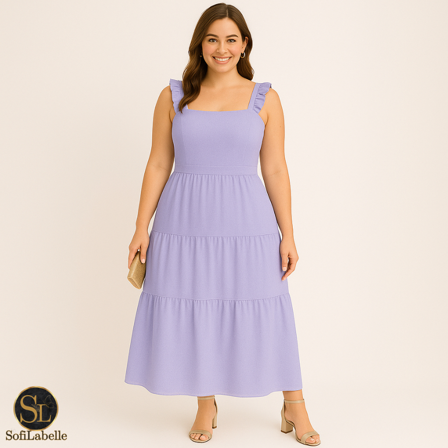 Vestido Longo Feminino Plus Size Três Marias Moda Evangélica Elegante Festa Manga Alça Babado Duna