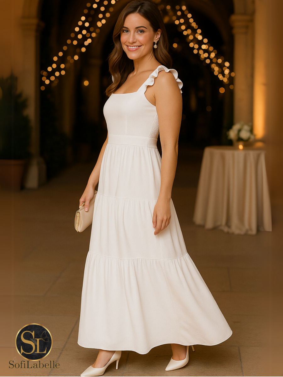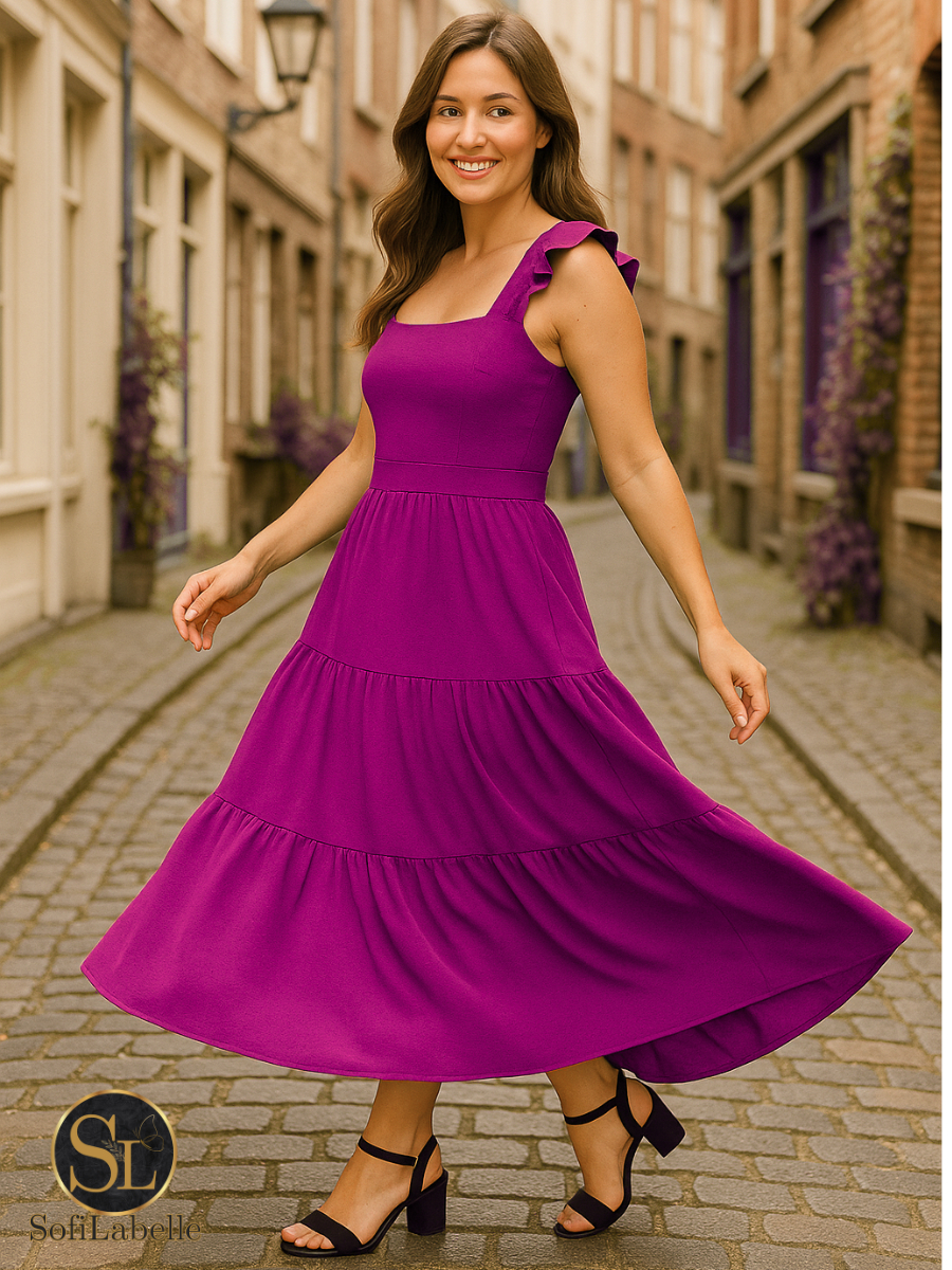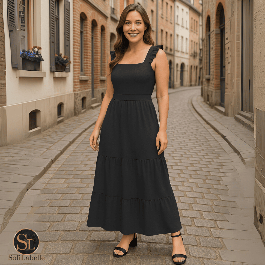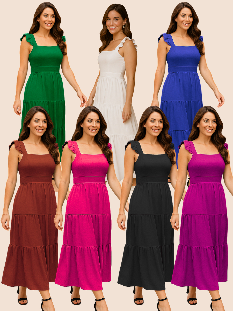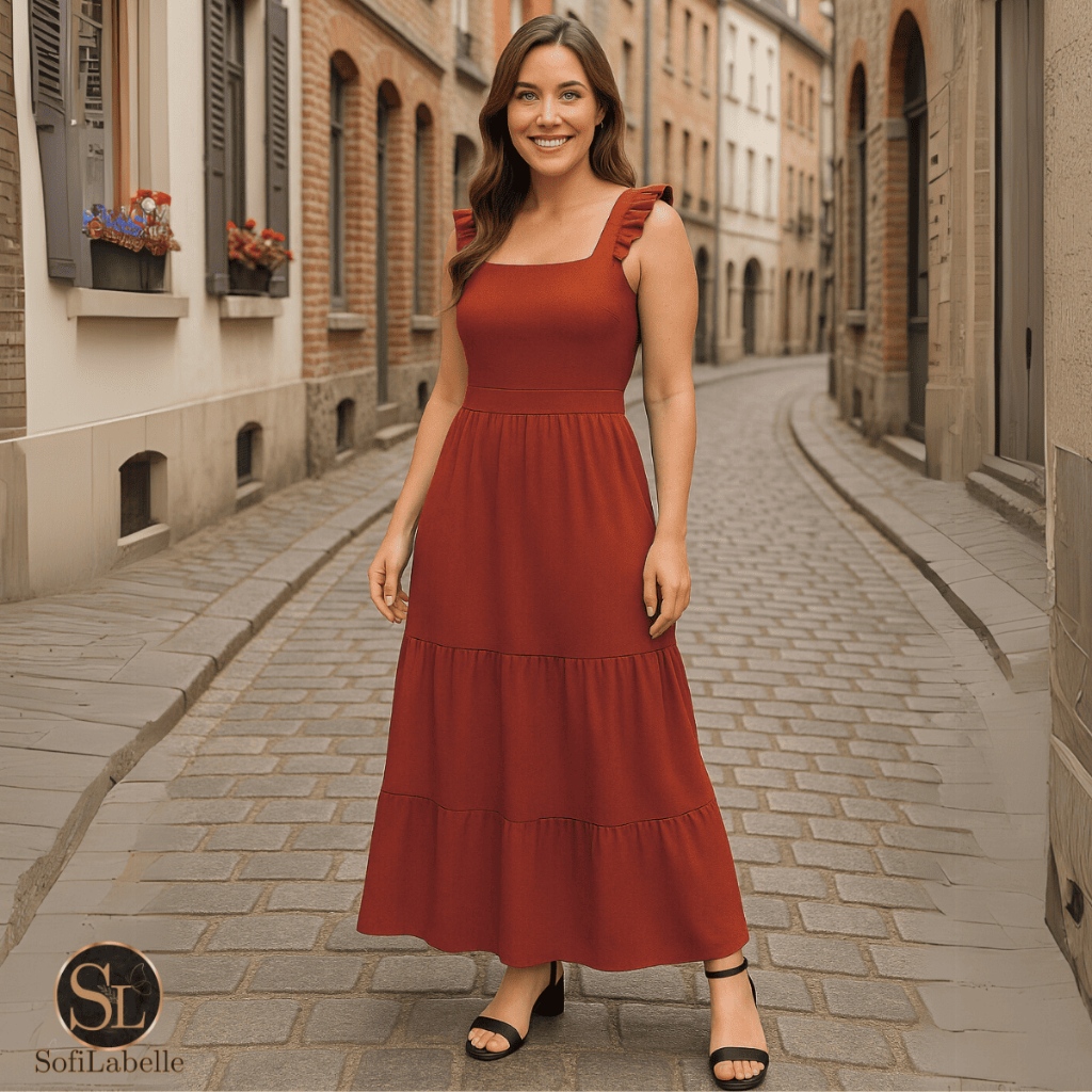 Vestido Longo Feminino Plus Size Três Marias Moda Evangélica Elegante Festa Manga Alça Babado Duna