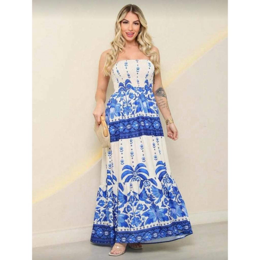 Vestido Longo Floral Tomara que Caia Elegante Praia Paseio