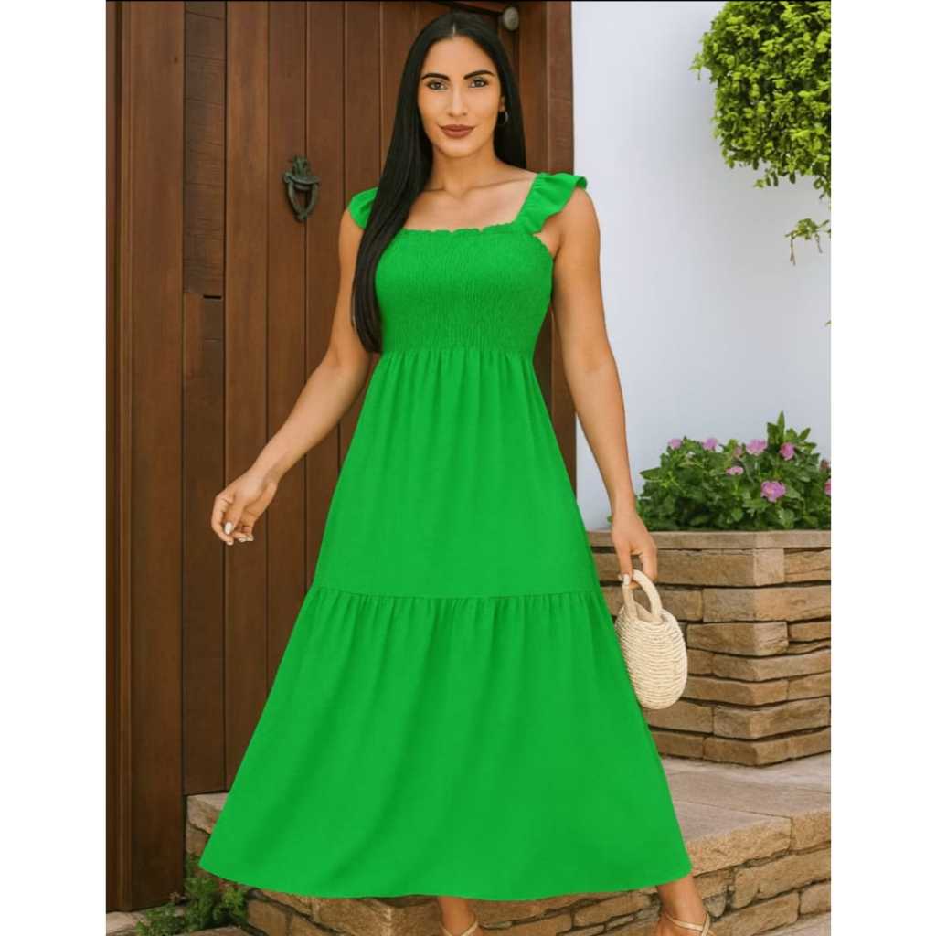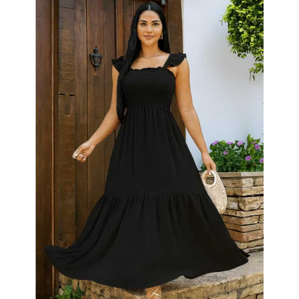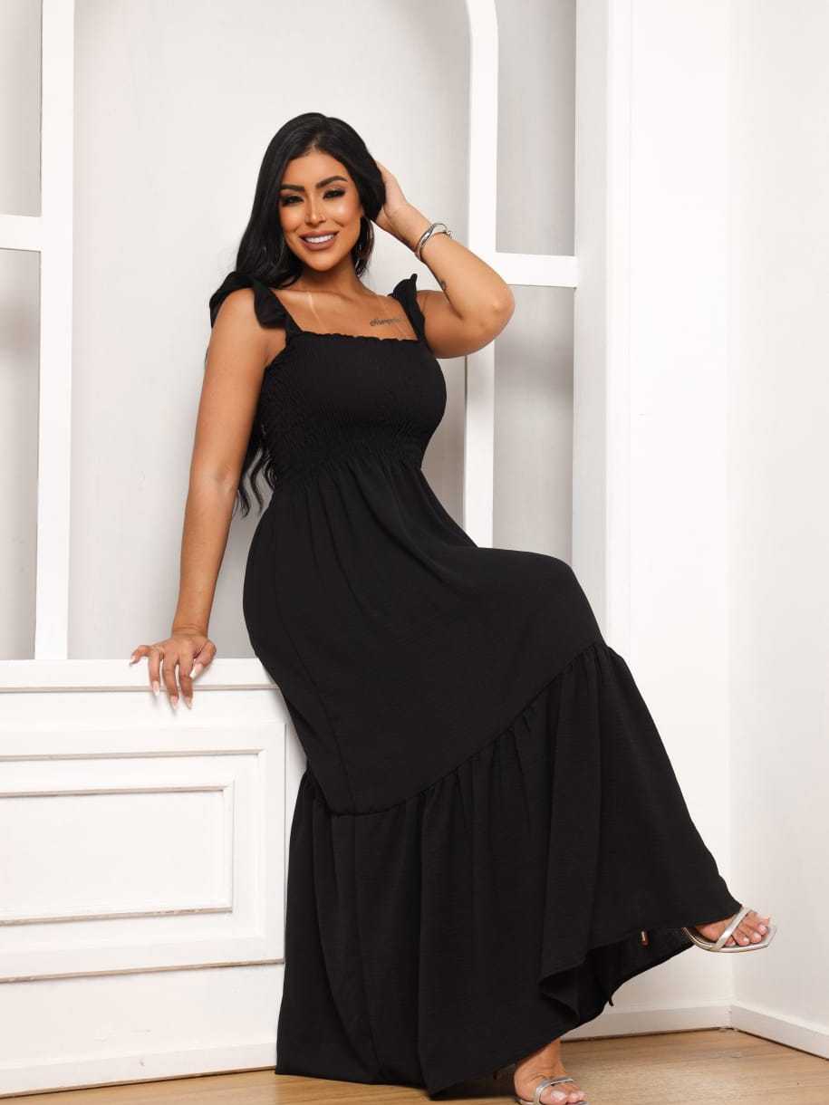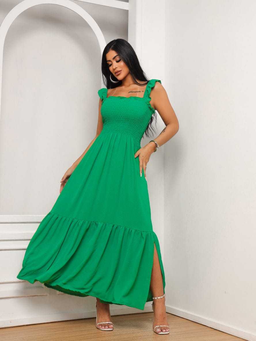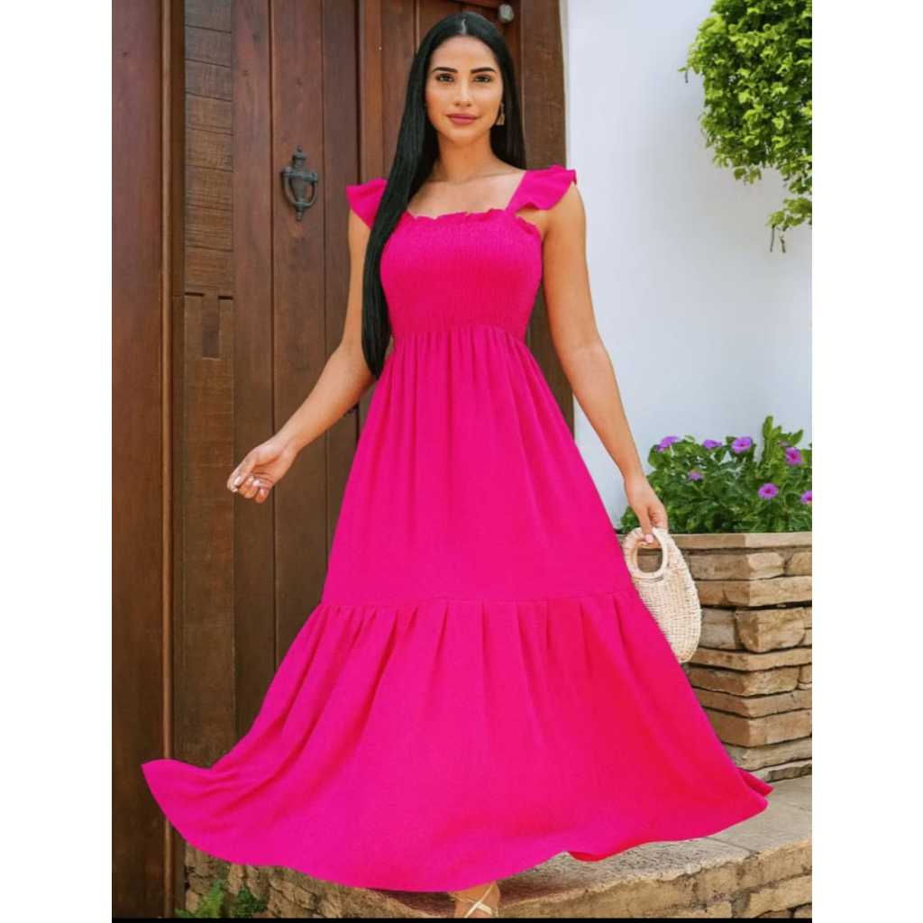 Vestido Longo Liso Lastex Feminino Soltinho Moda Casual Elegante Evangélica Festa Casamento