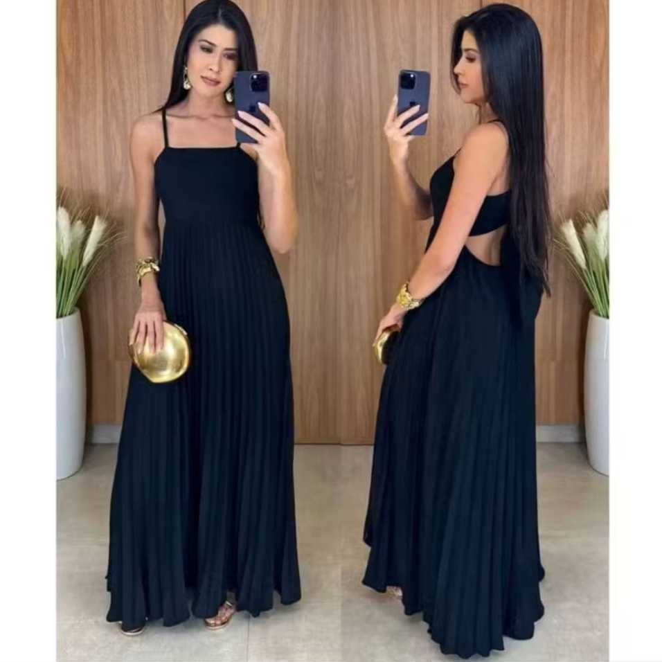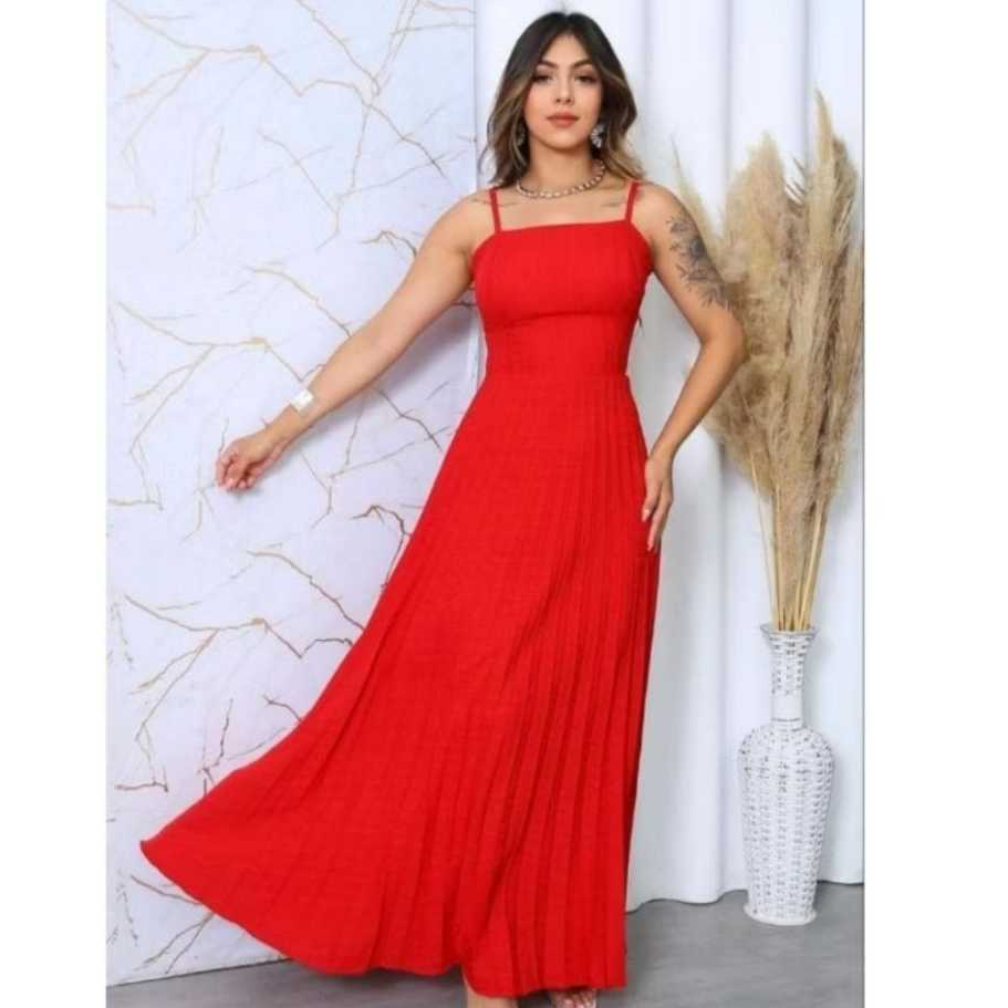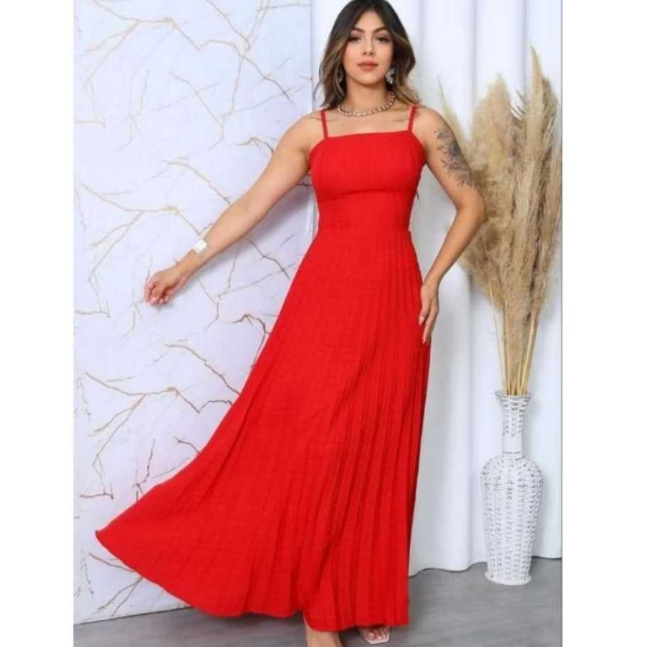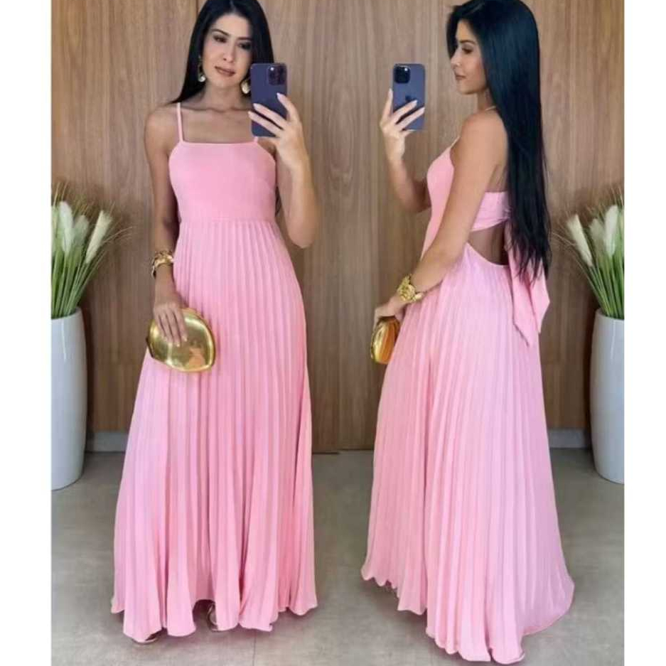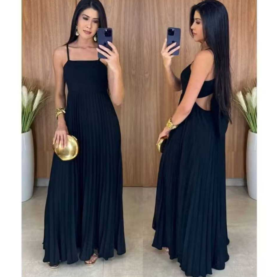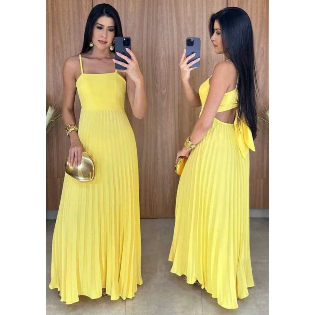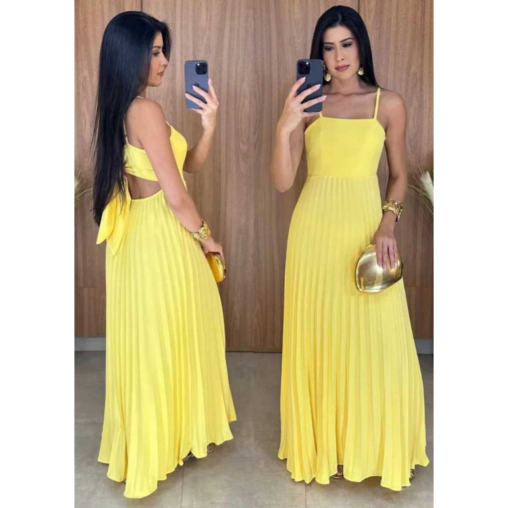 Vestido Longo Plizado Com Amarração Nas Costas
