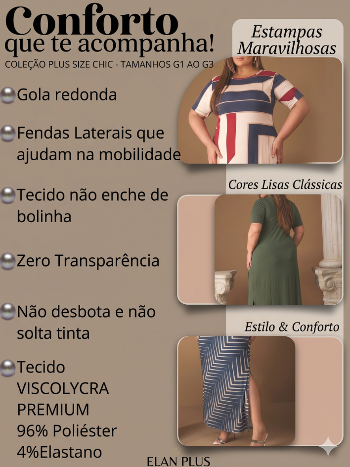 Vestido Feminino Plus Size Moda Evangélica 44 ao 58 Fenda Lateral Festa Casual Trabalho Verão Social