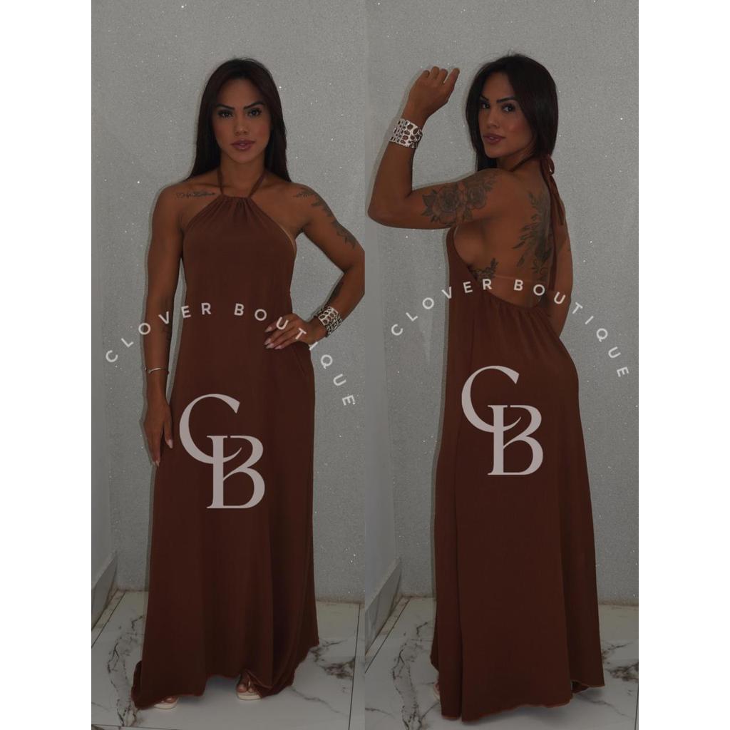 Vestido Longo Solto Feminino Alcinha Frente Única Festa costa nua