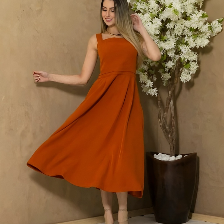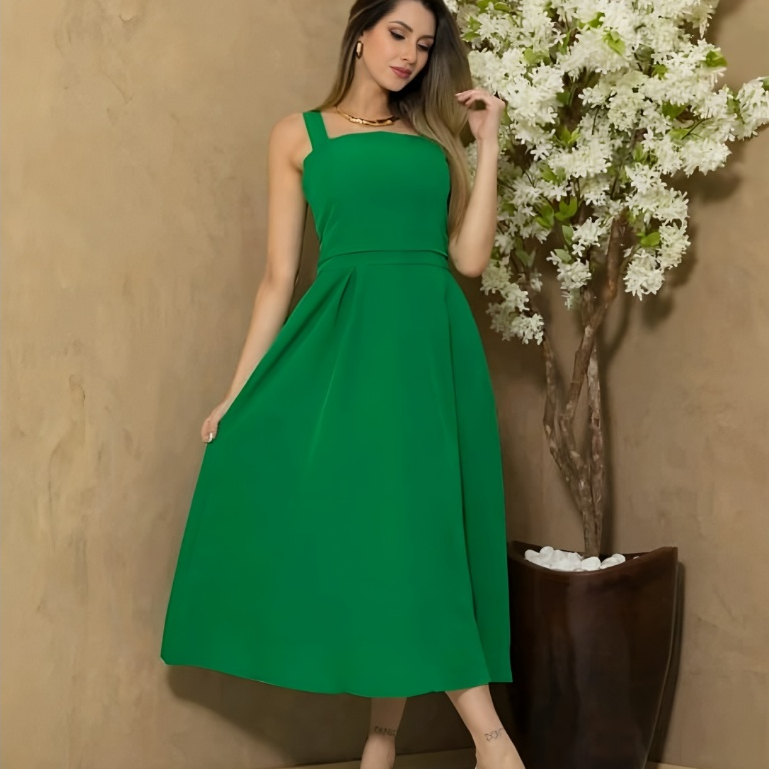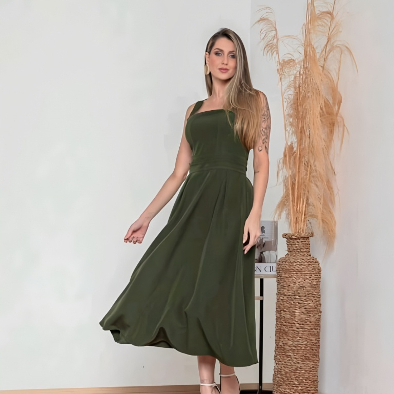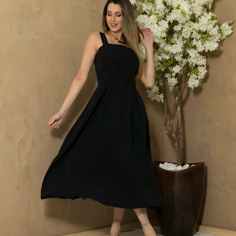 Vestido Longo Tecido Alfaiataria com Bojo Ziper