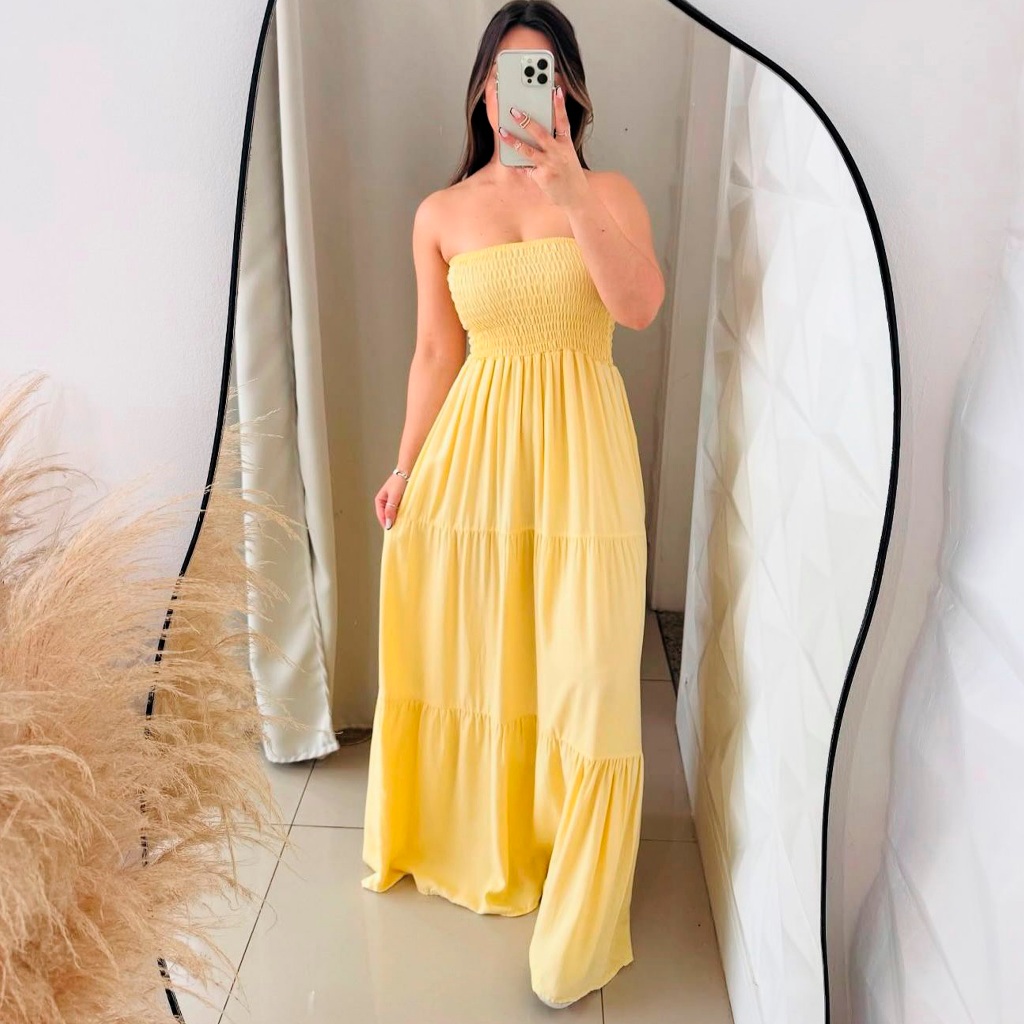Vestido Longo Tomara que Caia Estampado Liso Elegante Festa Praia Estilo Casual Moda 2026 ENVIO RAPIDO