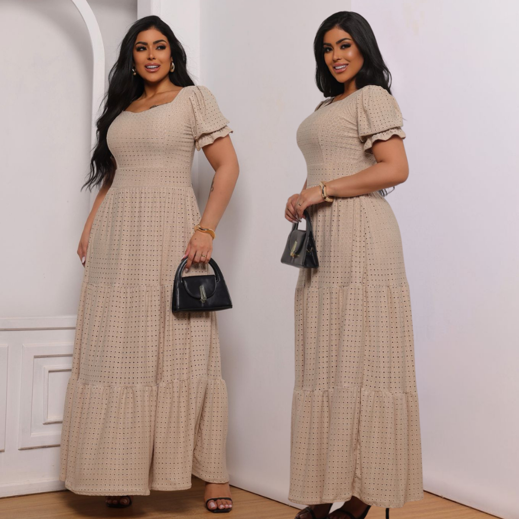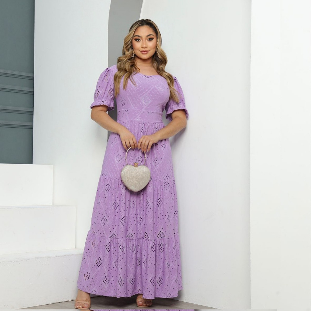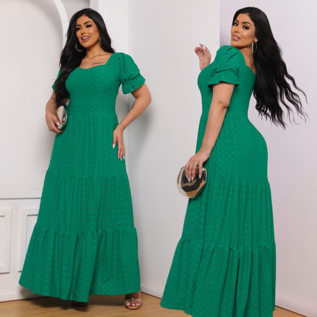 Vestido Longo Três Marias Feminino Na Laise De Malha Colorido