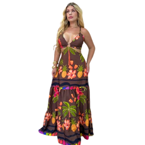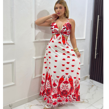Vestido Longo Vermelho Floral – Elegância e Charme no Seu Look de Verão Floral Dress