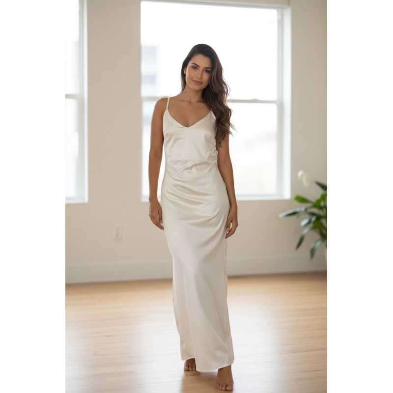 Vestido Longo Za Spring Acetinado Feminino Alça Fina Elegante Festa Casual - P M G