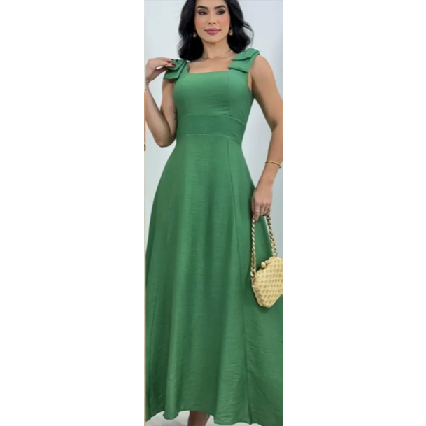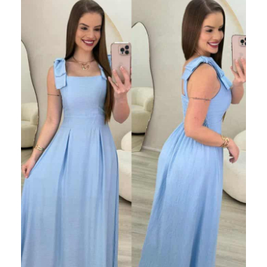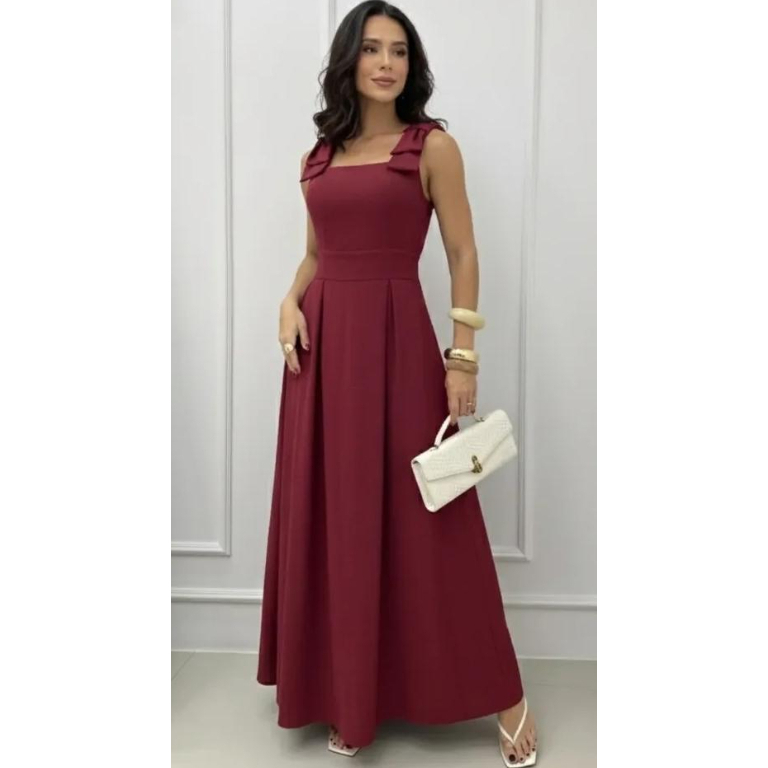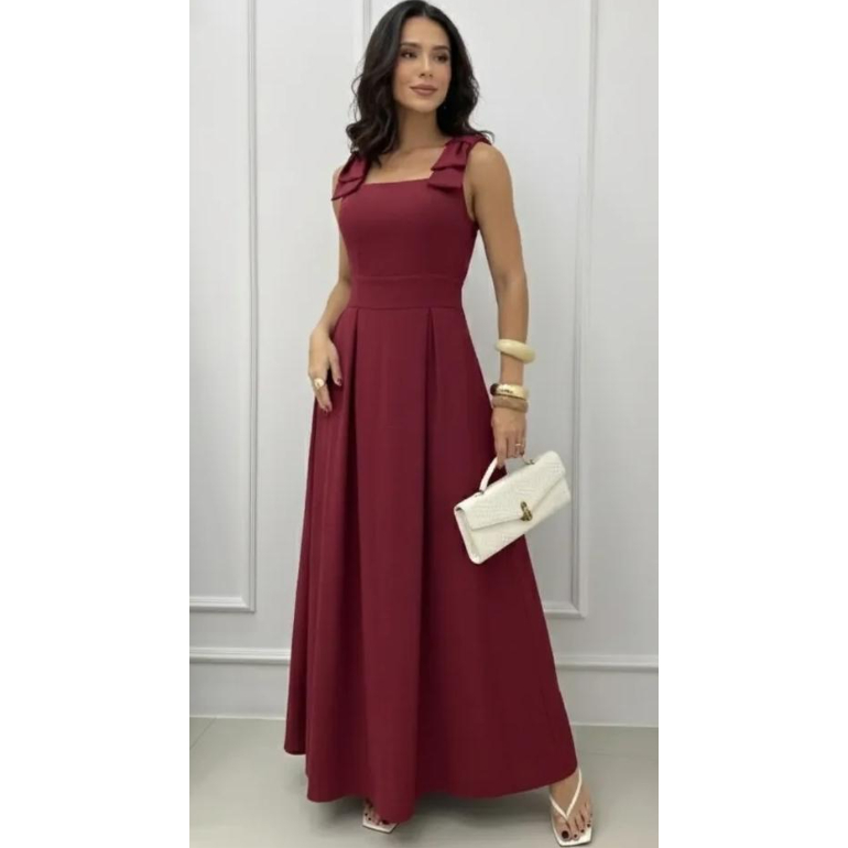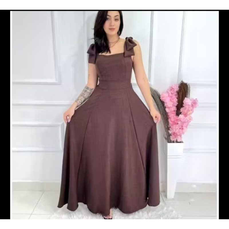 Vestido Longo com Laço no Ombro, Bojo, Forro e Elástex nas Costas – Elegância e Conforto em Cada Detalhe