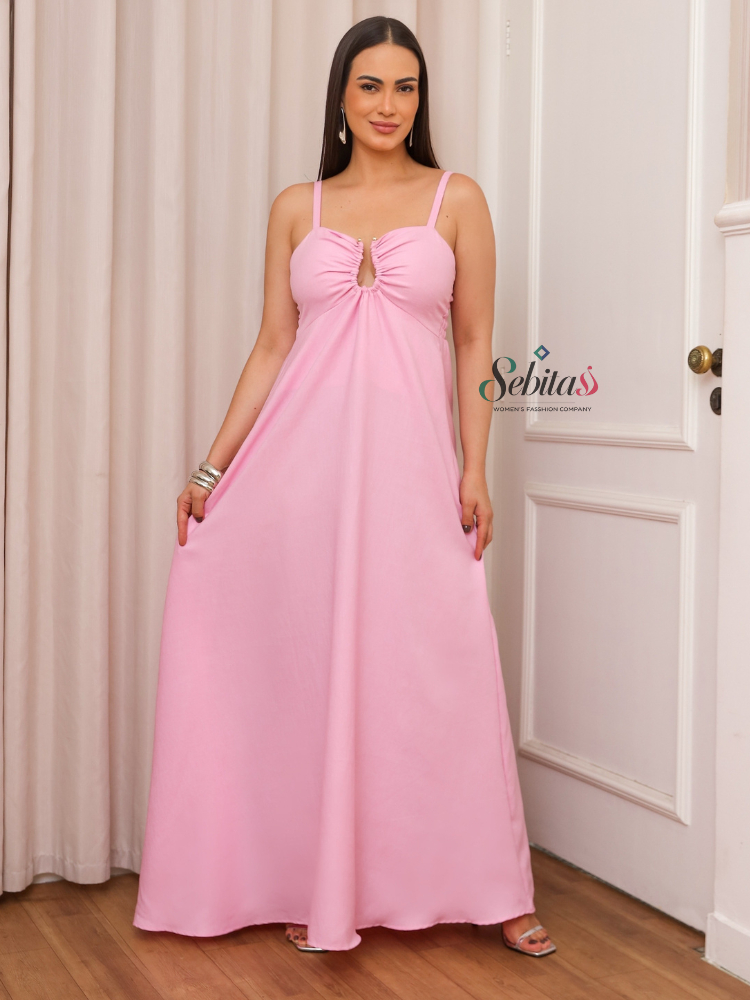 Vestido Longo de Alça Regulagem Feminino Tecido Grosa Verão M-G-GG
