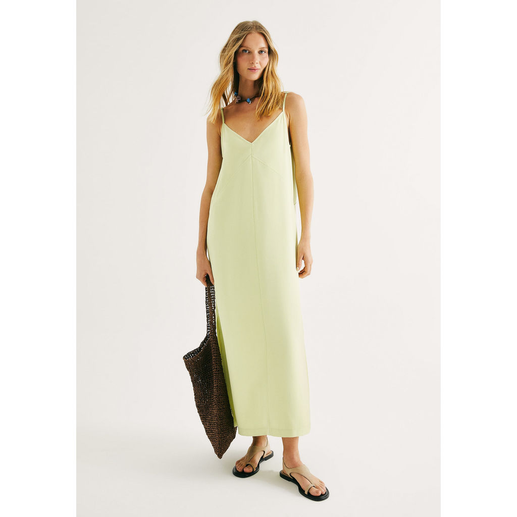 Vestido Midi Em Peach Touch Com Fenda