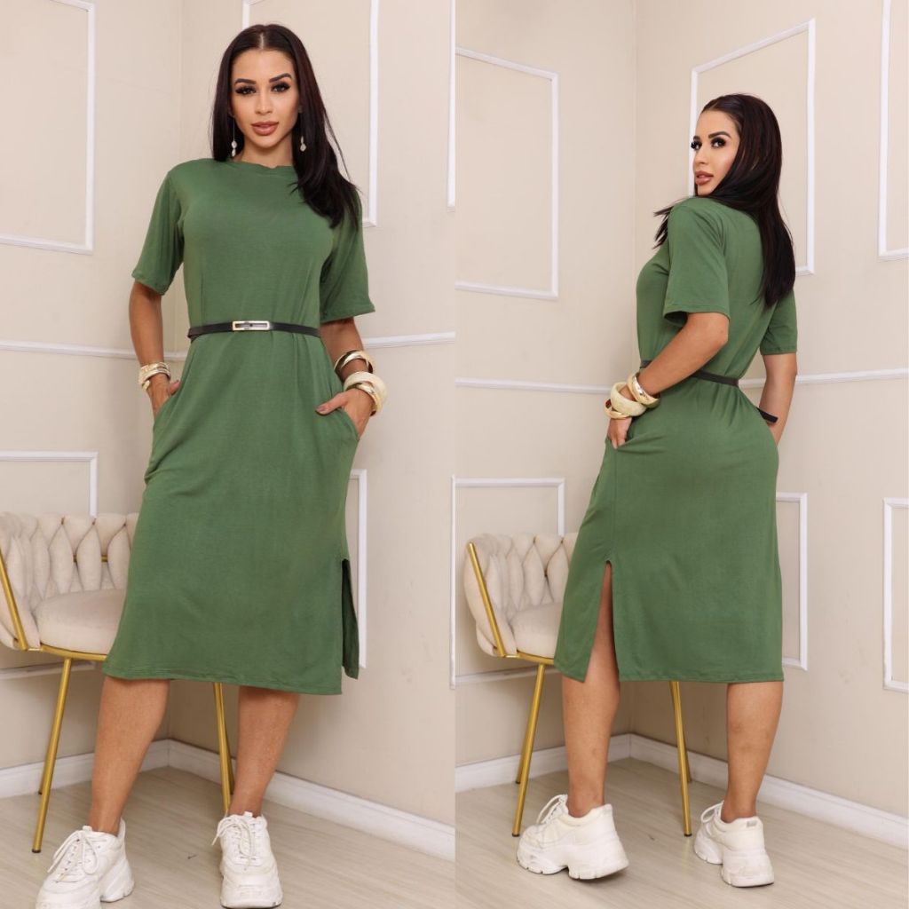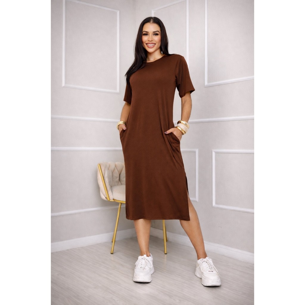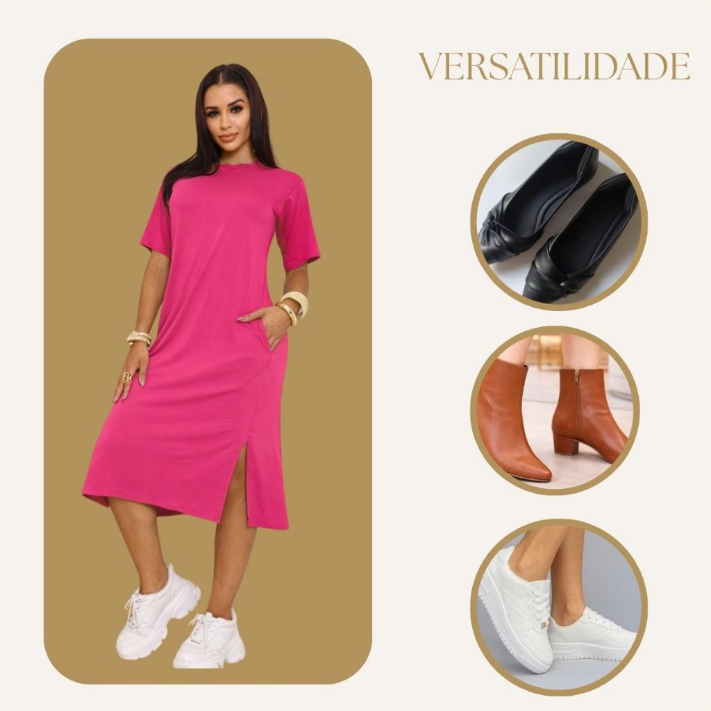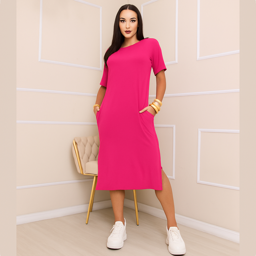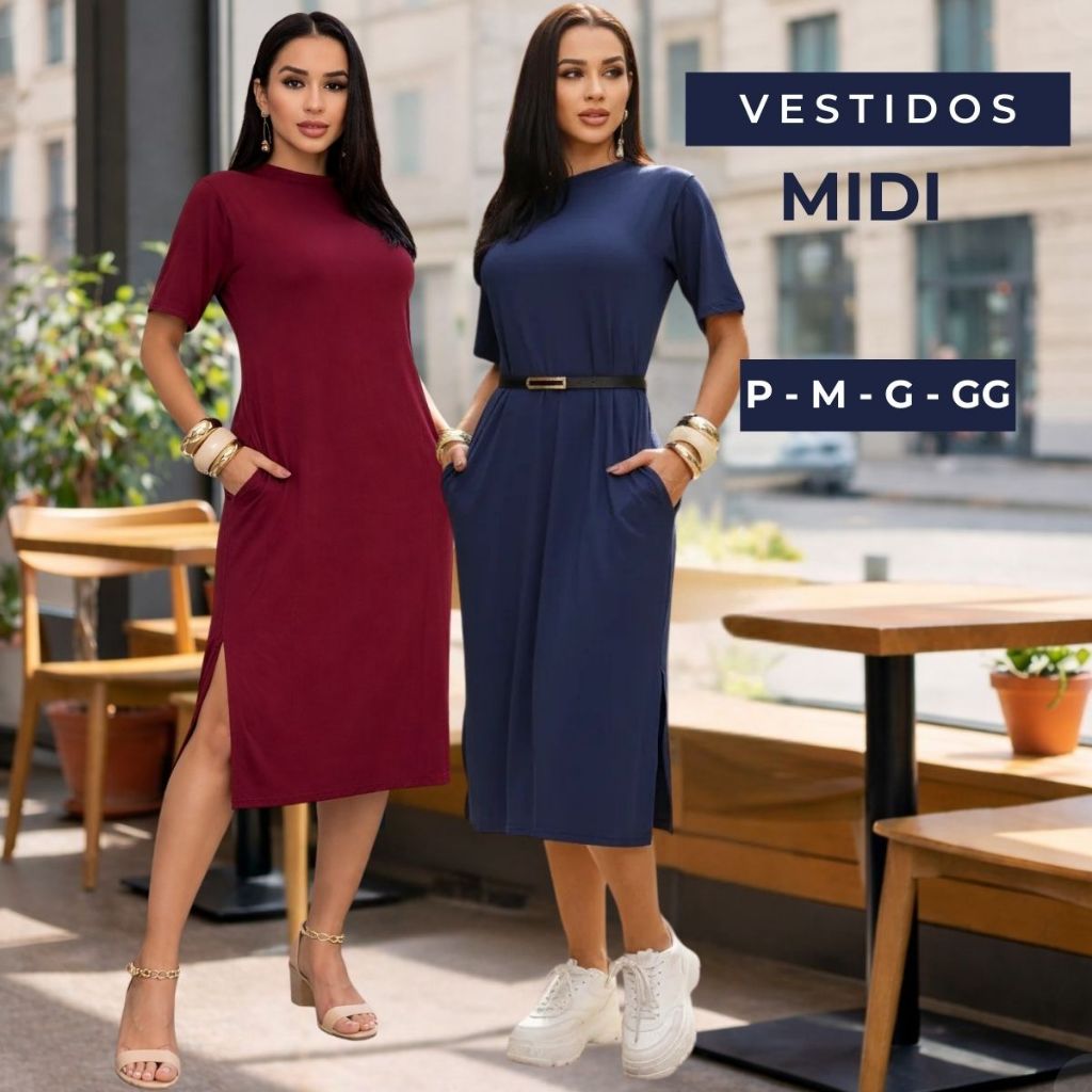 Vestido Midi Feminino Confortável Soltinho Longo Moda Evangélica Elegante Casual Fenda Bolso Lateral Viscolycra Premium