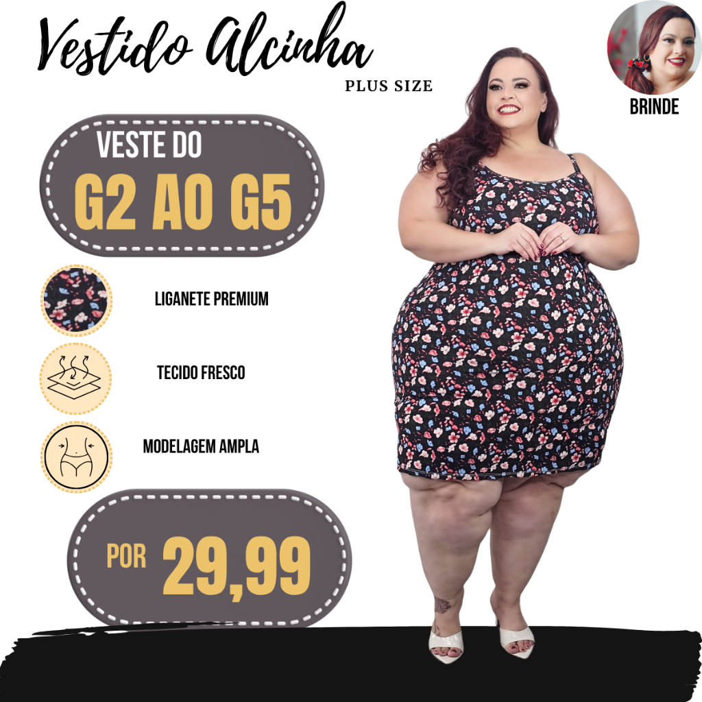 Vestido Plus Size Casual Elegante Moda Acessivel Midi
