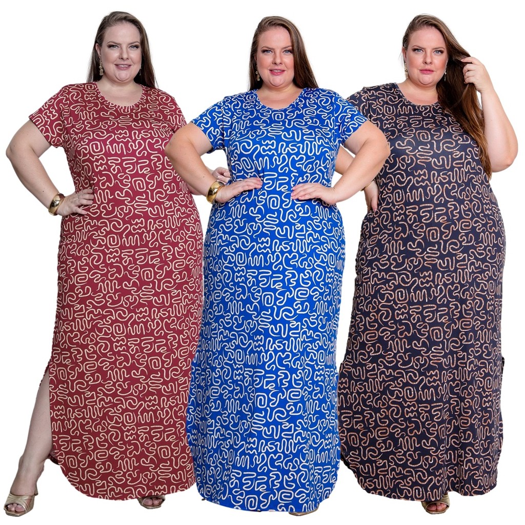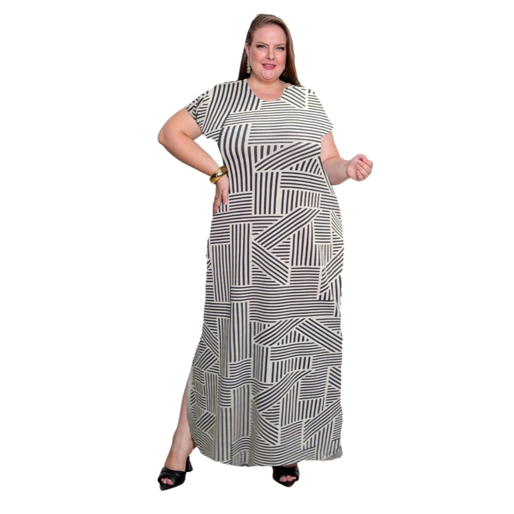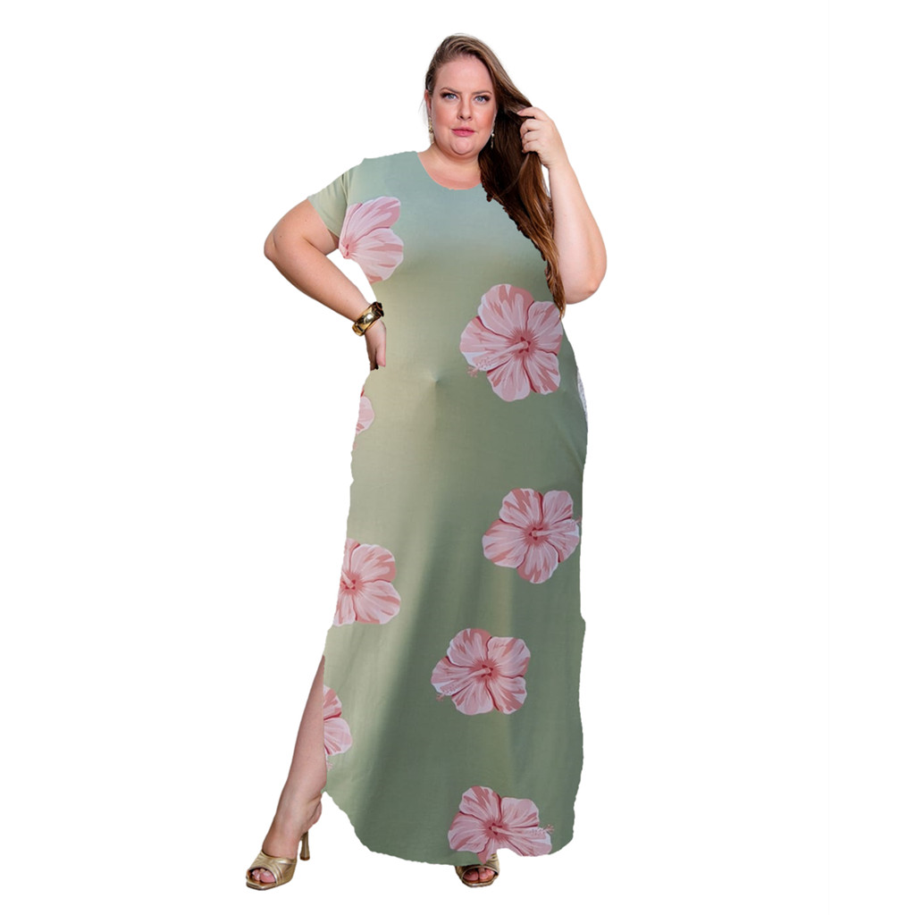 Vestido Plus Size Curve Longo Fendas Moda Verão Manga Curta 2710