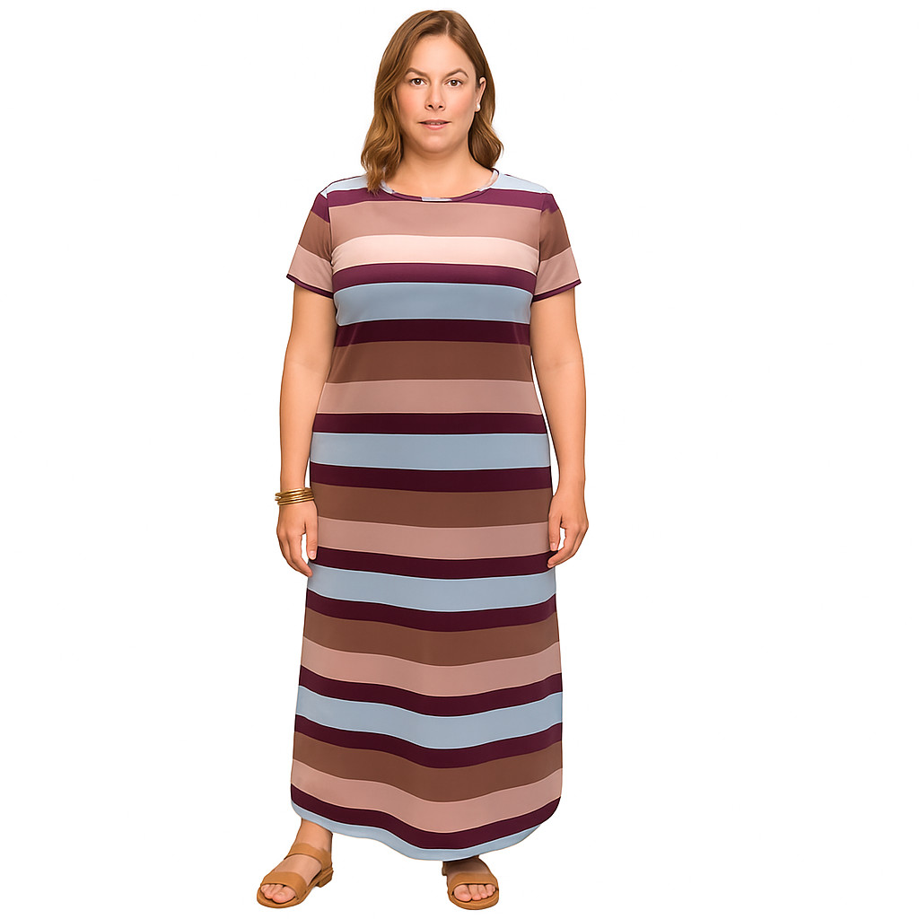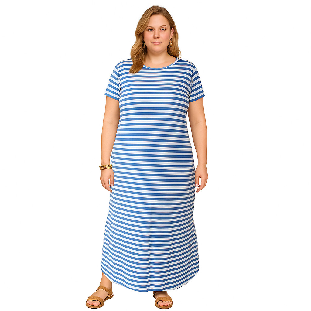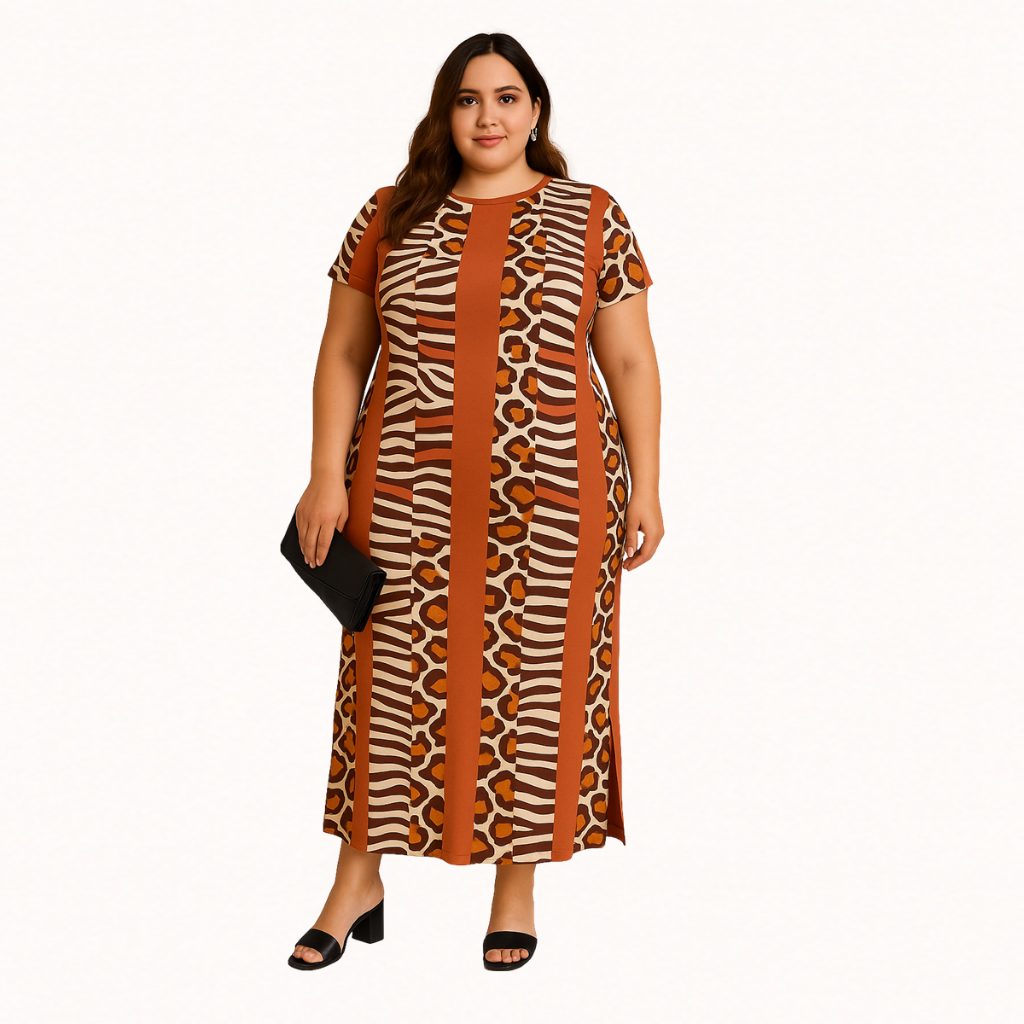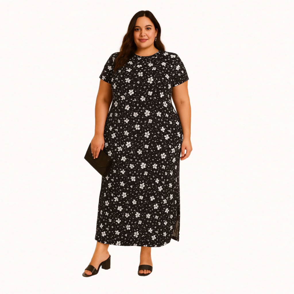 Vestido Plus Size Curve Longo Fendas Moda Verão Manga Curta 2710