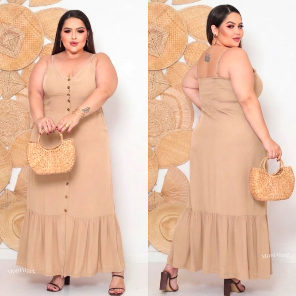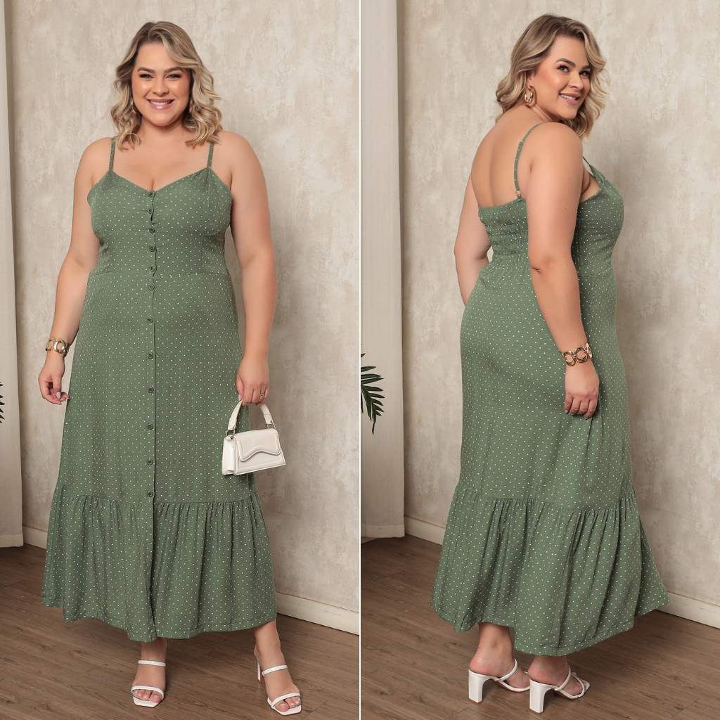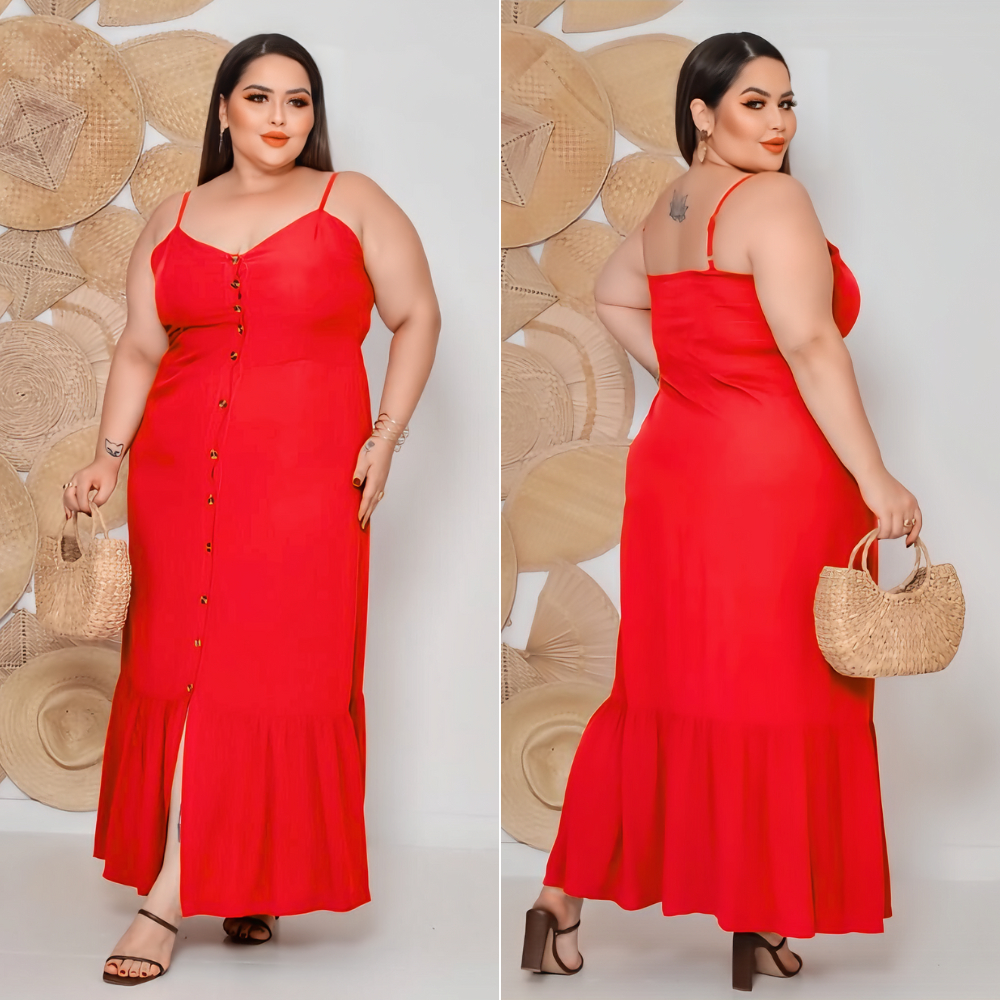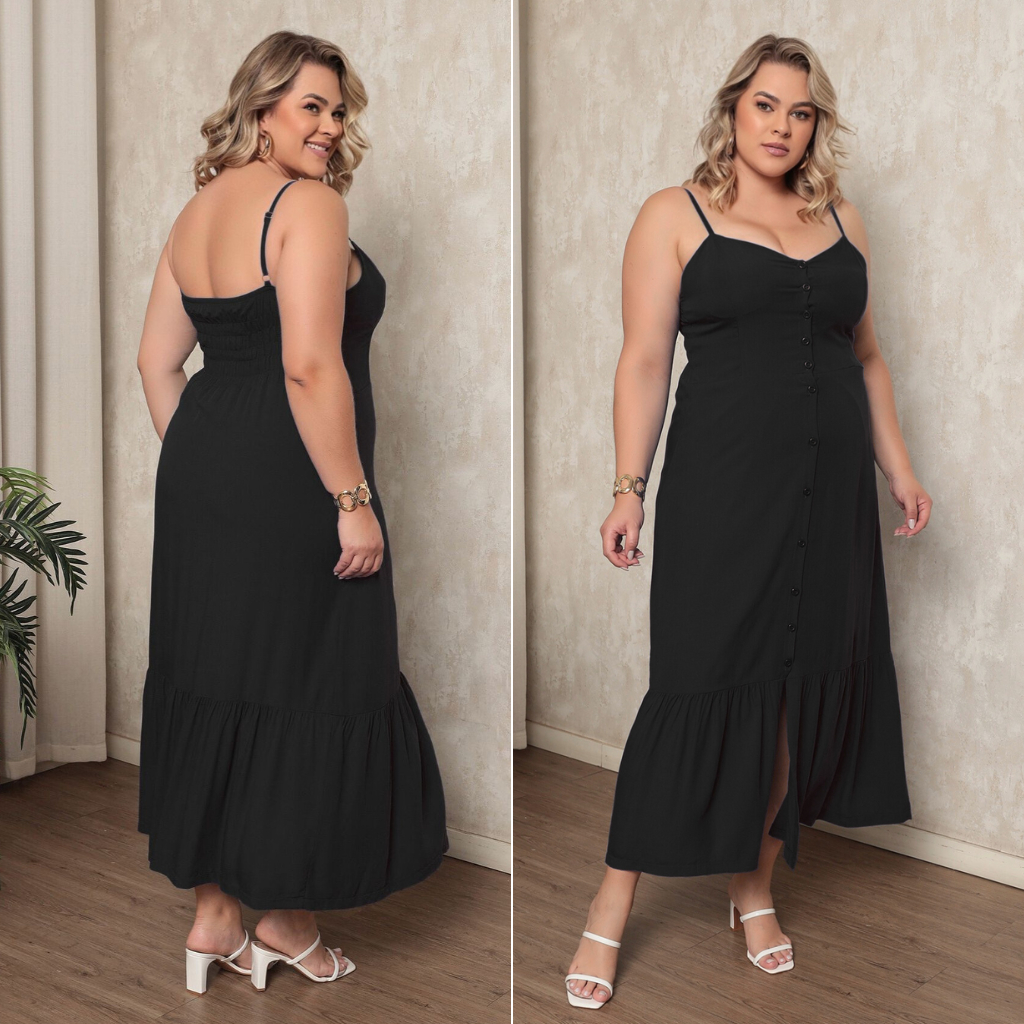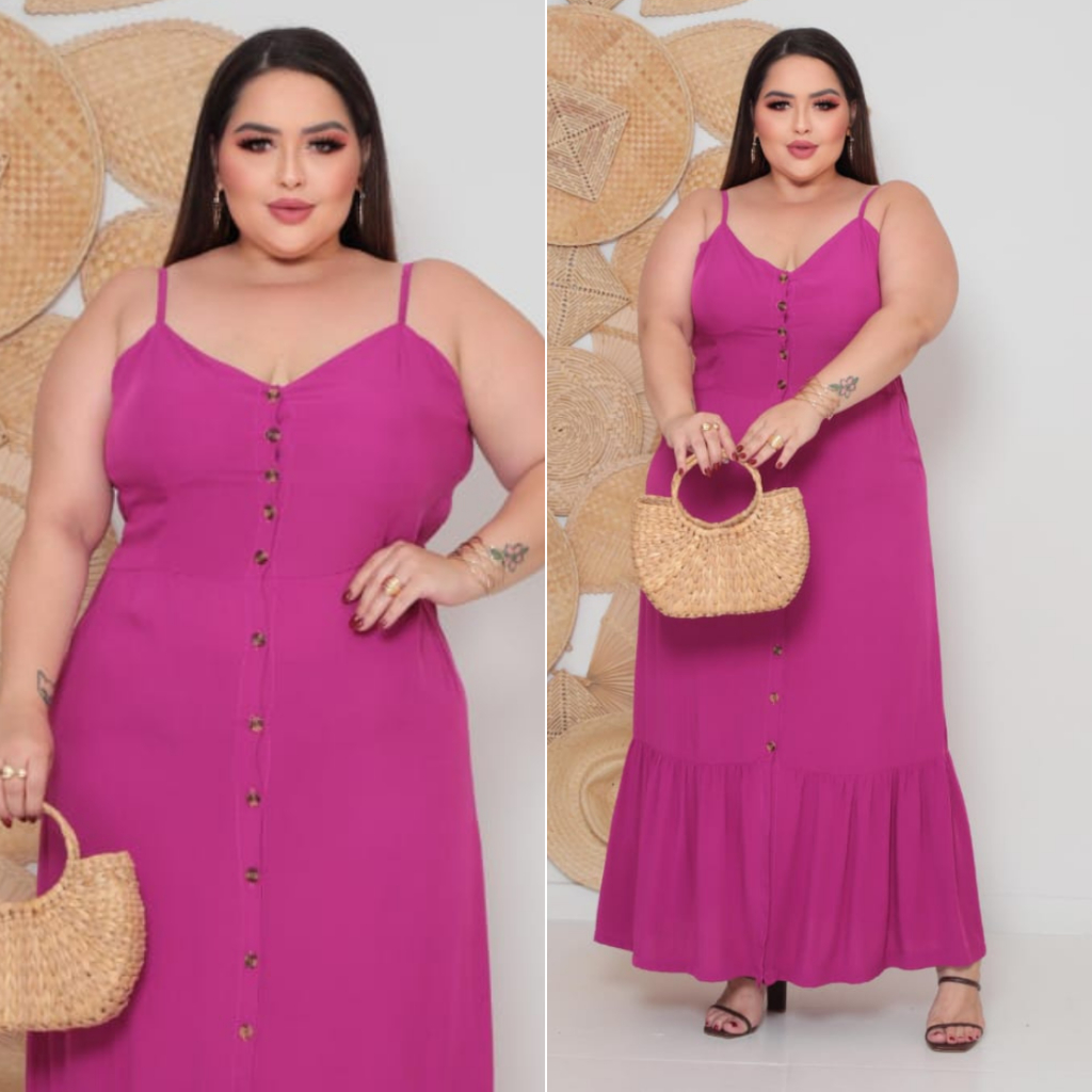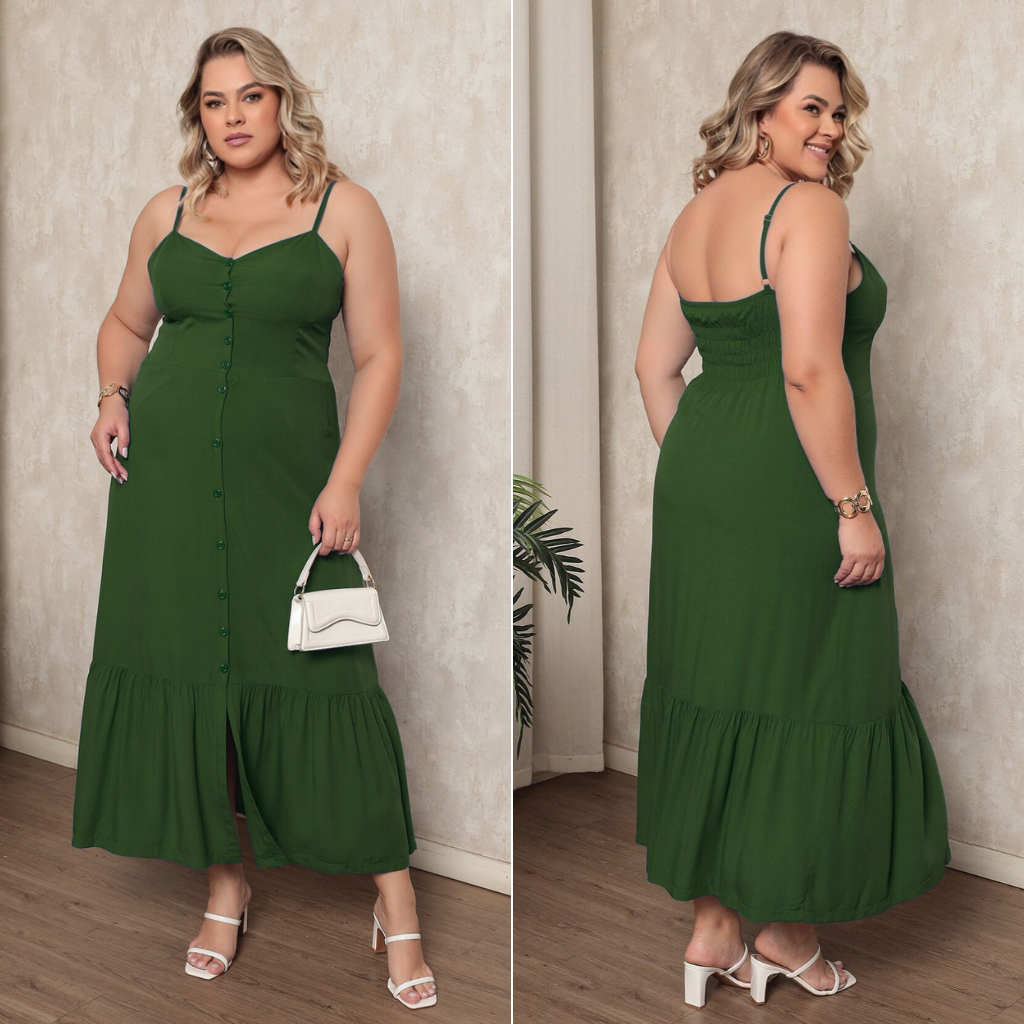 Vestido Plus Size Feminino Longo Elegante Com Regulador Com Bojo e Com Botões Na Frente