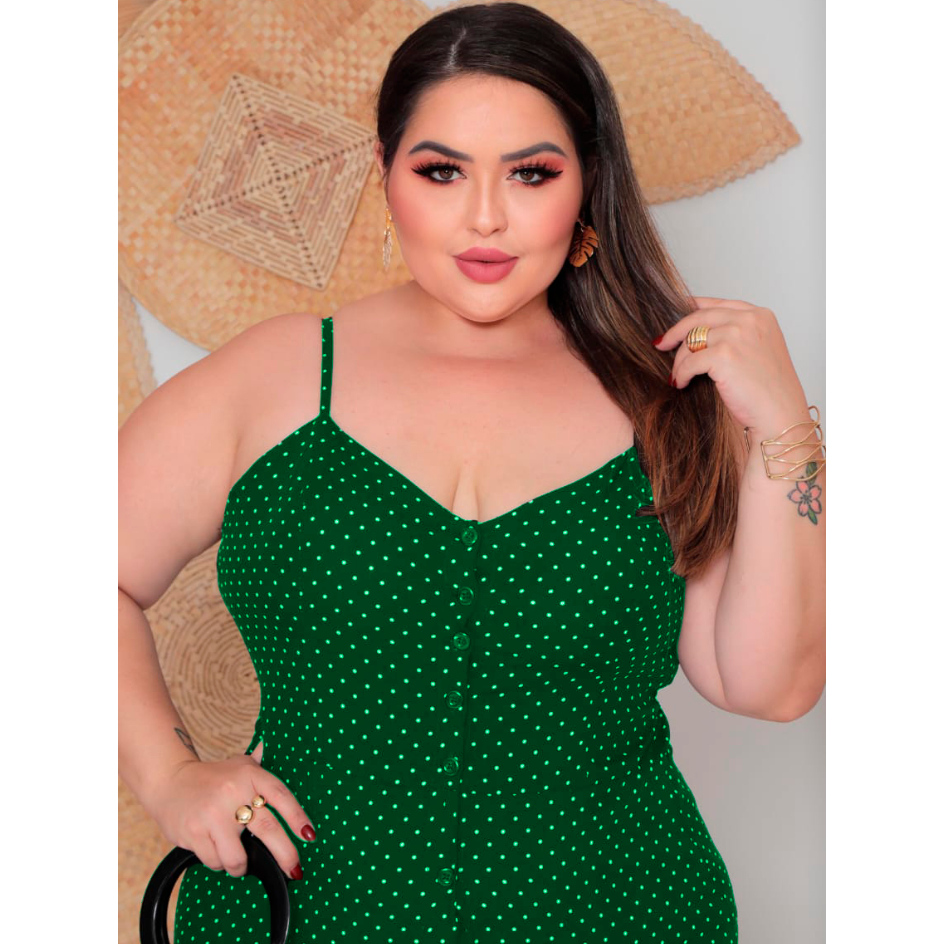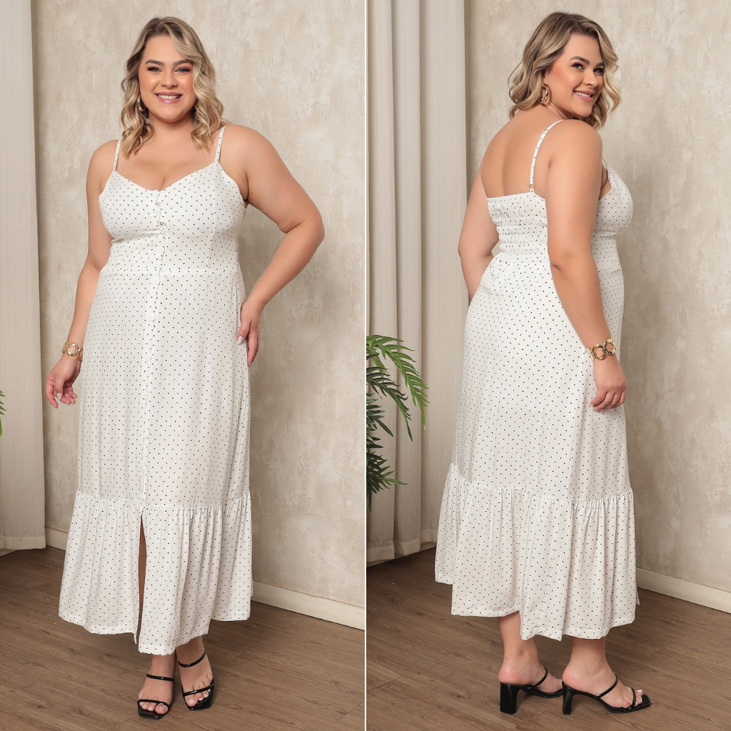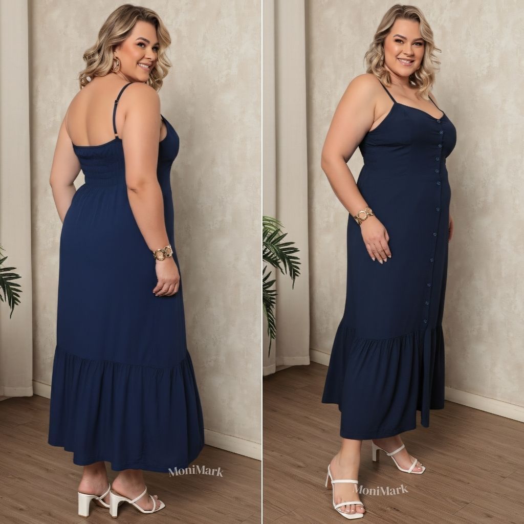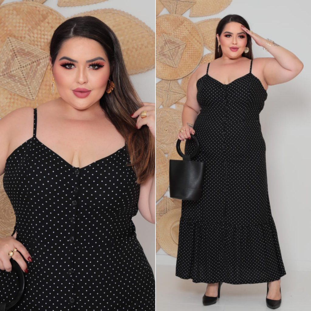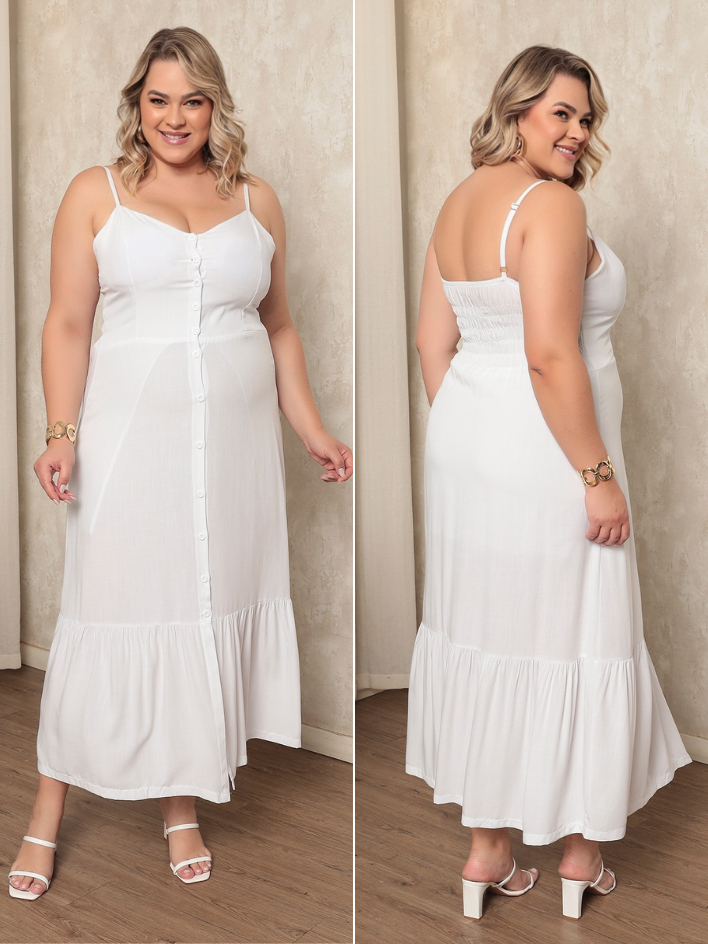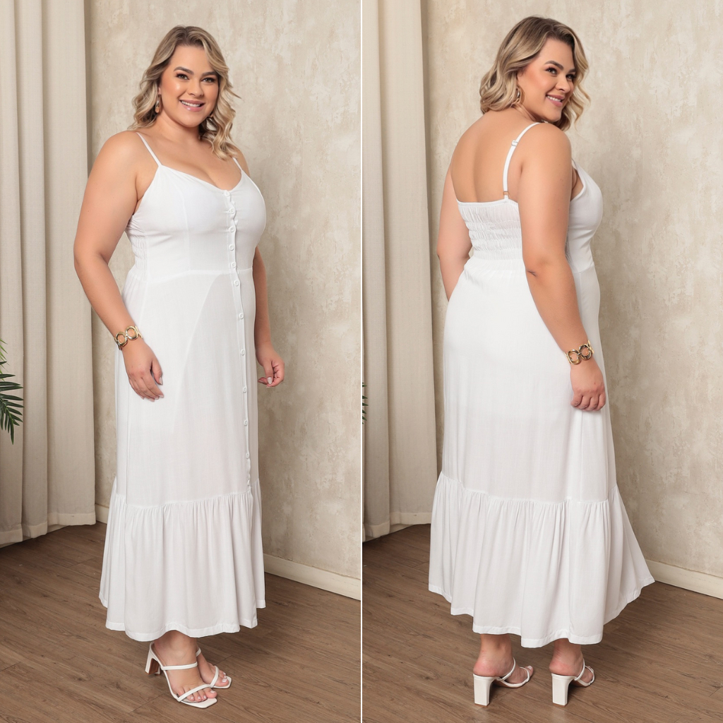 Vestido Plus Size Feminino Longo Elegante Com Regulador Com Bojo e Com Botões Na Frente