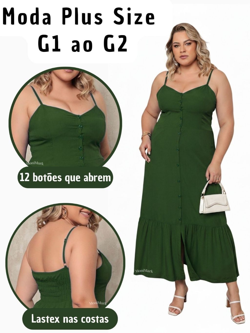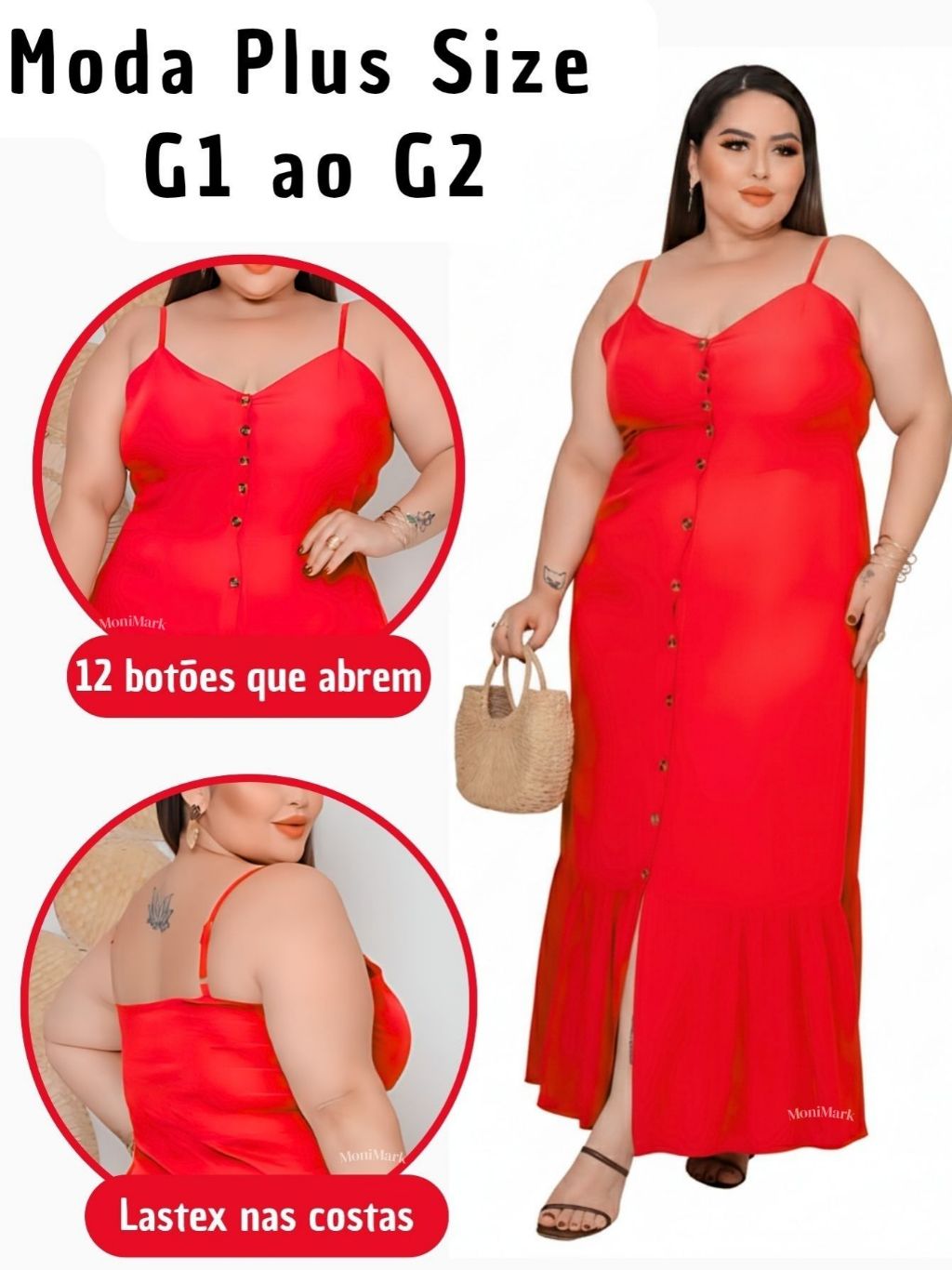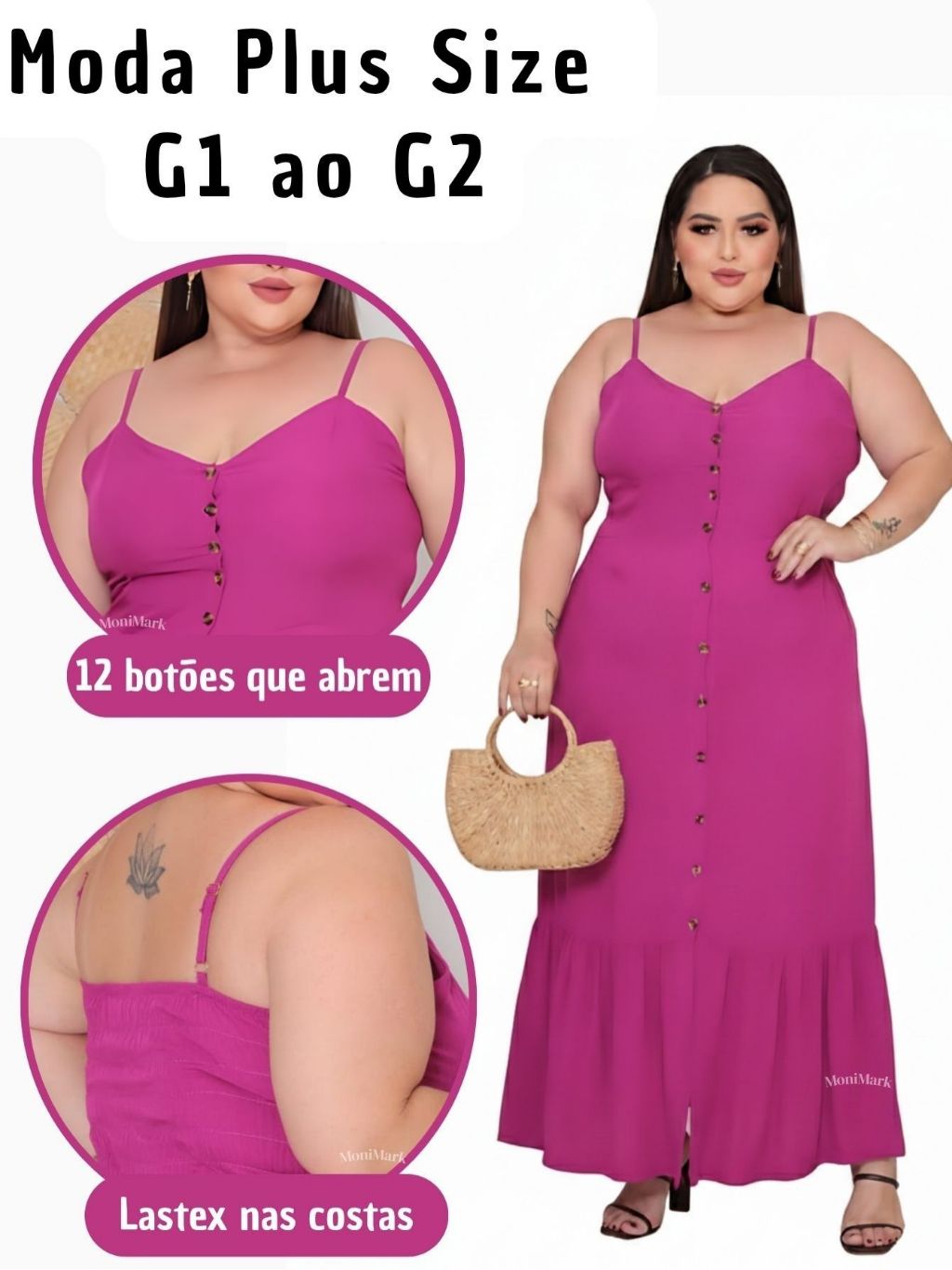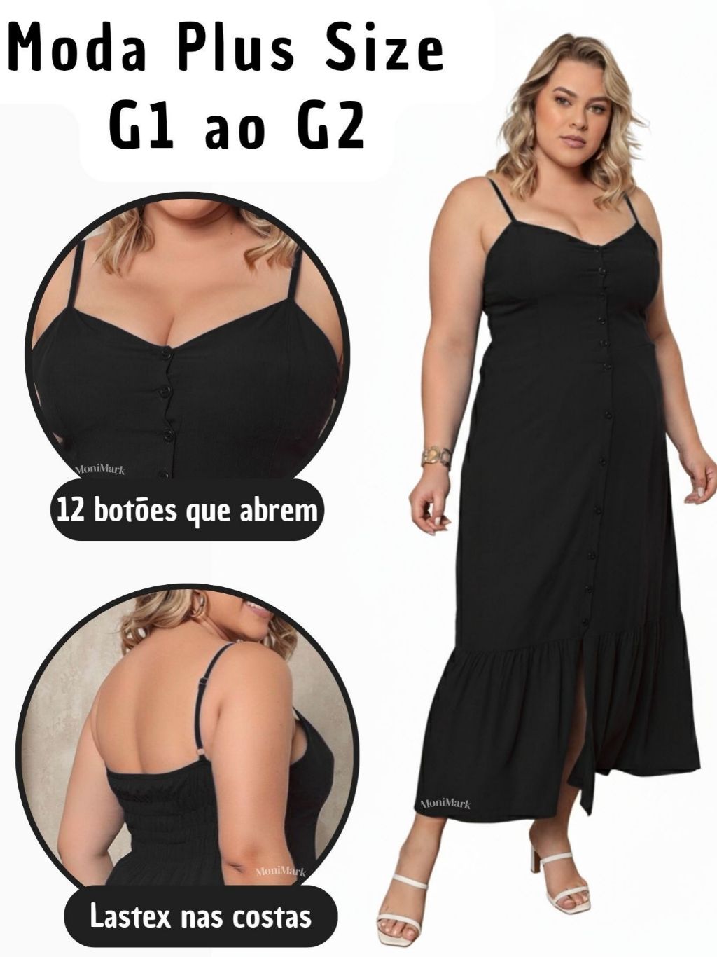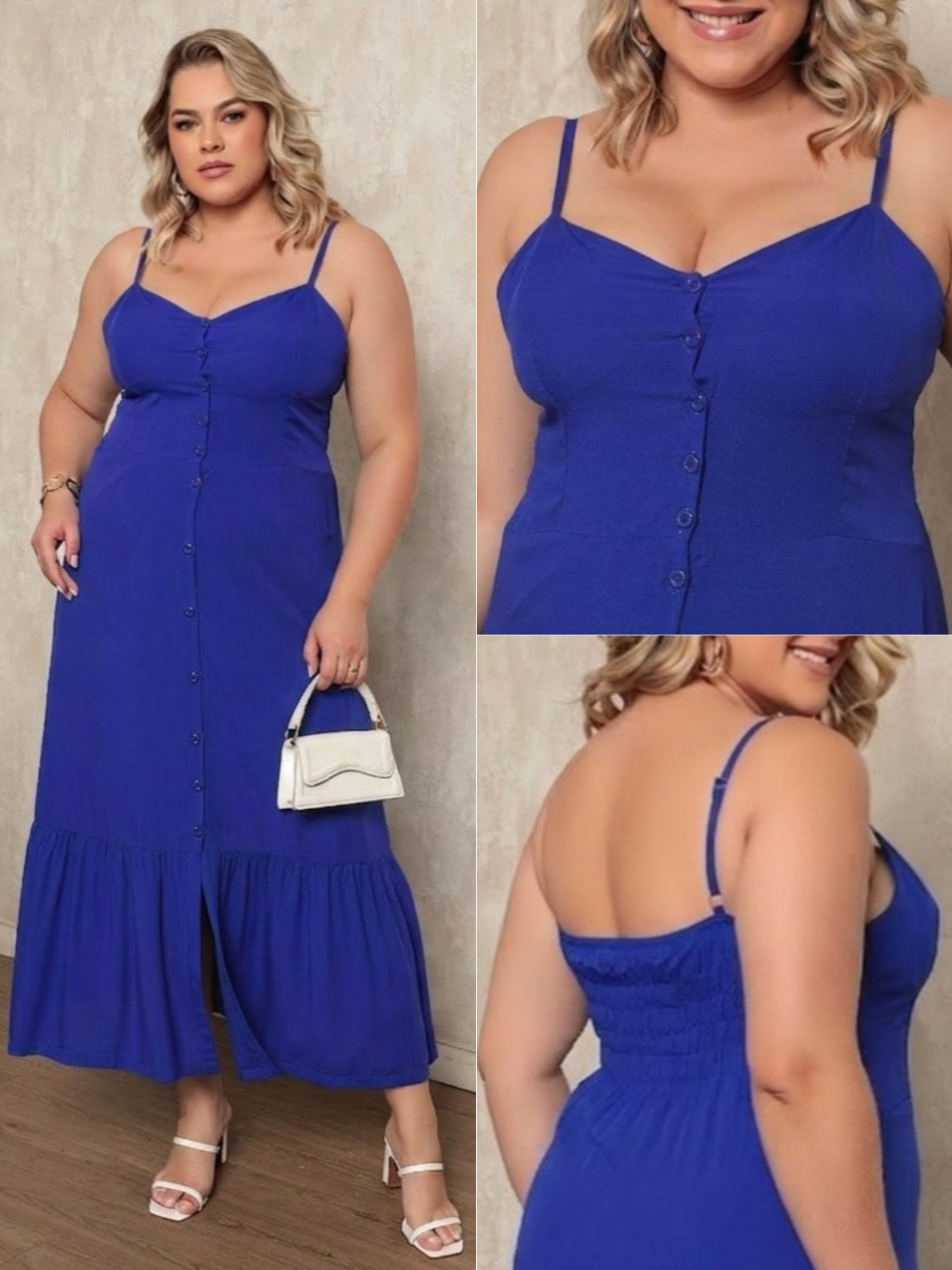 Vestido Plus Size Feminino Longo Elegante Com Regulador Com Bojo e Com Botões Na Frente