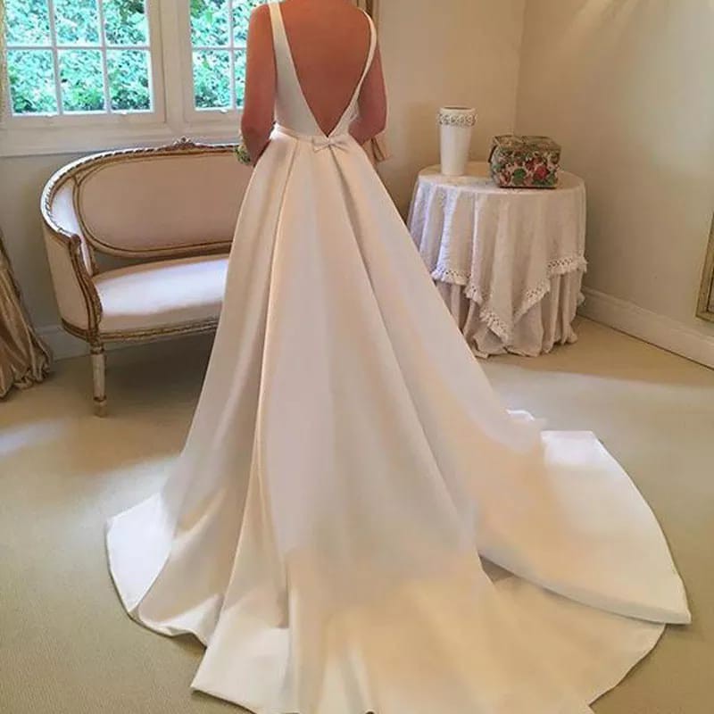 Vestido de Noiva Sem Renda Com Decote nas Costas