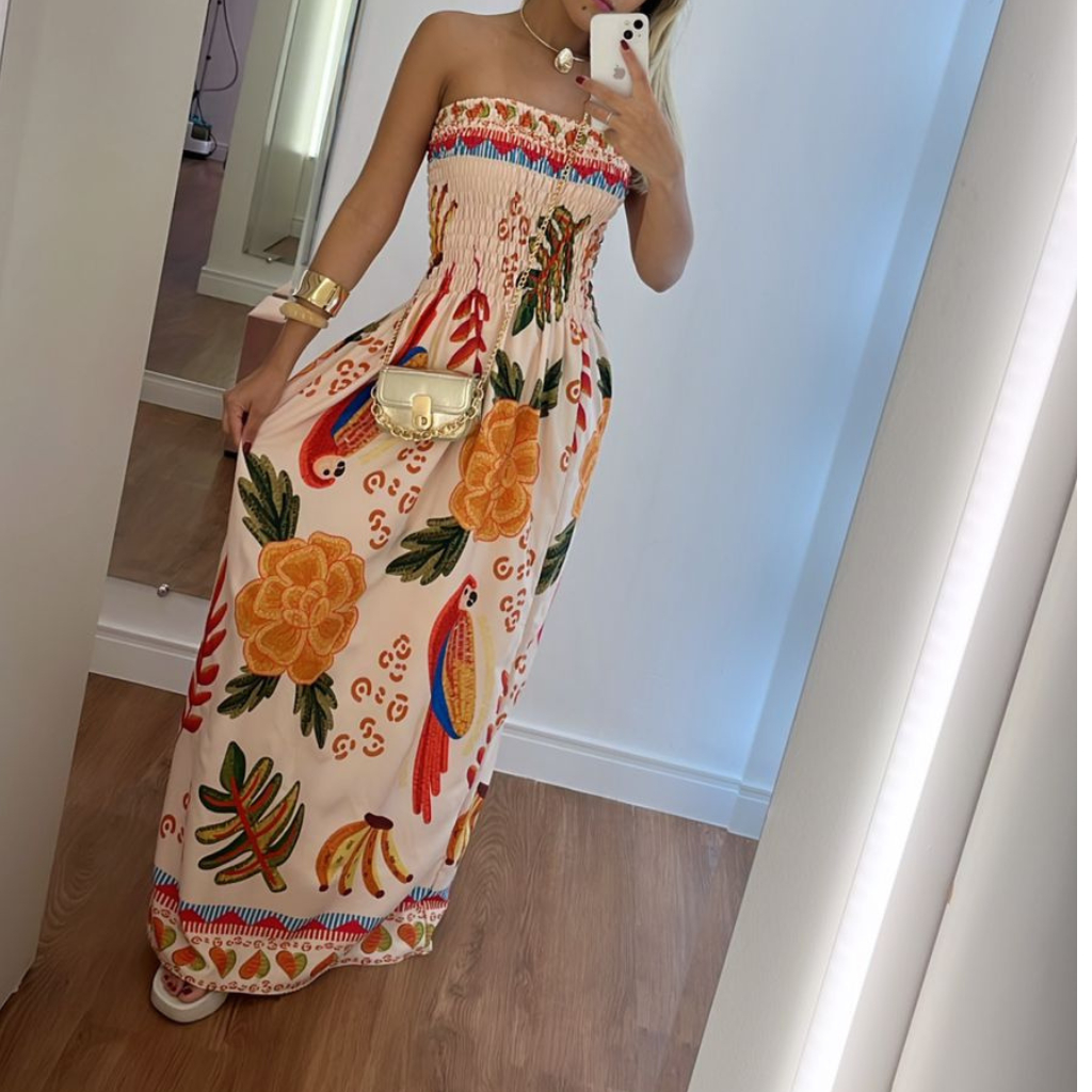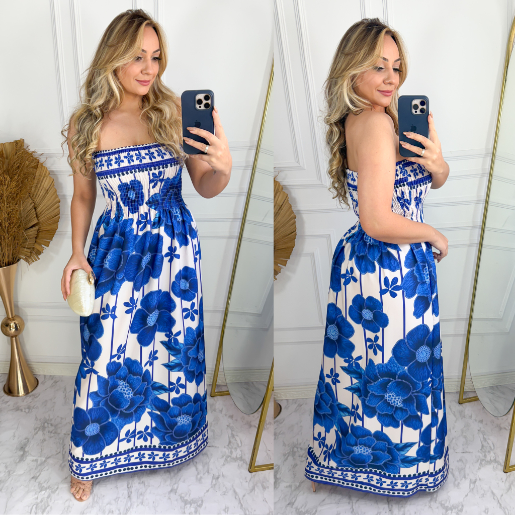 Vestido feminino longo Tomara que Caia Com Elastex