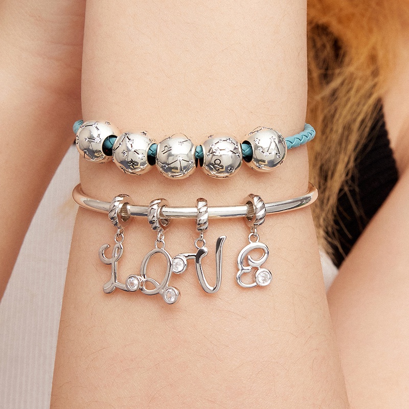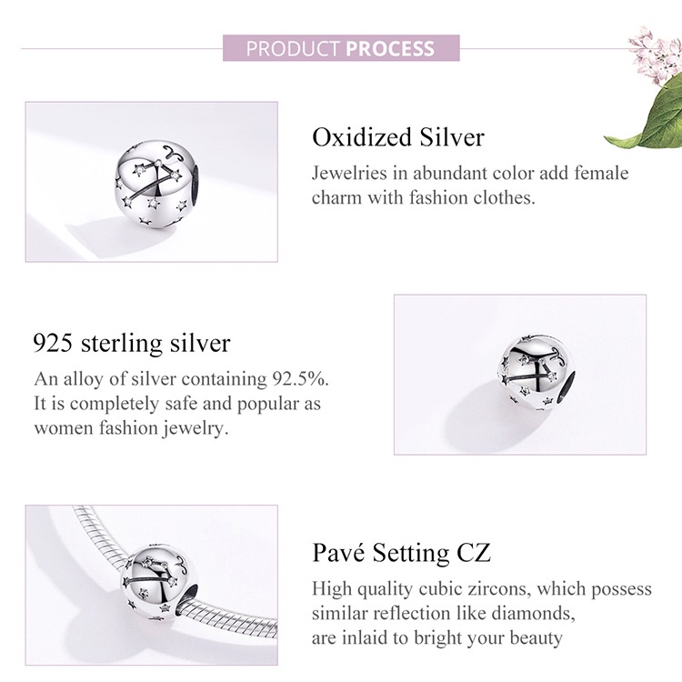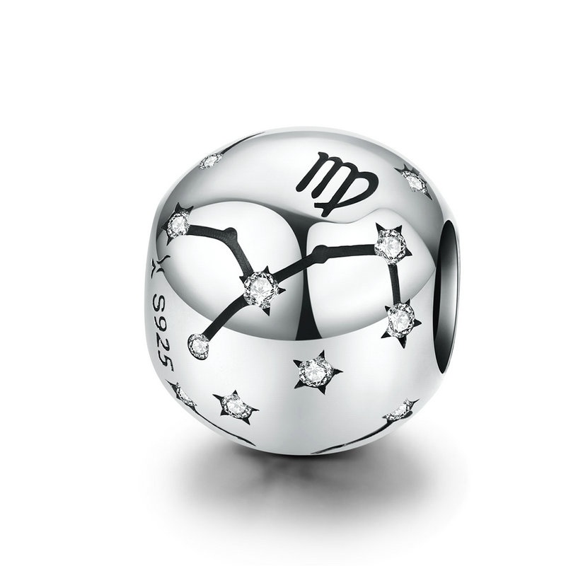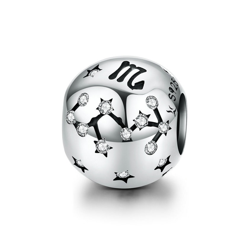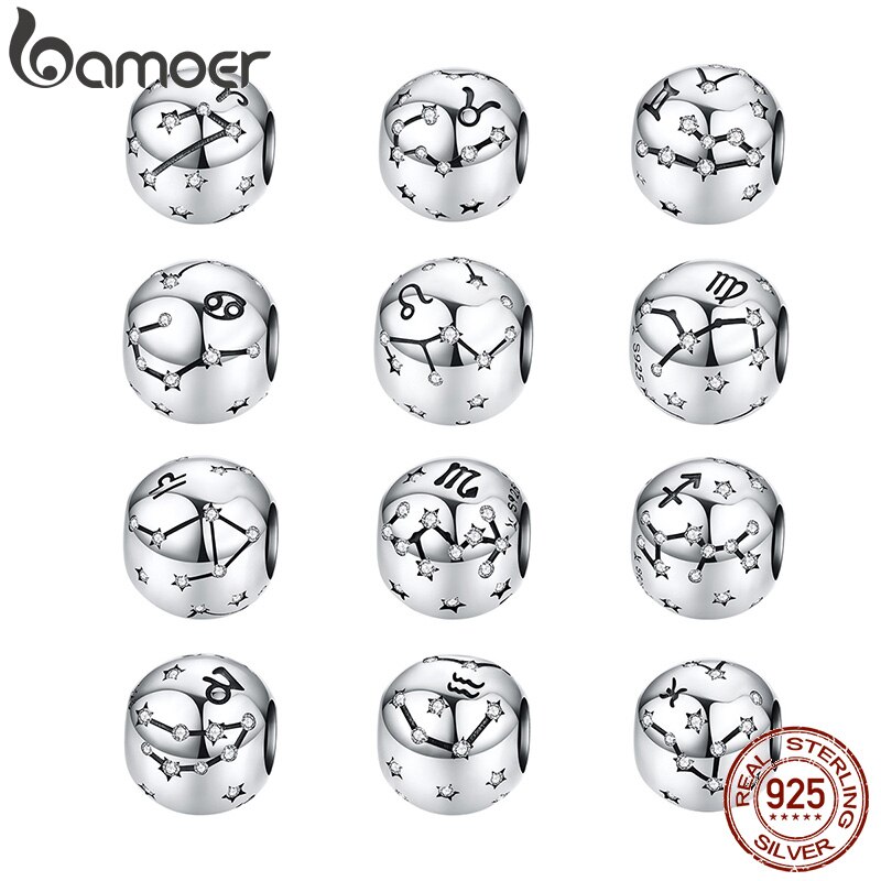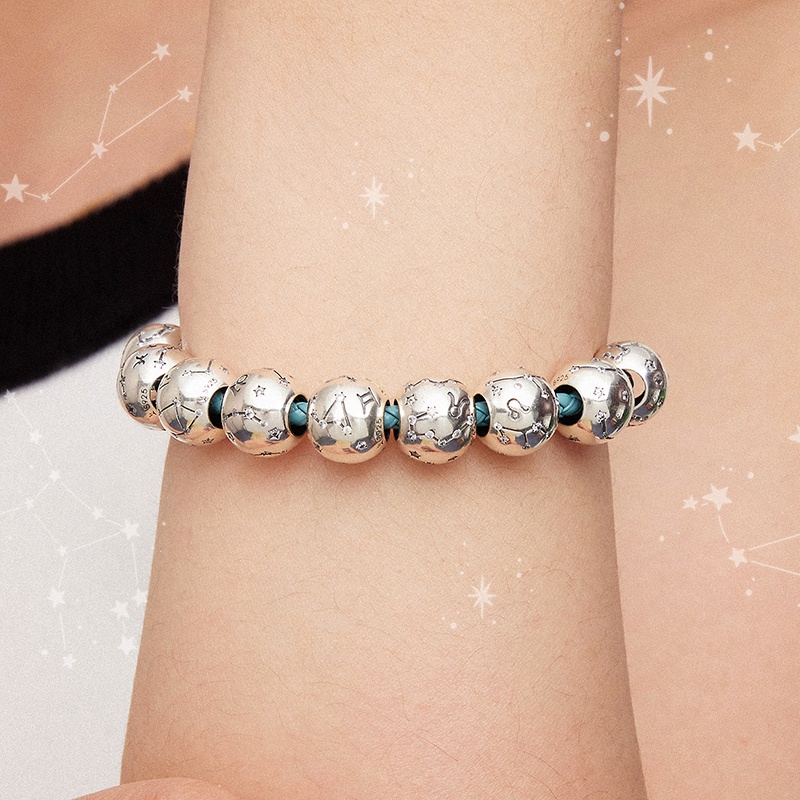 Vintage 925 Sterling Silver Aquarius Estrela Signo Do Zodíaco Contas Encantos fit Pulseiras DIY Twelve Constelação SCC1218