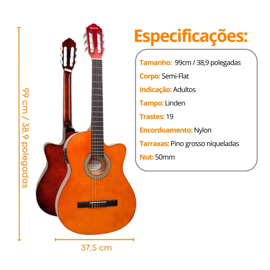 Violao Giannini Elétrico Start Nf14 Nylon Flat