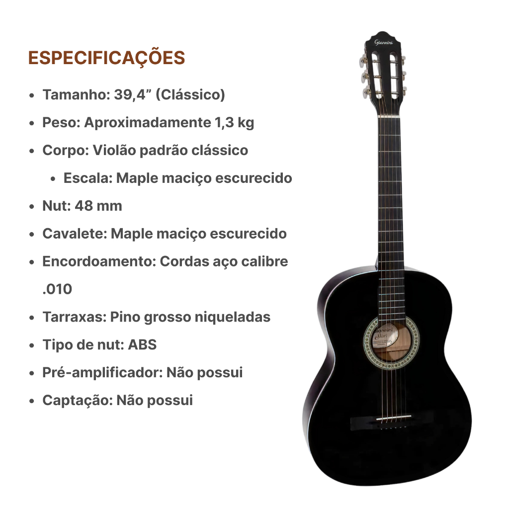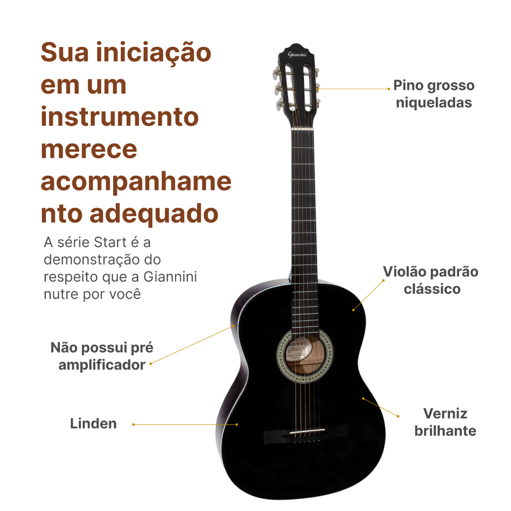 Violao Giannini Start S-14 Bk C/ Captador Capa + Acessorios