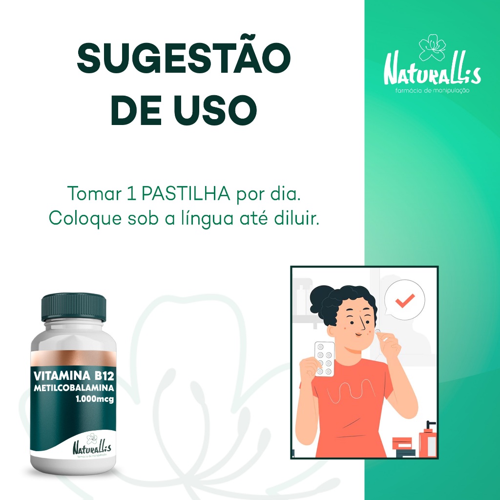 Vitamina B12 1.000mcg (Metilcobalamina) 60 ou 120 pastilhas sublingual - Naturallis